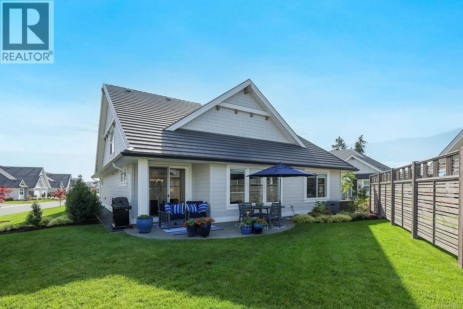 A rare offering in Crown Isle's luxurious Silverstone Estates. This spacious 1983 sq ft stand-alone, 3 bed/3 bath patio home has no shared walls with your neighbours, giving you privacy and the convenience of strata living in one beautiful package. Quality built by Integra Homes, the property features additional upgrades such as engineered hardwood flooring throughout, high-end Fisher & Paykel induction stove, custom blinds and central vacuum. The thoughtfully designed kitchen features quartz counters, shaker cabinets, pantry, and a large island overlooking the living room, complete with gas fireplace. Relax in the primary bedroom with luxurious 5 piece ensuite including soaker tub, heated floors and walk-in closet. The spotless double garage has epoxy flooring, custom Slatwall storage system and steel shelving. A partially fenced rear garden and patio complete this residence in the heart of the Comox Valley's premier golf community (id:27476)