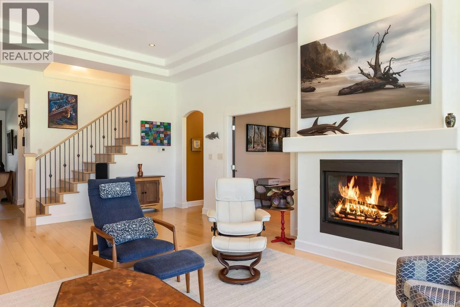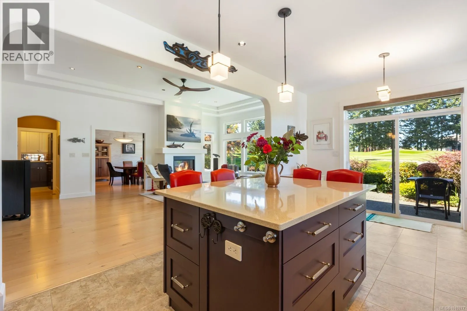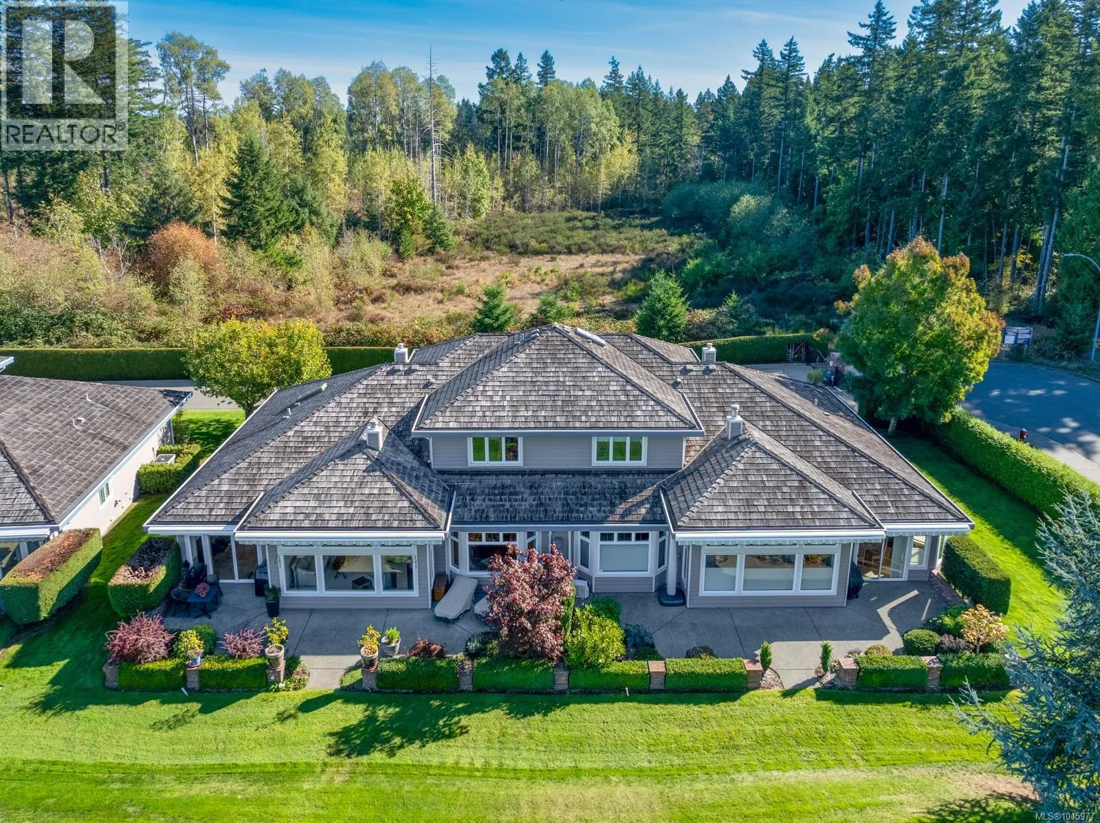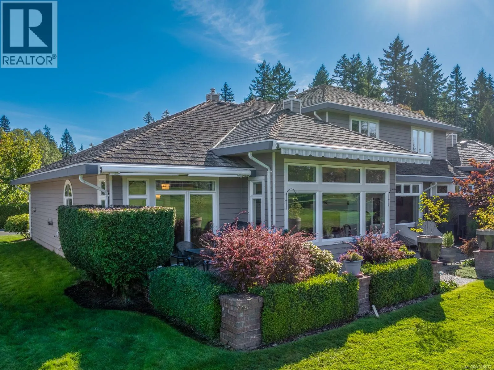 Welcome Home to Elegant Living on the 12th Fairway at Britannia Place. An immaculate and beautifully upgraded patio home in the prestigious Crown Isle Golf Community. This spacious 2,073 sq ft home offers 3 bedrooms and 3 bathrooms, thoughtfully designed for comfort and style. A desirable layout. Step into a bright, open-concept living space featuring soaring 11-foot ceilings, transom windows, gas fireplace and rich birch hardwood flooring throughout. Custom window coverings add extra panache. The chefâs kitchen is equipped with high-end Fisher & Paykel stainless steel appliancesâideal for both everyday living and entertaining. The main floor includes a serene primary suite, with elegant crown mouldings. Entertain in the formal dining room. Upstairs youâll find two additional bedrooms and a full bathroomâperfect area for guests/home office or media room. Relax and unwind on the patio with peaceful sunset views. Gardeners will appreciate the space for container planting, and electric awnings allow seamless indoor-outdoor living year-round. This well-managed, 55+ strata community is pet-friendly and offers a warm, welcoming environment. Enjoy world-class golf right outside your door, easy access to shops and dining, and year-round recreation including nearby Mount Washington for skiing and snow sports. By summer 2026 this wood shingle roof will be replaced with Euroshield composite. (id:27476)