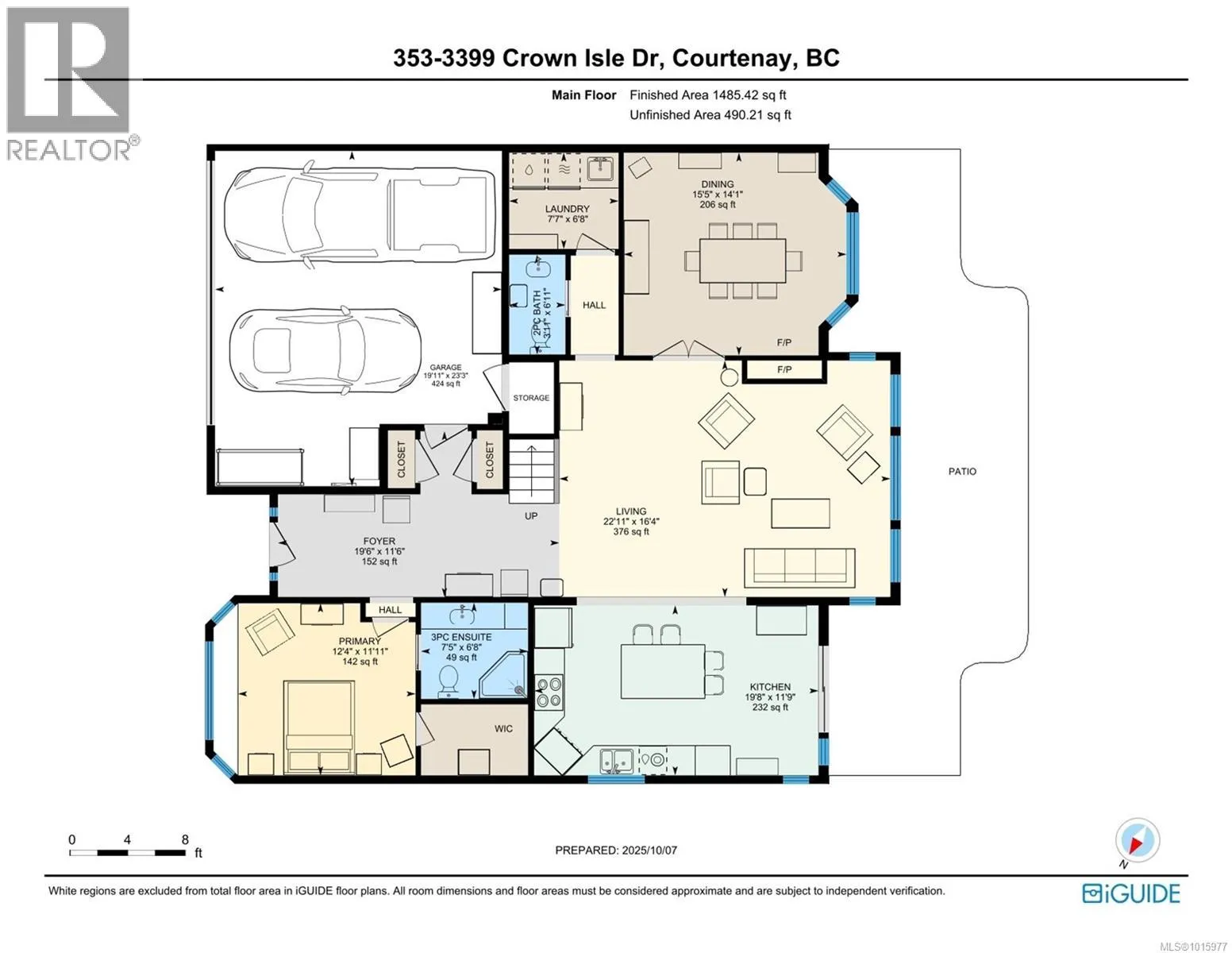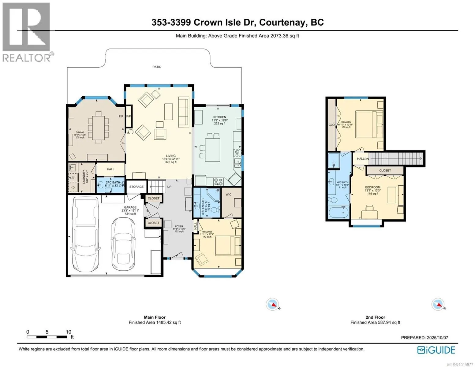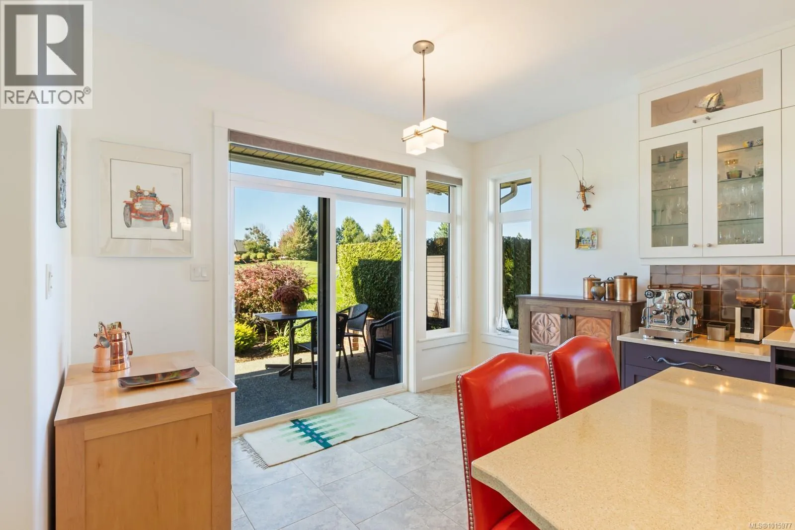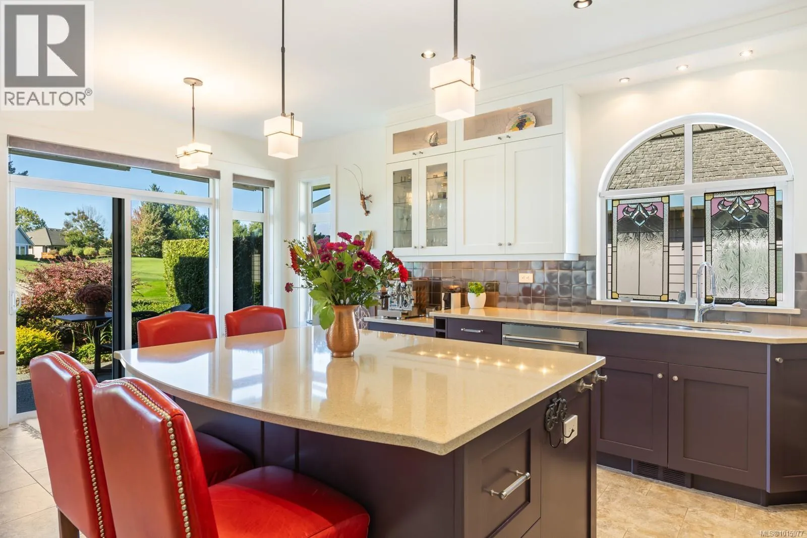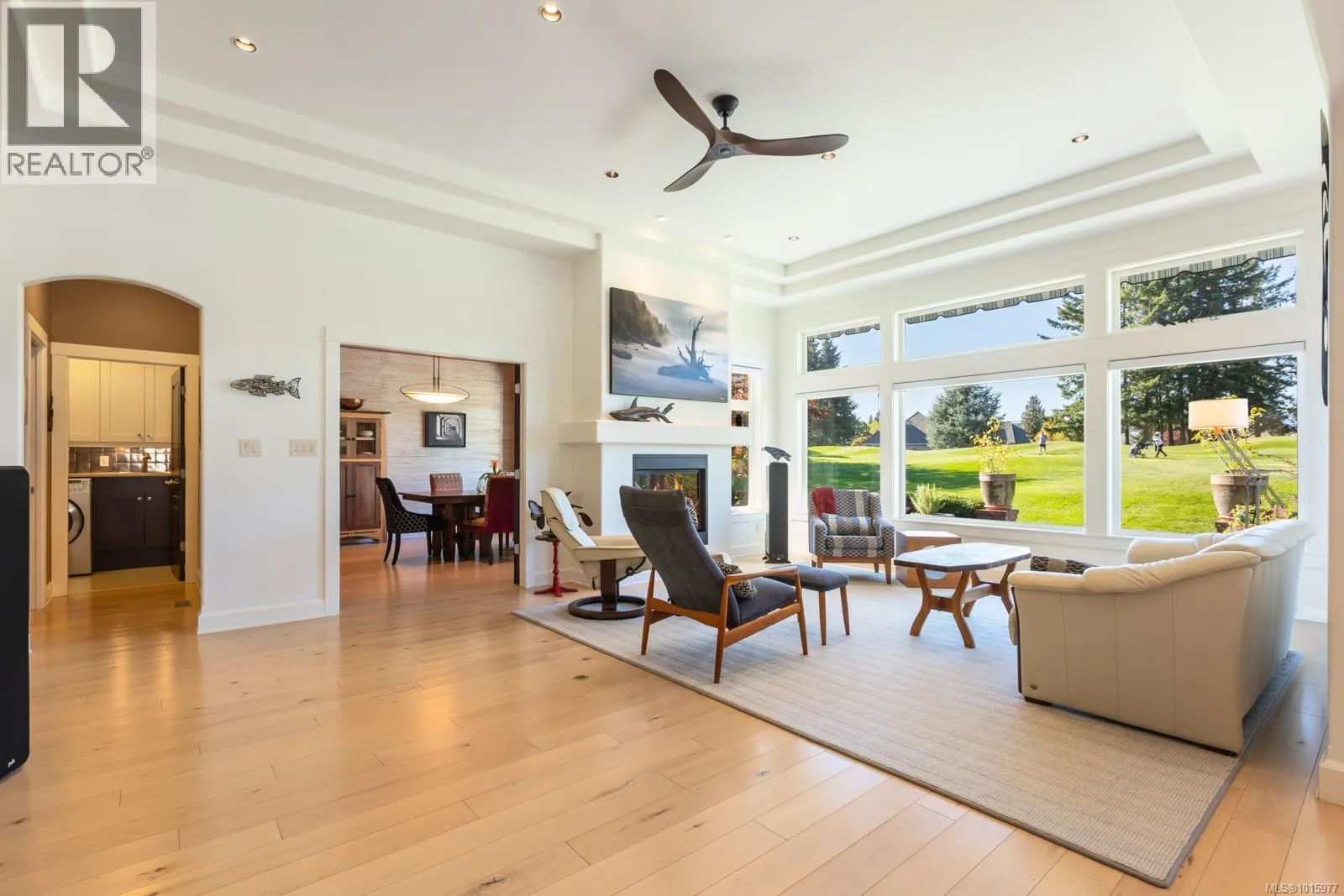 Welcome Home to Elegant Living on the 12th Fairway at Britannia Place. An immaculate and beautifully upgraded patio home in the prestigious Crown Isle Golf Community. This spacious 2,073 sq ft home offers 3 bedrooms and 3 bathrooms, thoughtfully designed for comfort and style. A desirable layout. Step into a bright, open-concept living space featuring soaring 11-foot ceilings, transom windows, gas fireplace and rich birch hardwood flooring throughout. Custom window coverings add extra panache. The chefâs kitchen is equipped with high-end Fisher & Paykel stainless steel appliancesâideal for both everyday living and entertaining. The main floor includes a serene primary suite, with elegant crown mouldings. Entertain in the formal dining room. Upstairs youâll find two additional bedrooms and a full bathroomâperfect area for guests/home office or media room. Relax and unwind on the patio with peaceful sunset views. Gardeners will appreciate the space for container planting, and electric awnings allow seamless indoor-outdoor living year-round. This well-managed, 55+ strata community is pet-friendly and offers a warm, welcoming environment. Enjoy world-class golf right outside your door, easy access to shops and dining, and year-round recreation including nearby Mount Washington for skiing and snow sports. By summer 2026 this wood shingle roof will be replaced with Euroshield composite. (id:27476)