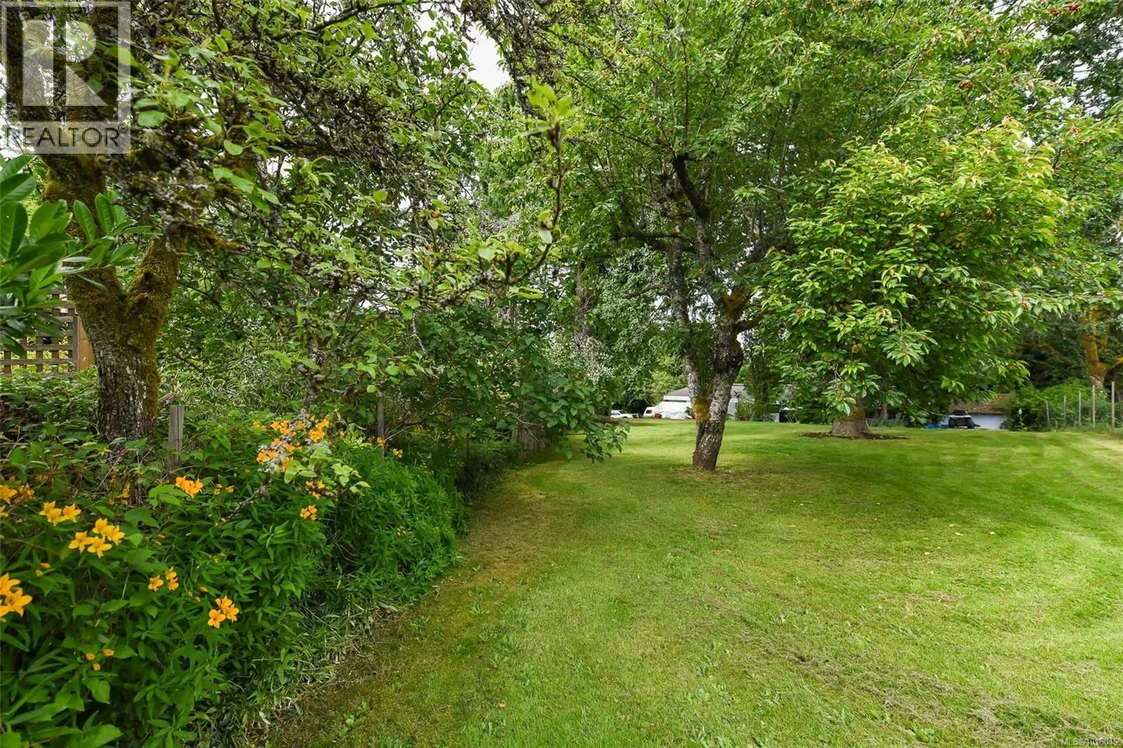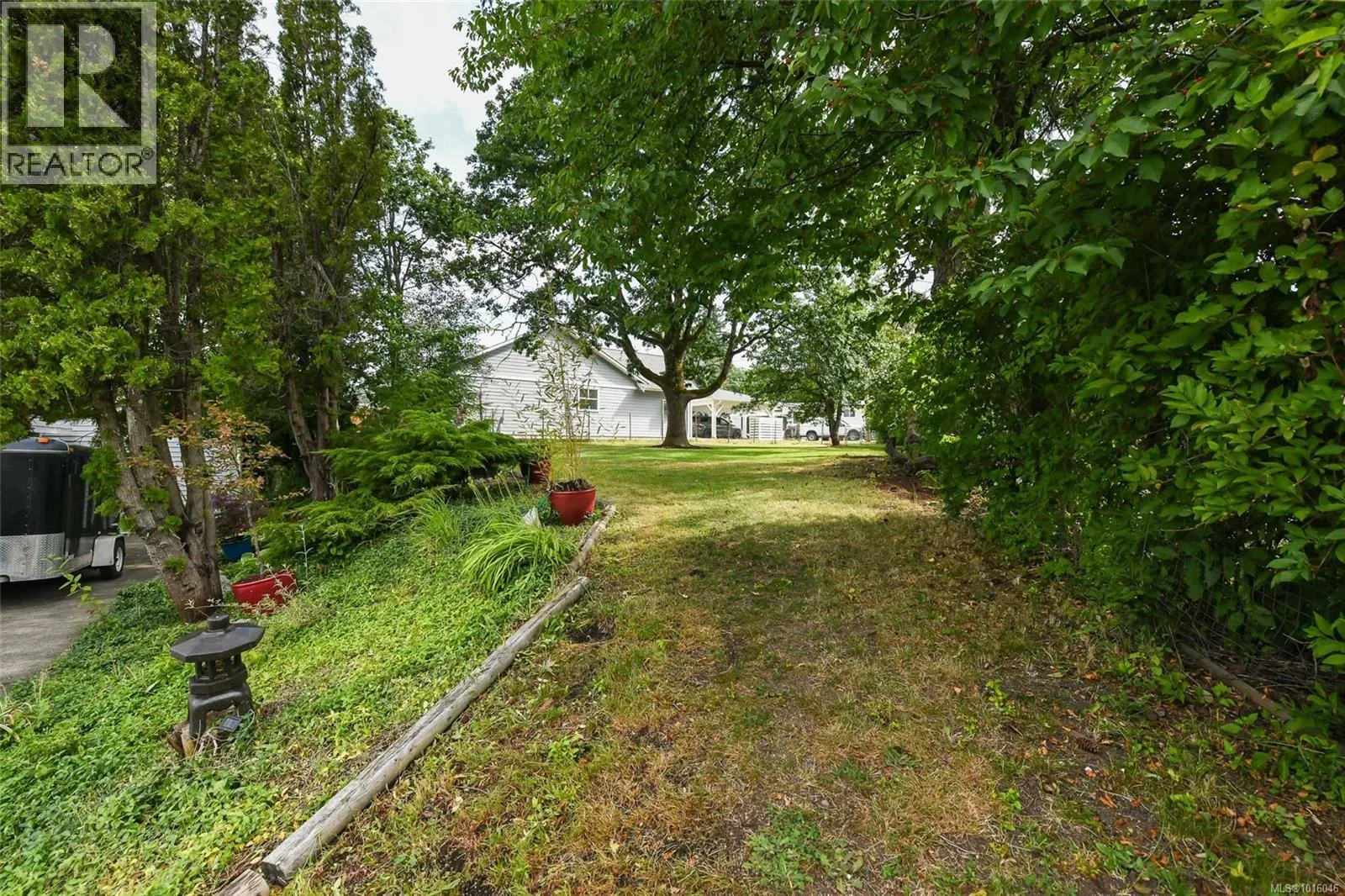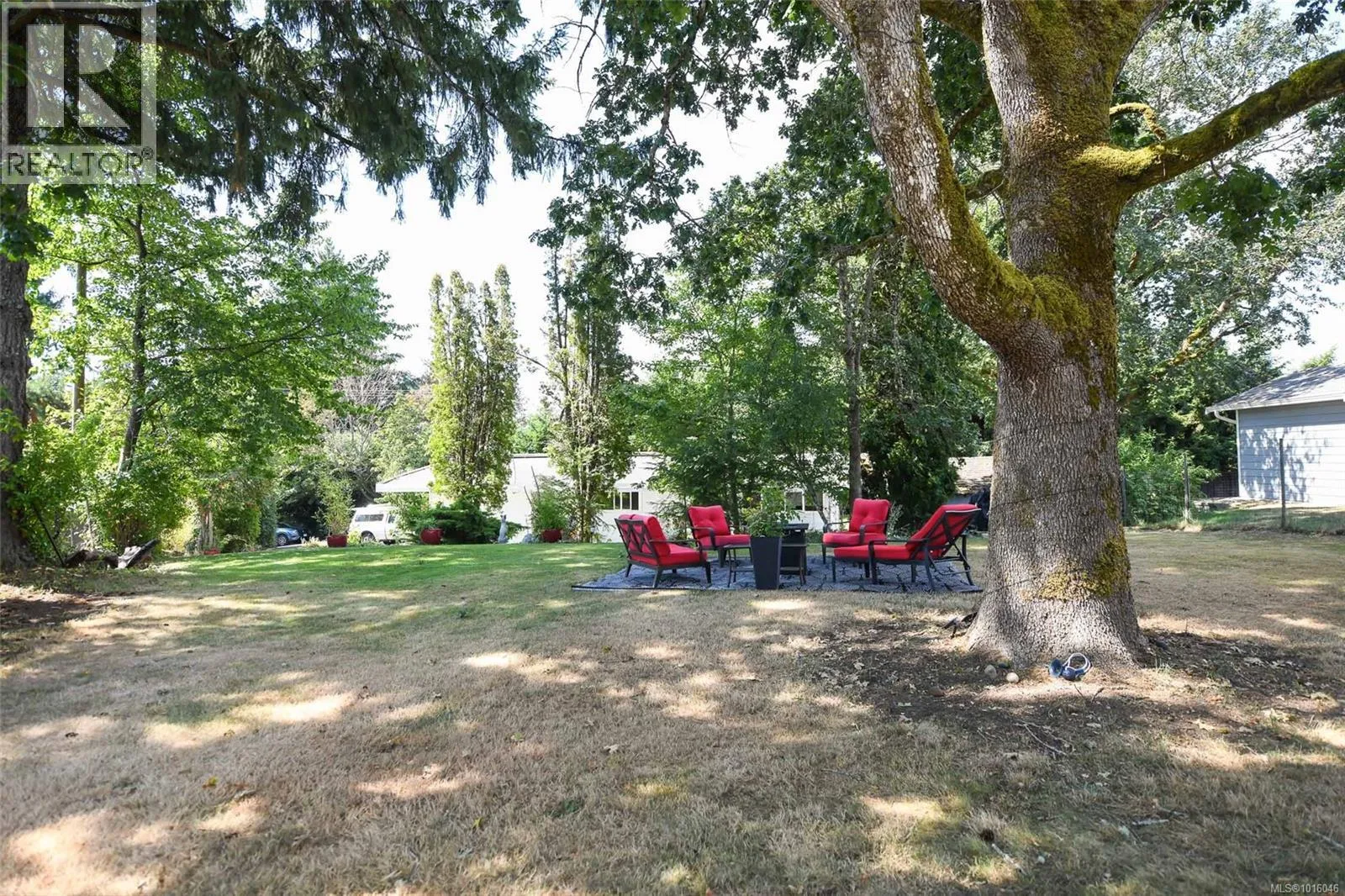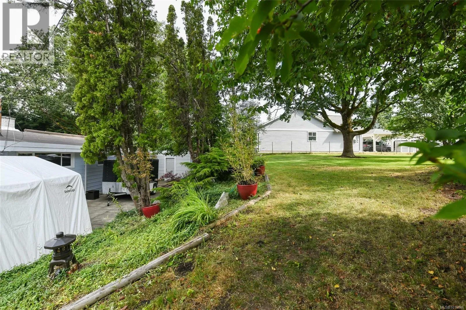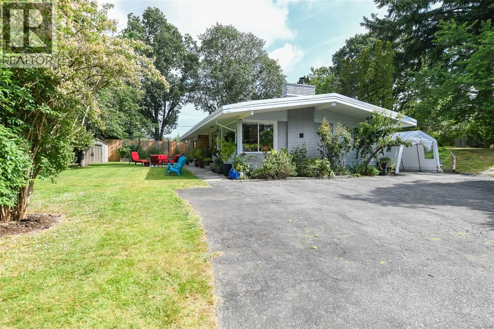 Mid-Century Modern Rancher on Oversized Lot in Courtenay Just minutes north of downtown Courtenay, this charming mid-century modern rancher sits on a spacious 0.34-acre lot with dual frontage on Island Hwy and Oakridge Drive. There's plenty of room to park your RV, boat, or other toys. Inside, you'll love the vaulted ceilings and vinyl floors that add warmth and character to the living room, complete with a woodstove insert for cozy, efficient heating in the winter. The updated kitchen features tile backsplash, modern cabinetry, and a convenient peninsula for extra prep space. Offering 3 bedrooms, 1 full bathroom, and a generous utility/storage room. Step outside into a beautifully private yard dotted with Garry oaks â ideal for entertaining, gardening, or simply enjoying the outdoors. With new R-SSMUH zoning, explore the potential to add a secondary suite, carriage house, granny flat, or even investigate subdivision options (verify with the City of Courtenay) (id:27476)