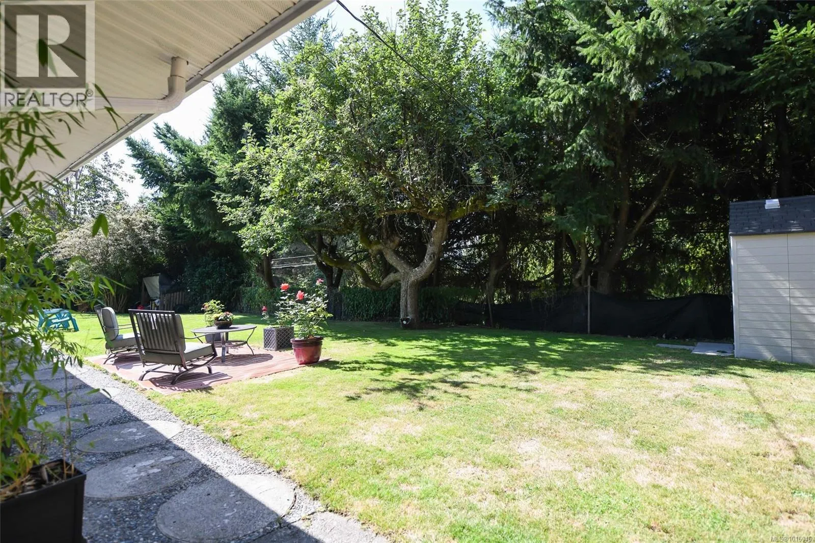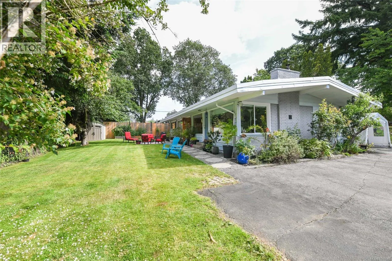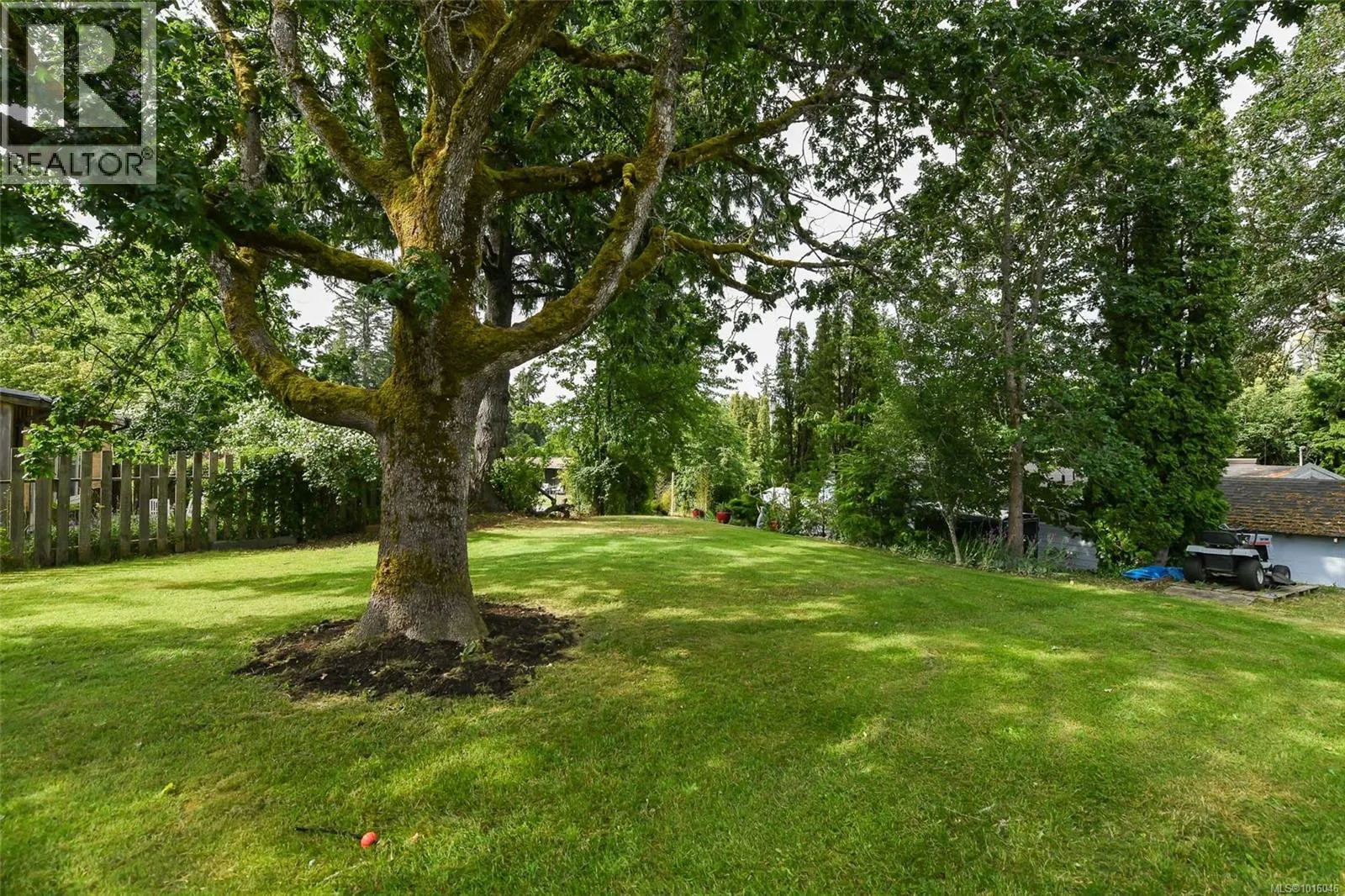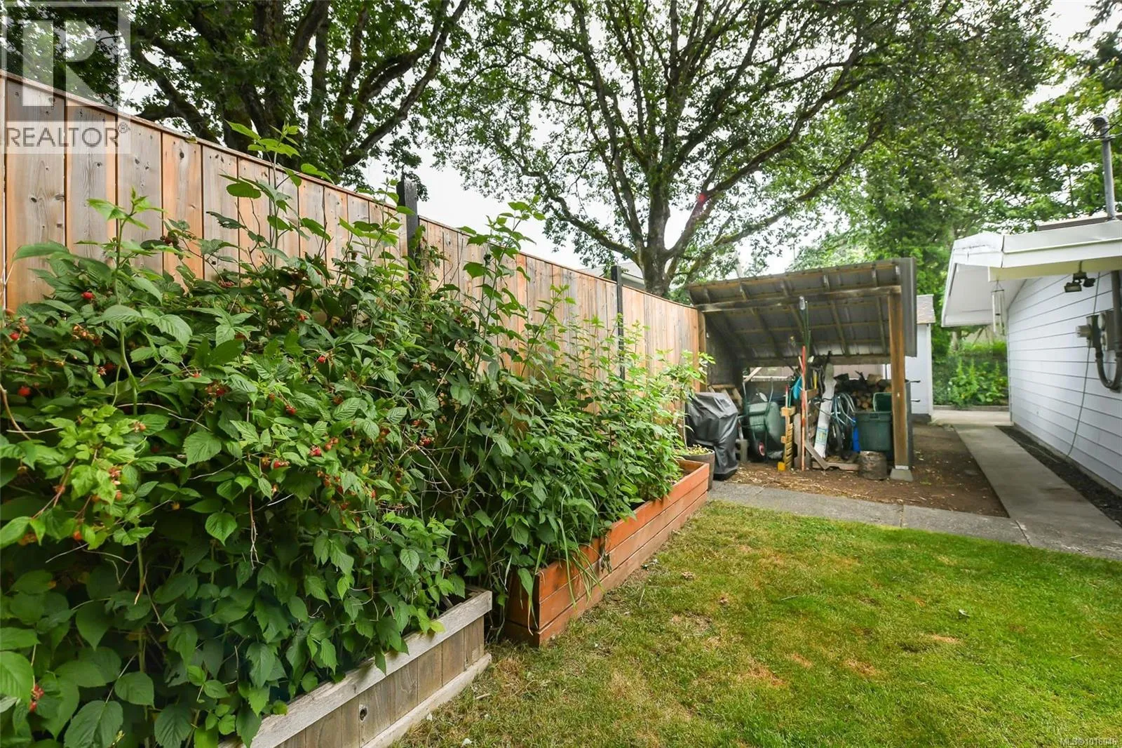 Mid-Century Modern Rancher on Oversized Lot in Courtenay Just minutes north of downtown Courtenay, this charming mid-century modern rancher sits on a spacious 0.34-acre lot with dual frontage on Island Hwy and Oakridge Drive. There's plenty of room to park your RV, boat, or other toys. Inside, you'll love the vaulted ceilings and vinyl floors that add warmth and character to the living room, complete with a woodstove insert for cozy, efficient heating in the winter. The updated kitchen features tile backsplash, modern cabinetry, and a convenient peninsula for extra prep space. Offering 3 bedrooms, 1 full bathroom, and a generous utility/storage room. Step outside into a beautifully private yard dotted with Garry oaks â ideal for entertaining, gardening, or simply enjoying the outdoors. With new R-SSMUH zoning, explore the potential to add a secondary suite, carriage house, granny flat, or even investigate subdivision options (verify with the City of Courtenay) (id:27476)