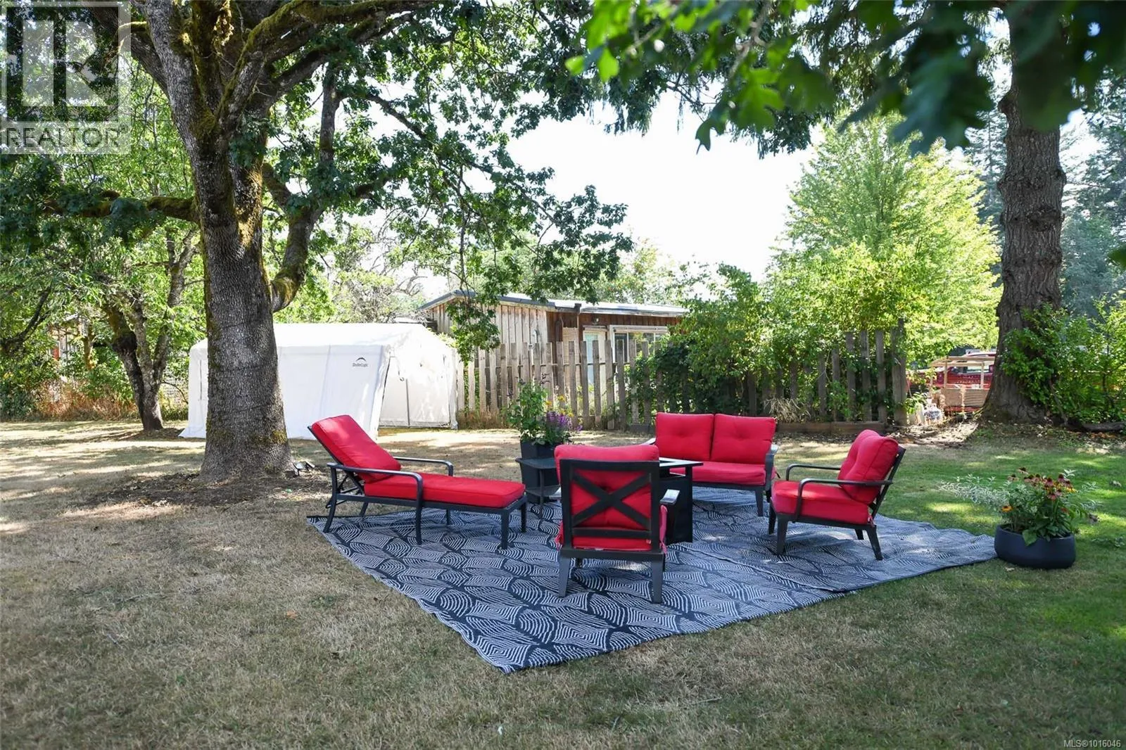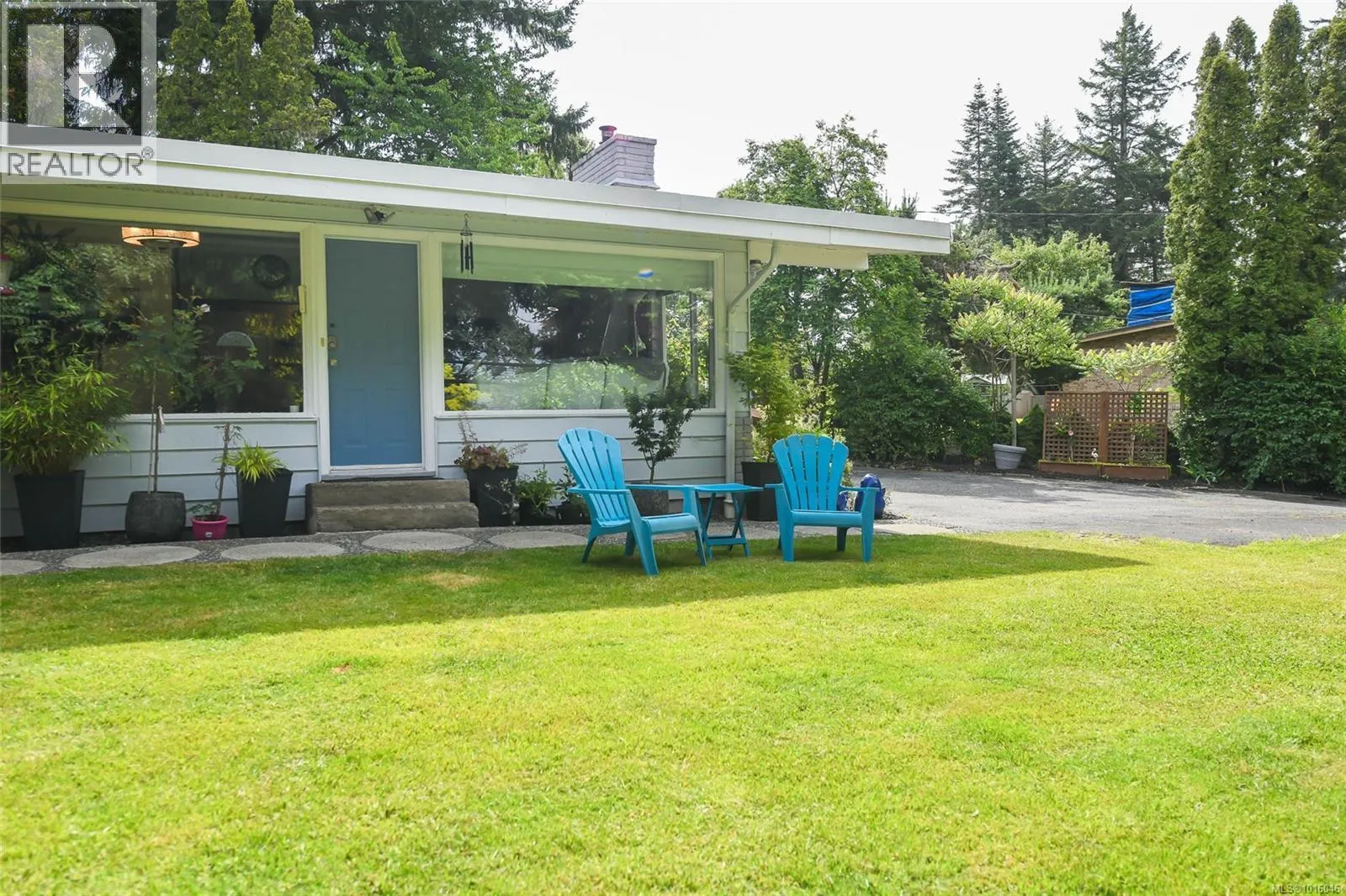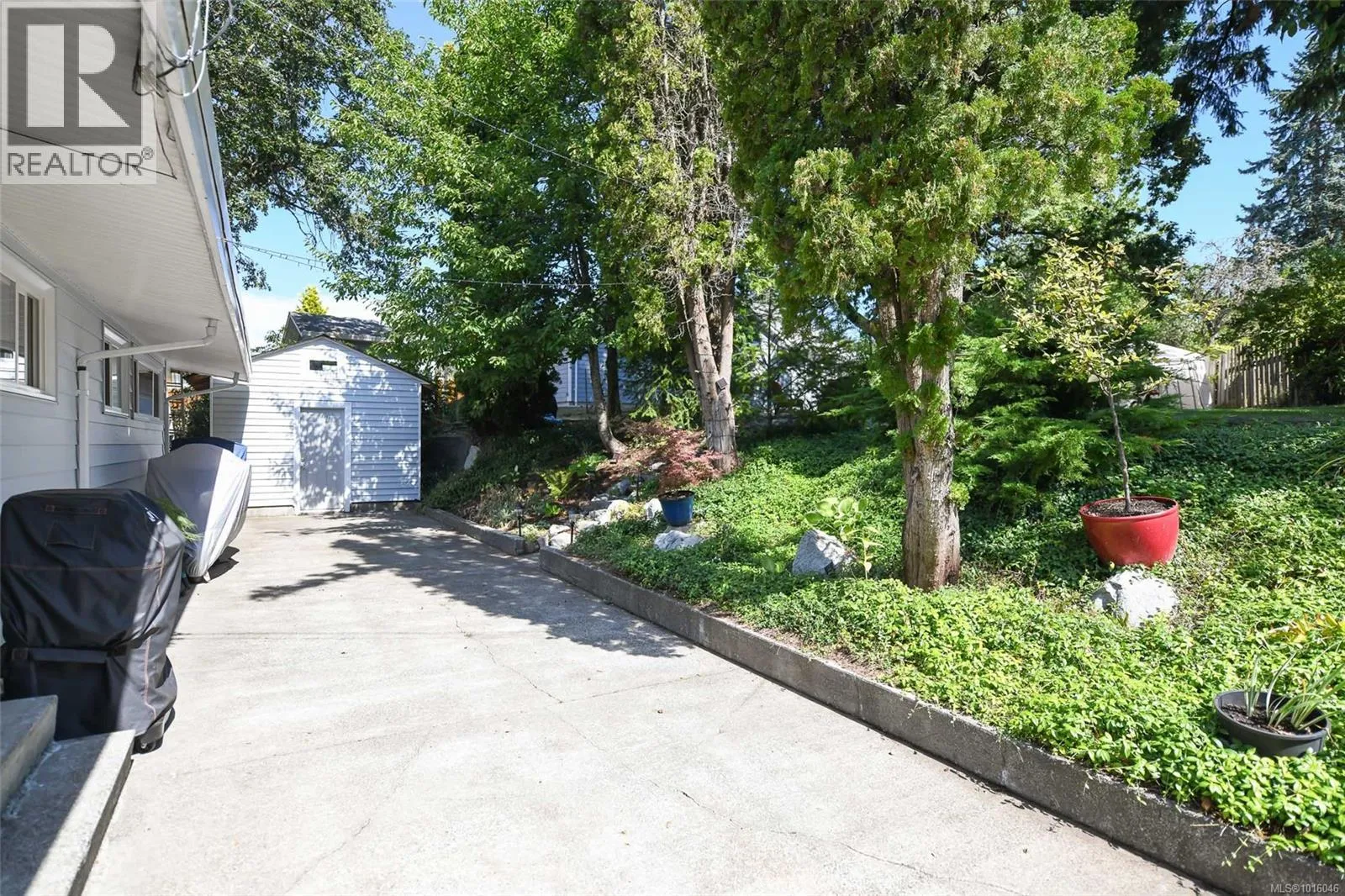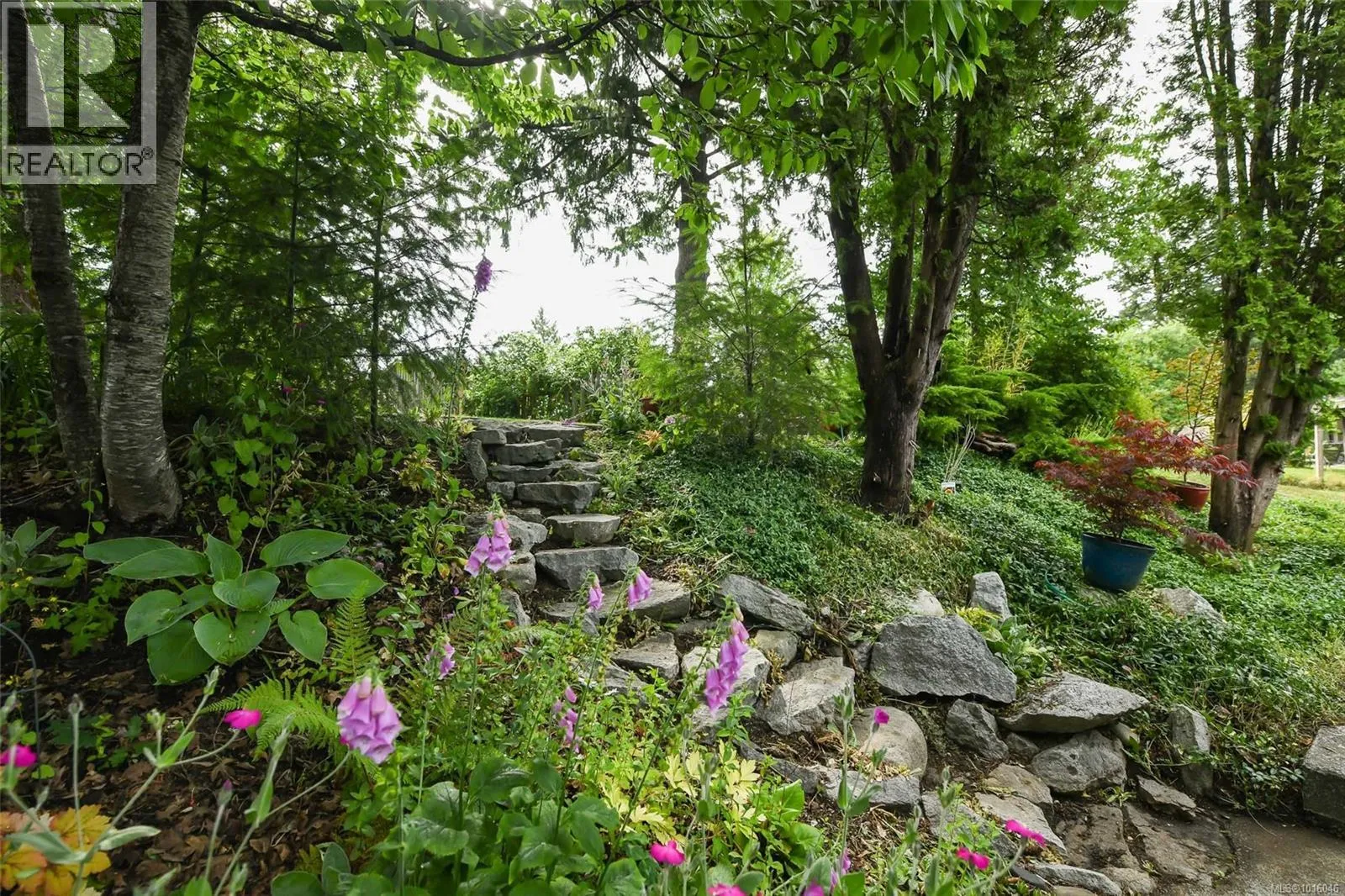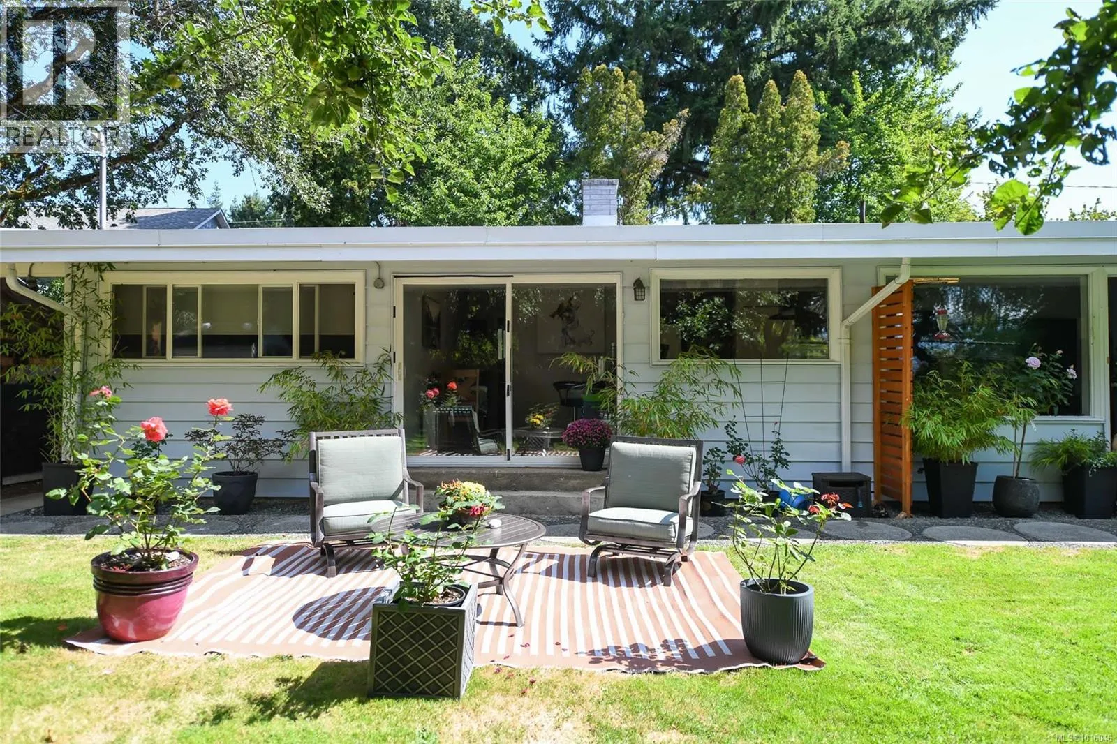 Mid-Century Modern Rancher on Oversized Lot in Courtenay Just minutes north of downtown Courtenay, this charming mid-century modern rancher sits on a spacious 0.34-acre lot with dual frontage on Island Hwy and Oakridge Drive. There's plenty of room to park your RV, boat, or other toys. Inside, you'll love the vaulted ceilings and vinyl floors that add warmth and character to the living room, complete with a woodstove insert for cozy, efficient heating in the winter. The updated kitchen features tile backsplash, modern cabinetry, and a convenient peninsula for extra prep space. Offering 3 bedrooms, 1 full bathroom, and a generous utility/storage room. Step outside into a beautifully private yard dotted with Garry oaks â ideal for entertaining, gardening, or simply enjoying the outdoors. With new R-SSMUH zoning, explore the potential to add a secondary suite, carriage house, granny flat, or even investigate subdivision options (verify with the City of Courtenay) (id:27476)