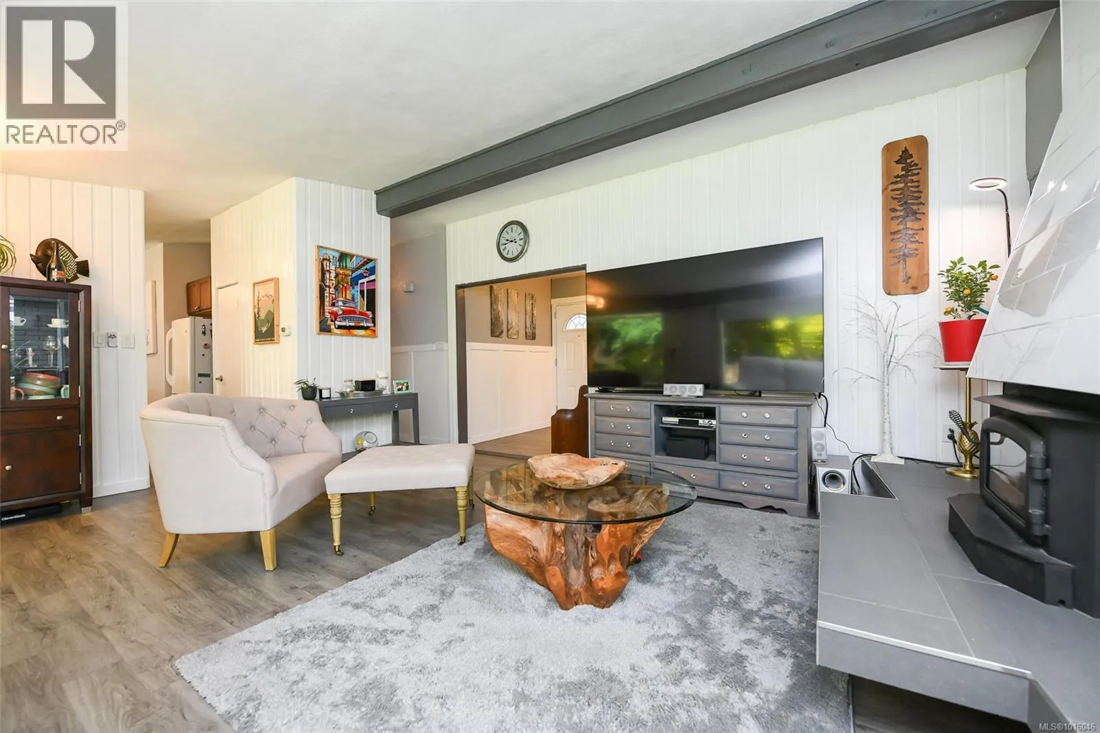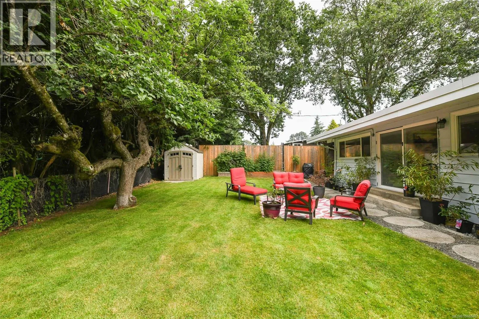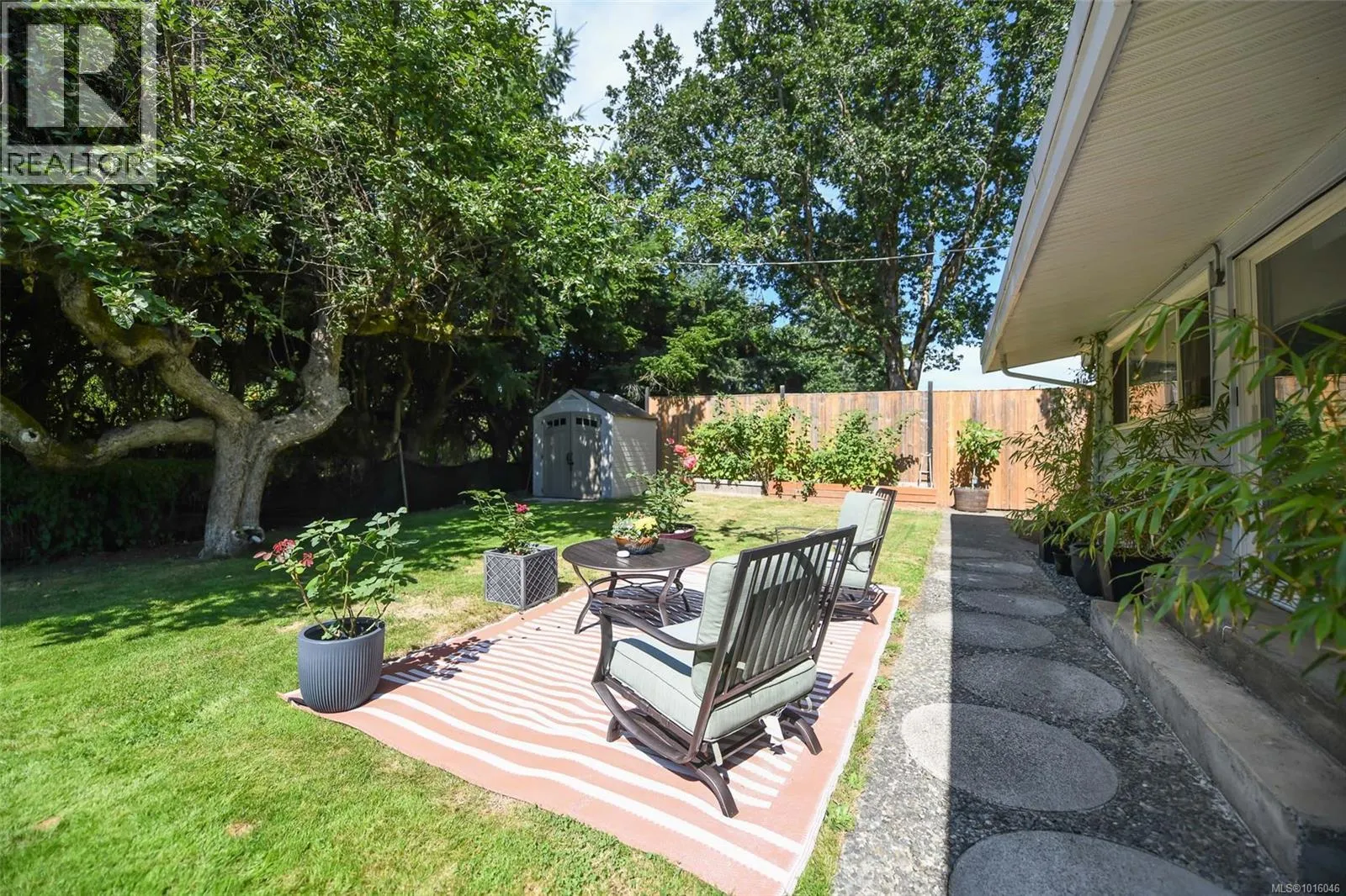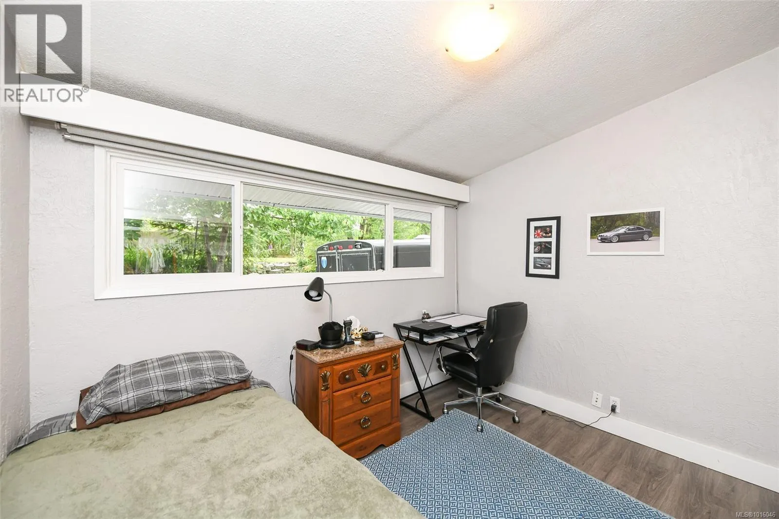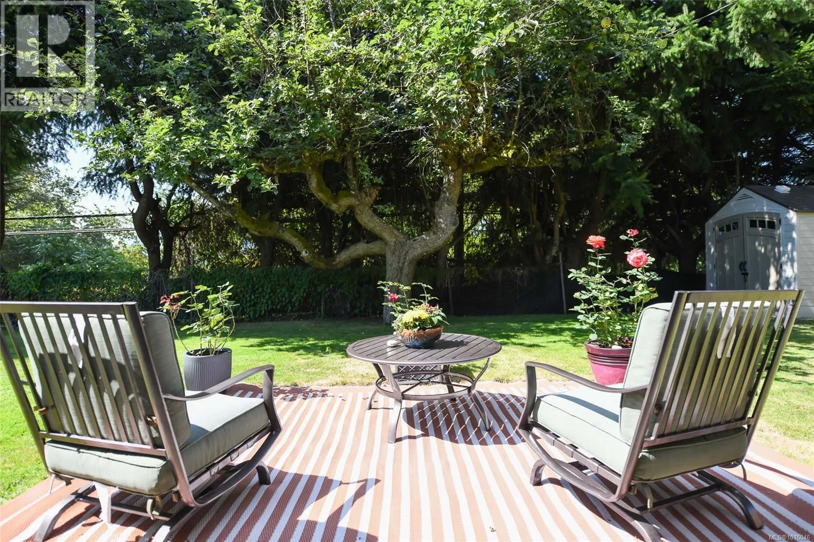 Mid-Century Modern Rancher on Oversized Lot in Courtenay Just minutes north of downtown Courtenay, this charming mid-century modern rancher sits on a spacious 0.34-acre lot with dual frontage on Island Hwy and Oakridge Drive. There's plenty of room to park your RV, boat, or other toys. Inside, you'll love the vaulted ceilings and vinyl floors that add warmth and character to the living room, complete with a woodstove insert for cozy, efficient heating in the winter. The updated kitchen features tile backsplash, modern cabinetry, and a convenient peninsula for extra prep space. Offering 3 bedrooms, 1 full bathroom, and a generous utility/storage room. Step outside into a beautifully private yard dotted with Garry oaks â ideal for entertaining, gardening, or simply enjoying the outdoors. With new R-SSMUH zoning, explore the potential to add a secondary suite, carriage house, granny flat, or even investigate subdivision options (verify with the City of Courtenay) (id:27476)