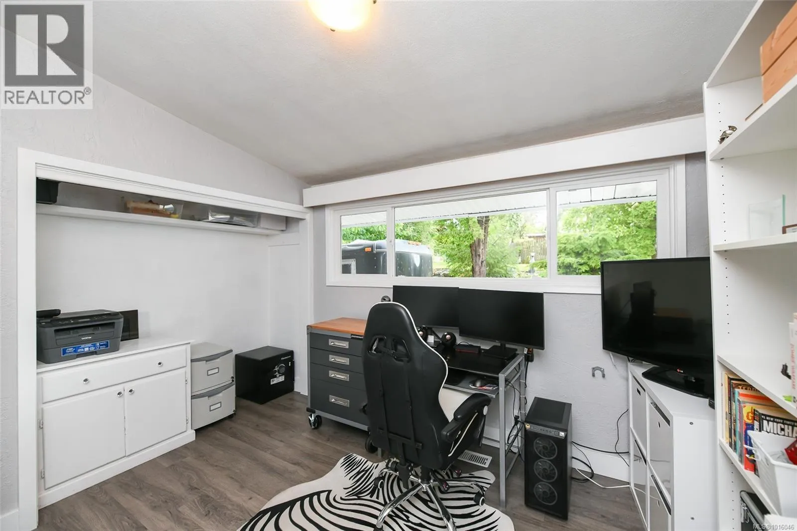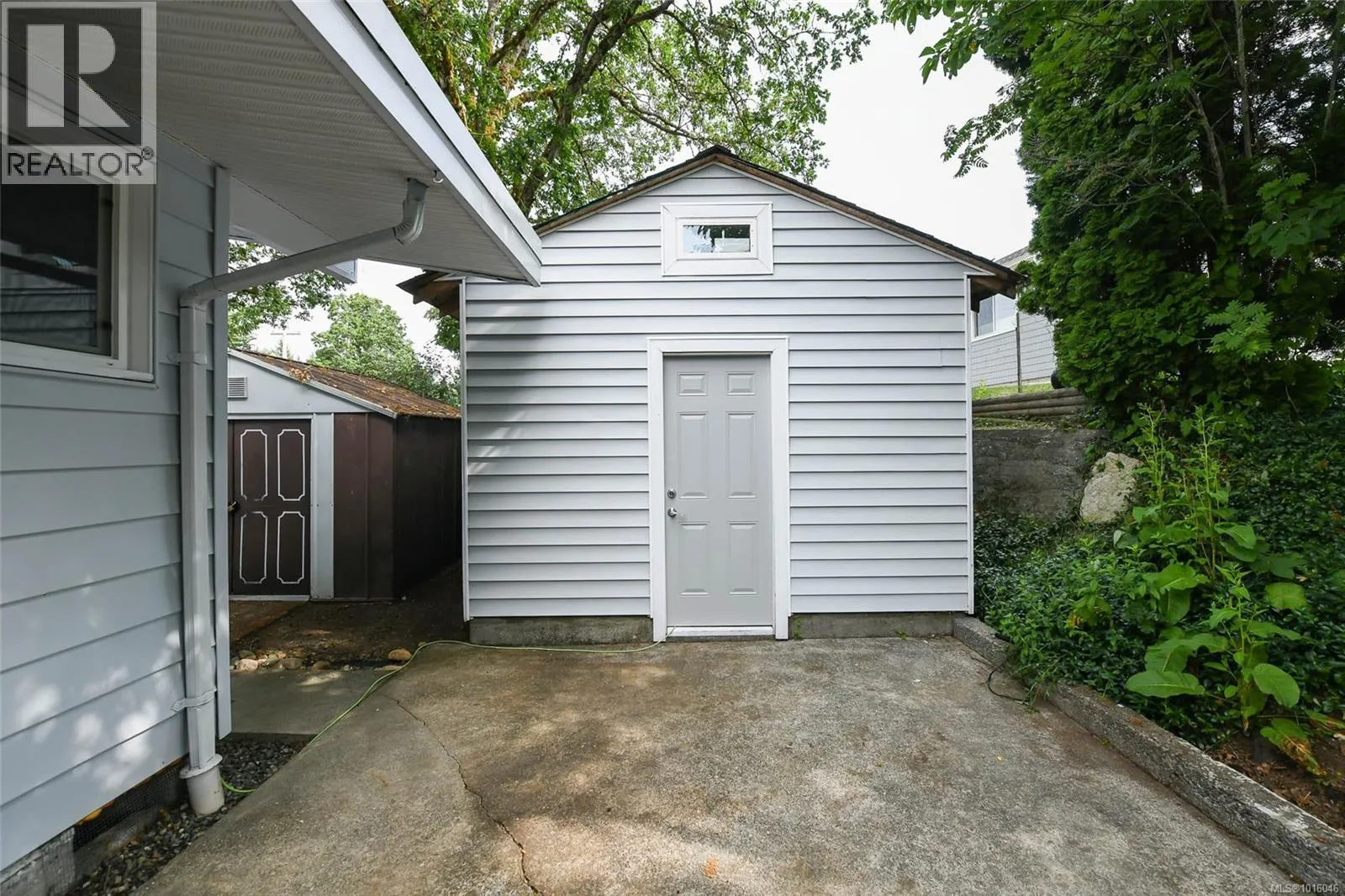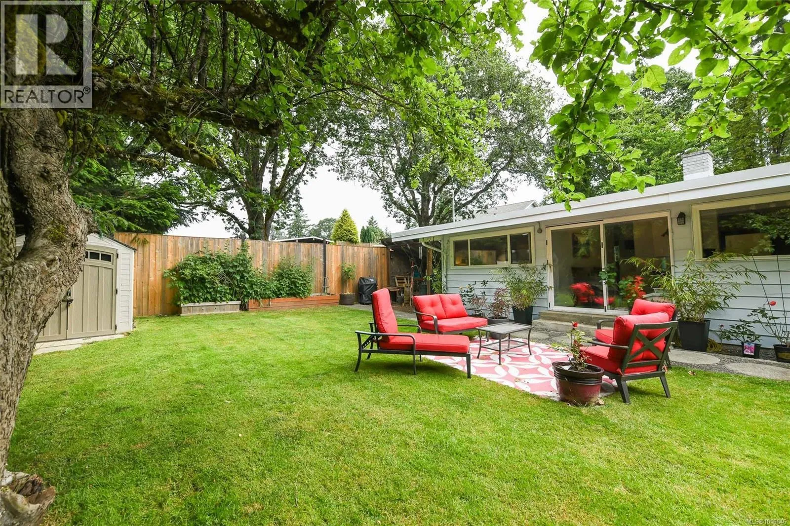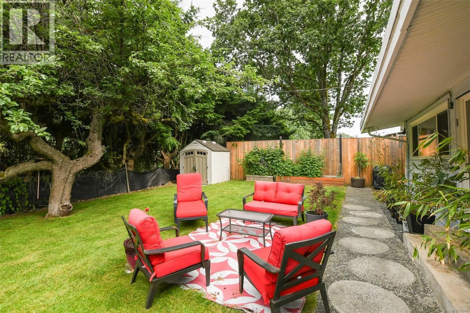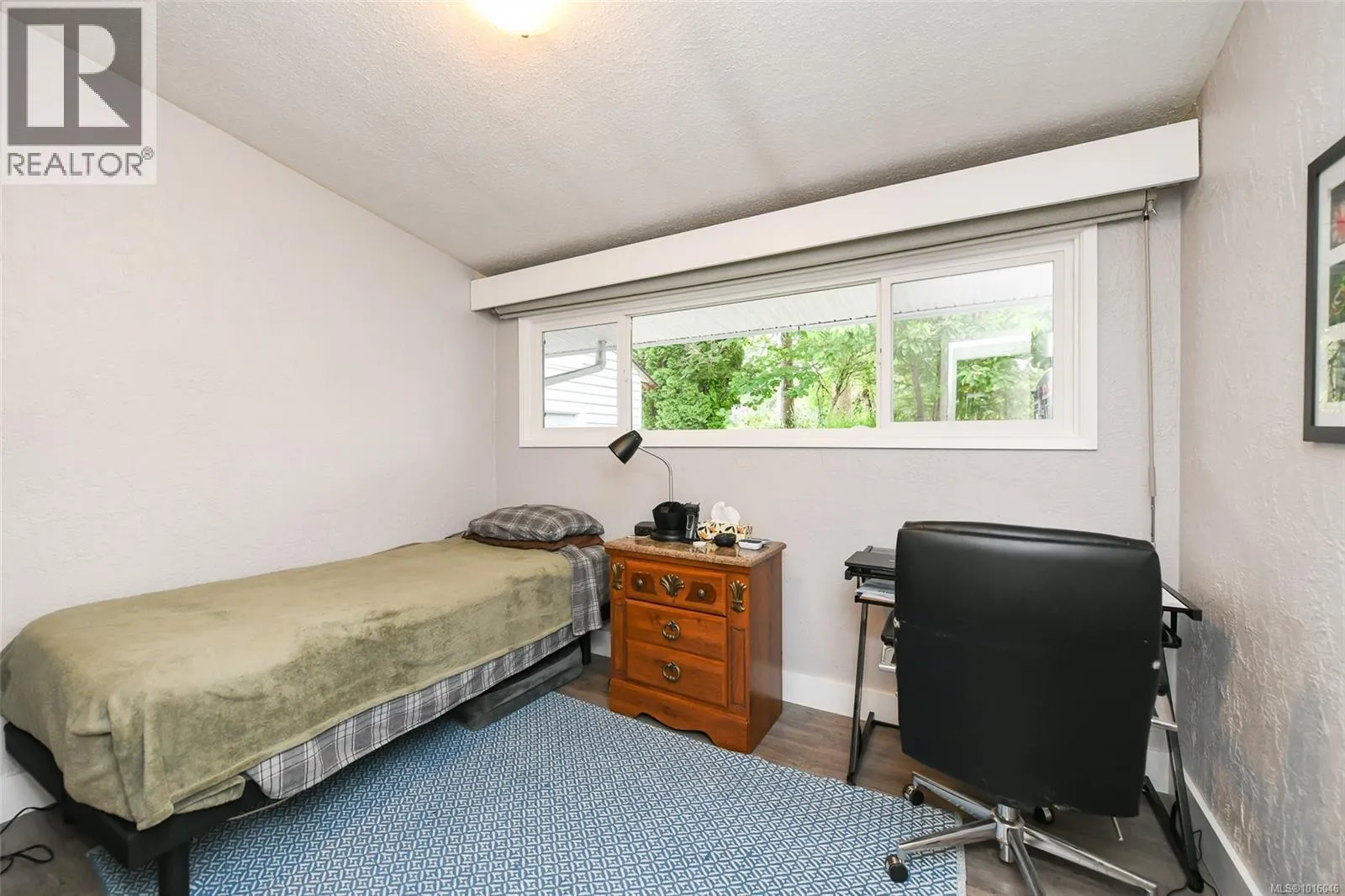 Mid-Century Modern Rancher on Oversized Lot in Courtenay Just minutes north of downtown Courtenay, this charming mid-century modern rancher sits on a spacious 0.34-acre lot with dual frontage on Island Hwy and Oakridge Drive. There's plenty of room to park your RV, boat, or other toys. Inside, you'll love the vaulted ceilings and vinyl floors that add warmth and character to the living room, complete with a woodstove insert for cozy, efficient heating in the winter. The updated kitchen features tile backsplash, modern cabinetry, and a convenient peninsula for extra prep space. Offering 3 bedrooms, 1 full bathroom, and a generous utility/storage room. Step outside into a beautifully private yard dotted with Garry oaks â ideal for entertaining, gardening, or simply enjoying the outdoors. With new R-SSMUH zoning, explore the potential to add a secondary suite, carriage house, granny flat, or even investigate subdivision options (verify with the City of Courtenay) (id:27476)