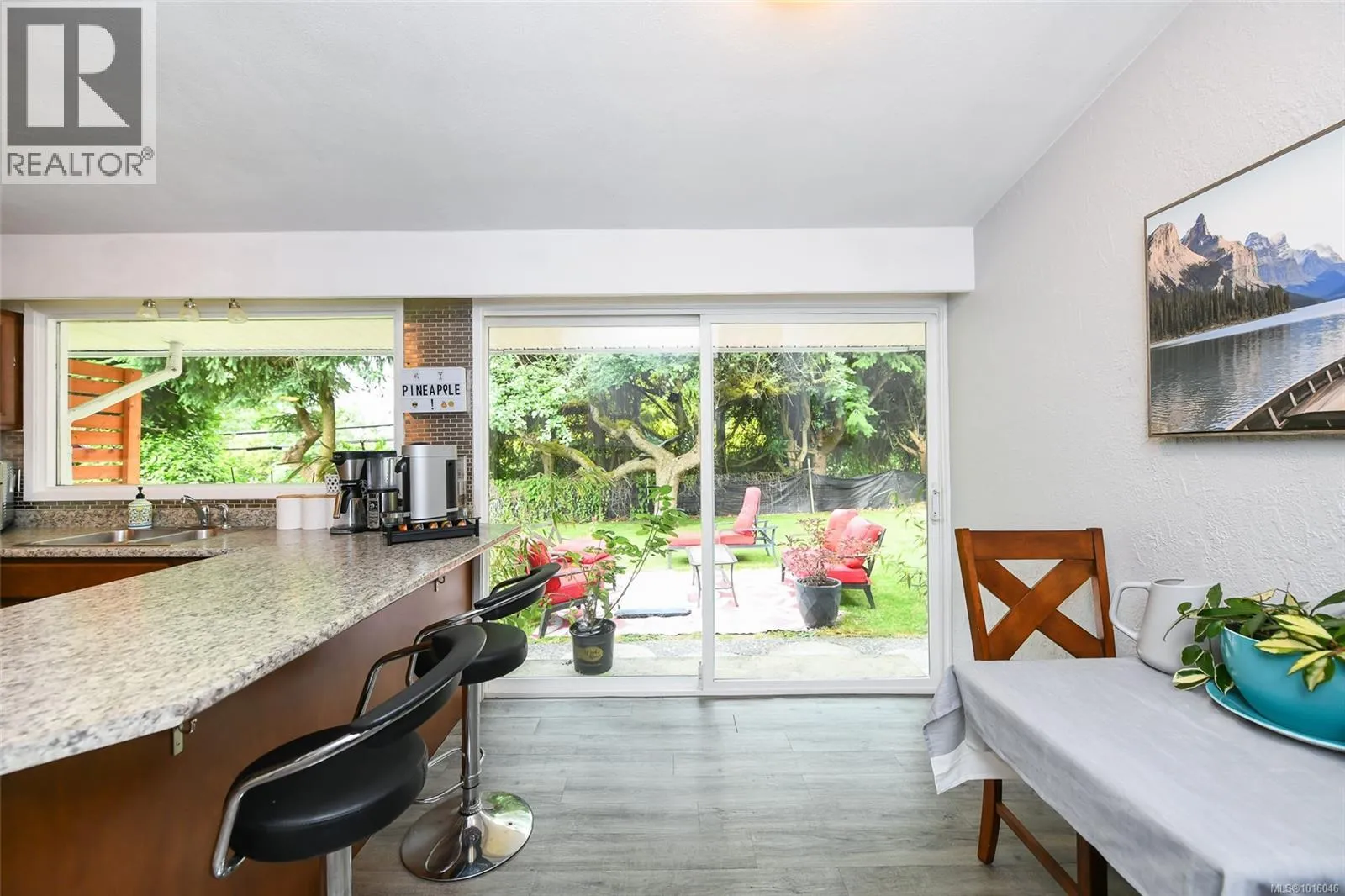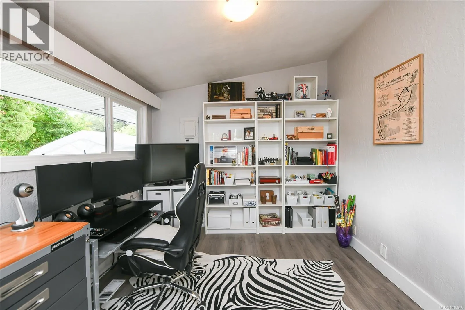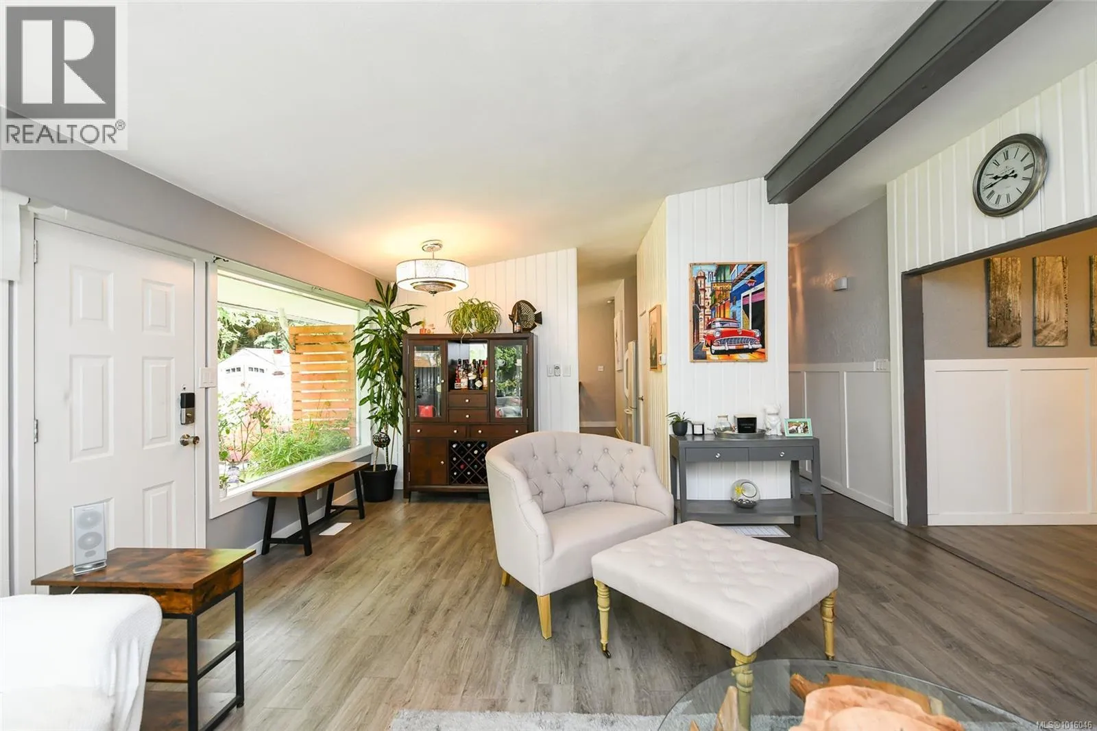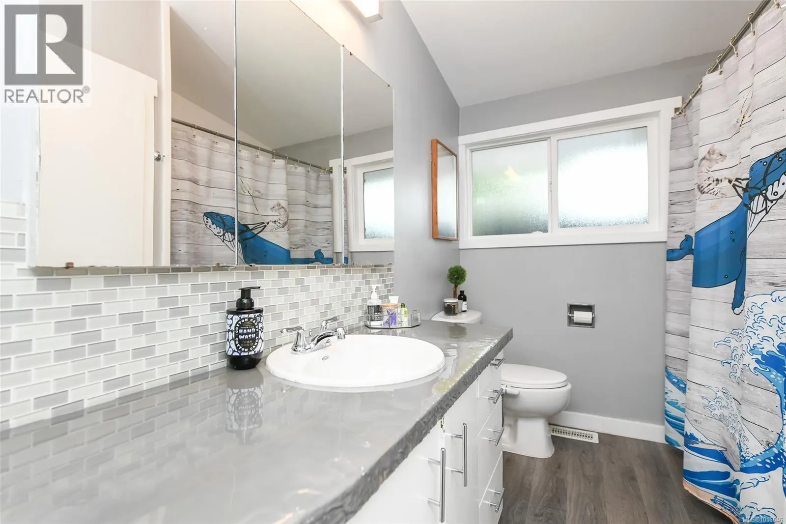 Mid-Century Modern Rancher on Oversized Lot in Courtenay Just minutes north of downtown Courtenay, this charming mid-century modern rancher sits on a spacious 0.34-acre lot with dual frontage on Island Hwy and Oakridge Drive. There's plenty of room to park your RV, boat, or other toys. Inside, you'll love the vaulted ceilings and vinyl floors that add warmth and character to the living room, complete with a woodstove insert for cozy, efficient heating in the winter. The updated kitchen features tile backsplash, modern cabinetry, and a convenient peninsula for extra prep space. Offering 3 bedrooms, 1 full bathroom, and a generous utility/storage room. Step outside into a beautifully private yard dotted with Garry oaks â ideal for entertaining, gardening, or simply enjoying the outdoors. With new R-SSMUH zoning, explore the potential to add a secondary suite, carriage house, granny flat, or even investigate subdivision options (verify with the City of Courtenay) (id:27476)