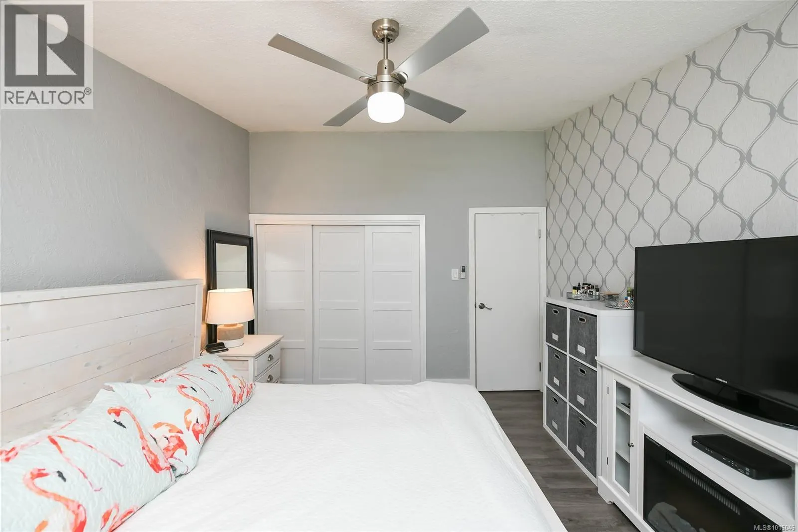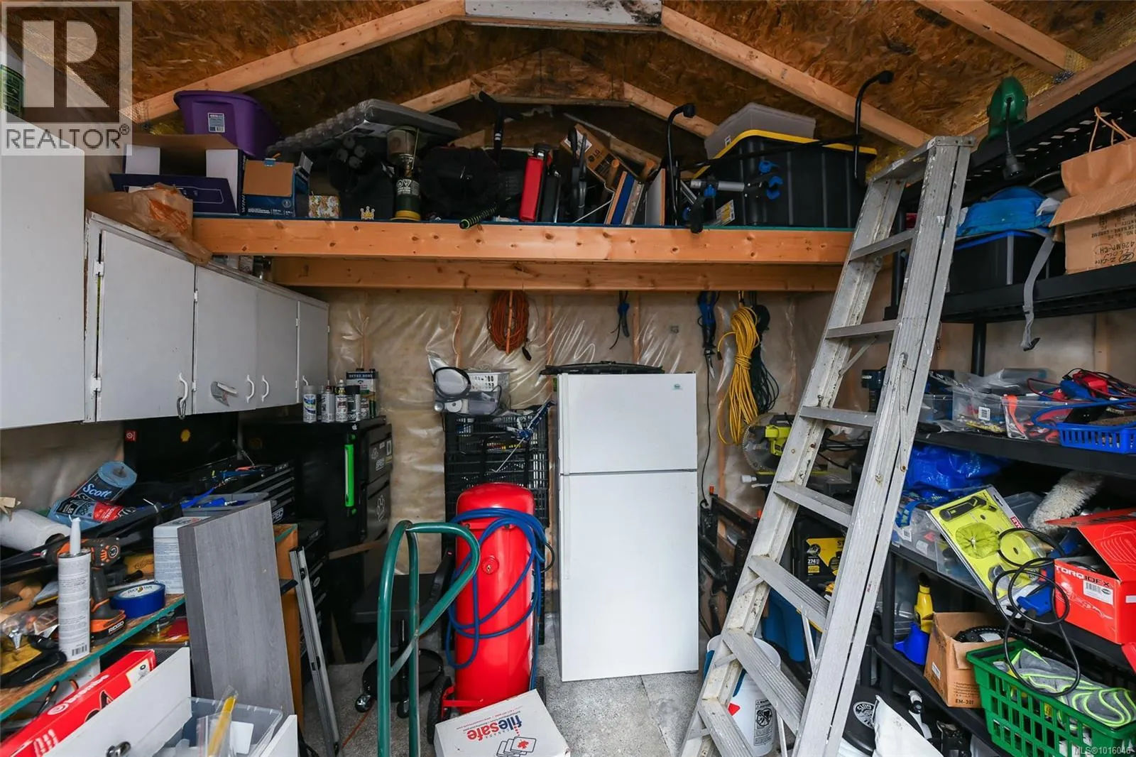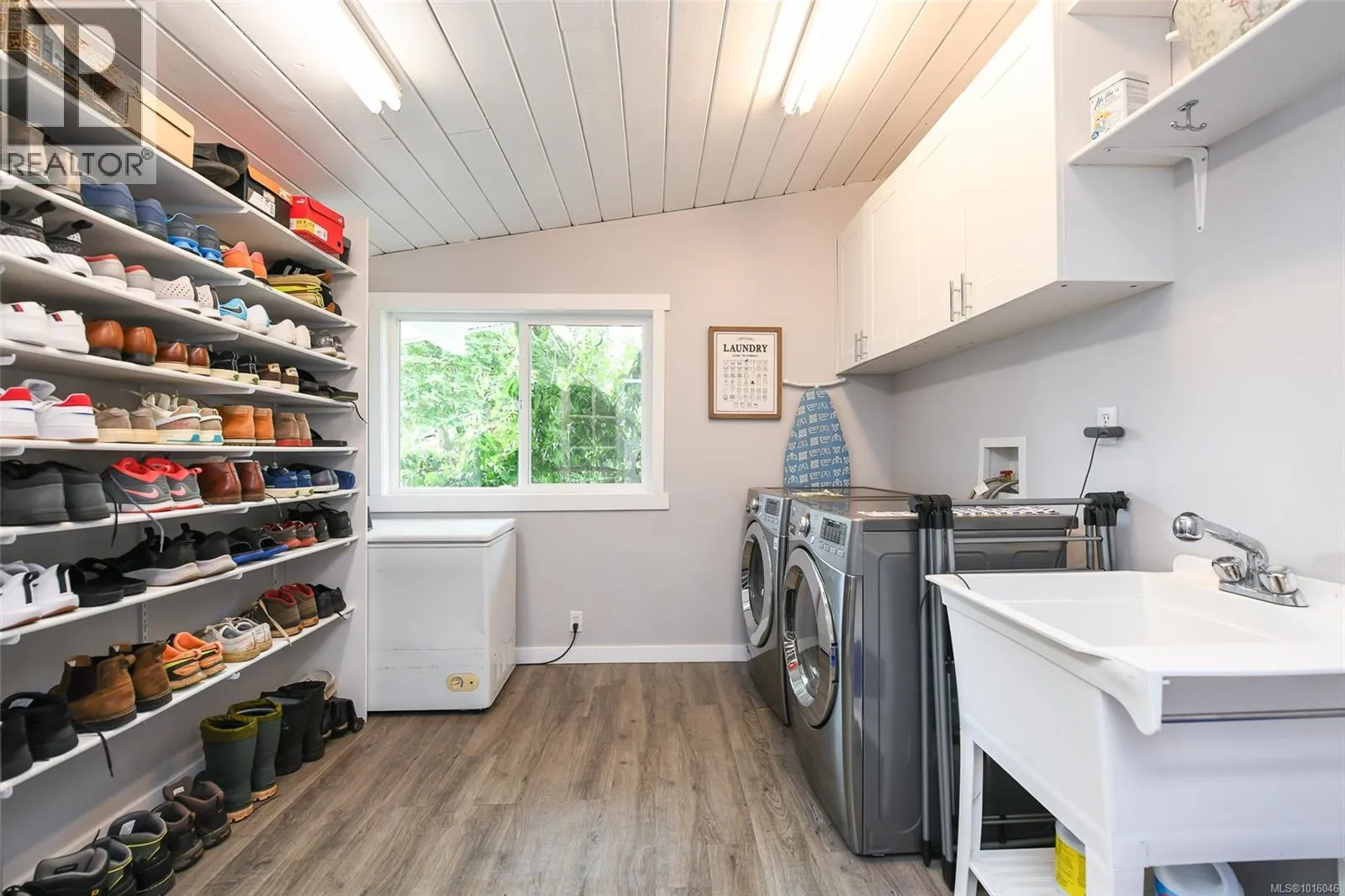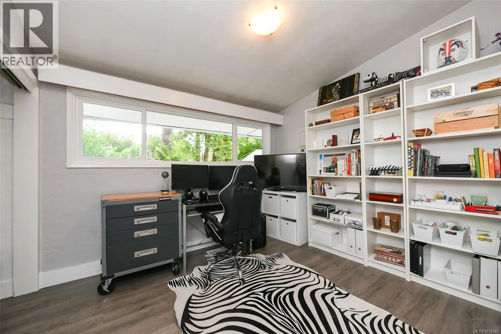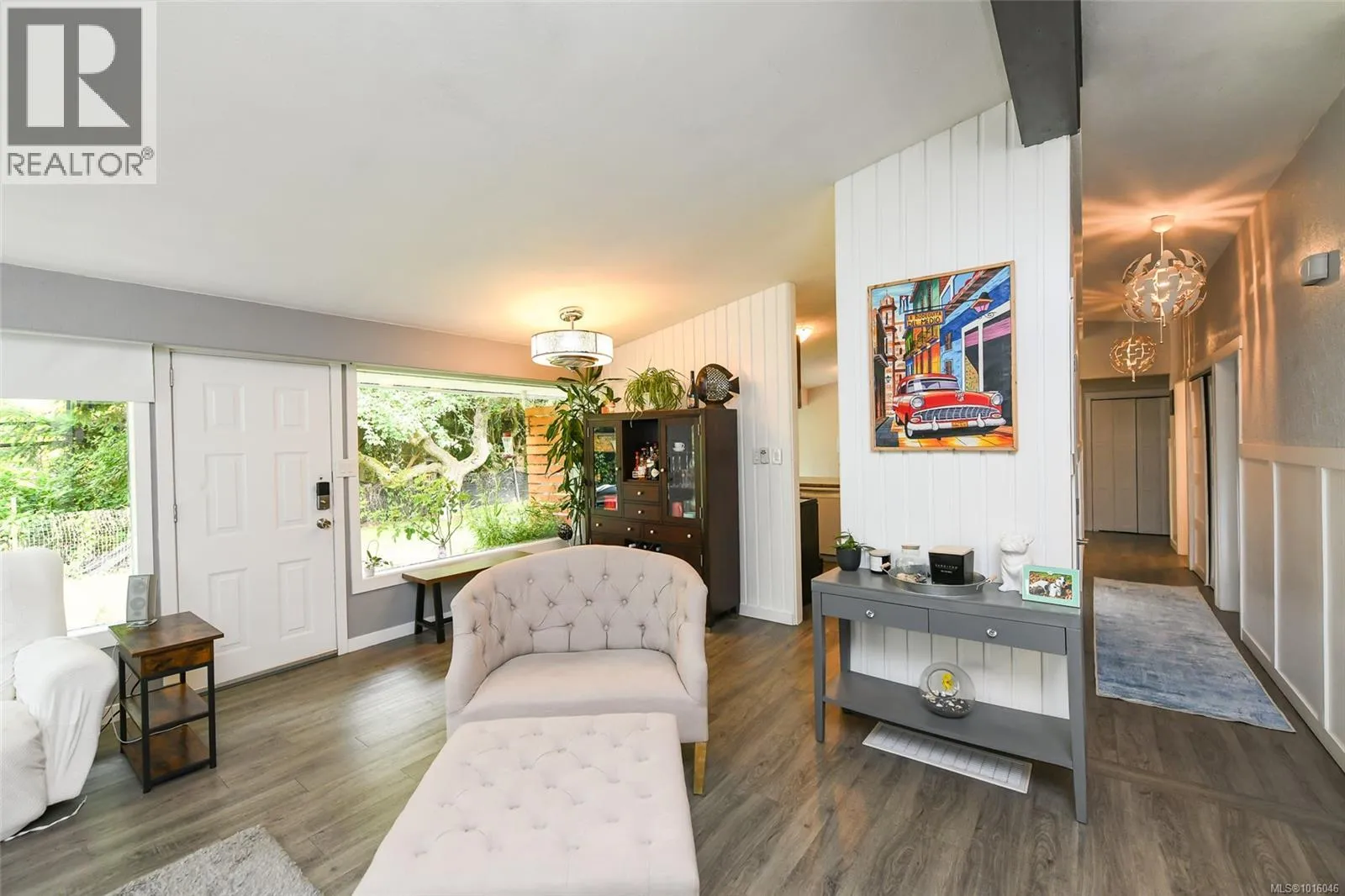 Mid-Century Modern Rancher on Oversized Lot in Courtenay Just minutes north of downtown Courtenay, this charming mid-century modern rancher sits on a spacious 0.34-acre lot with dual frontage on Island Hwy and Oakridge Drive. There's plenty of room to park your RV, boat, or other toys. Inside, you'll love the vaulted ceilings and vinyl floors that add warmth and character to the living room, complete with a woodstove insert for cozy, efficient heating in the winter. The updated kitchen features tile backsplash, modern cabinetry, and a convenient peninsula for extra prep space. Offering 3 bedrooms, 1 full bathroom, and a generous utility/storage room. Step outside into a beautifully private yard dotted with Garry oaks â ideal for entertaining, gardening, or simply enjoying the outdoors. With new R-SSMUH zoning, explore the potential to add a secondary suite, carriage house, granny flat, or even investigate subdivision options (verify with the City of Courtenay) (id:27476)