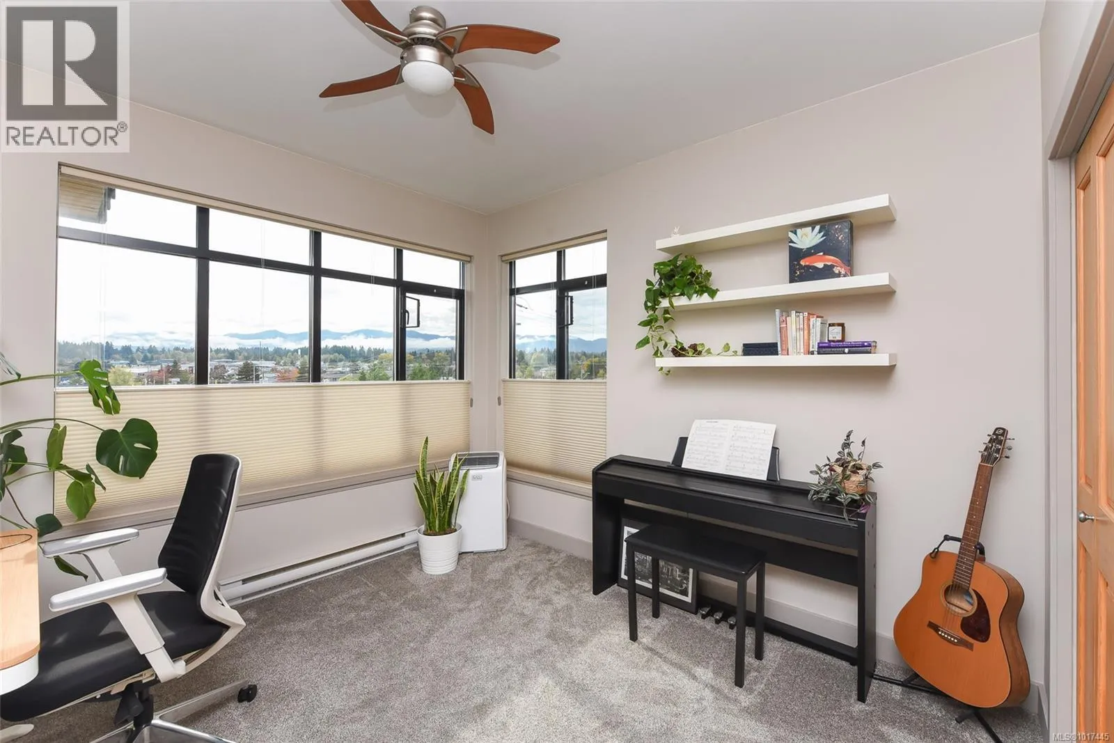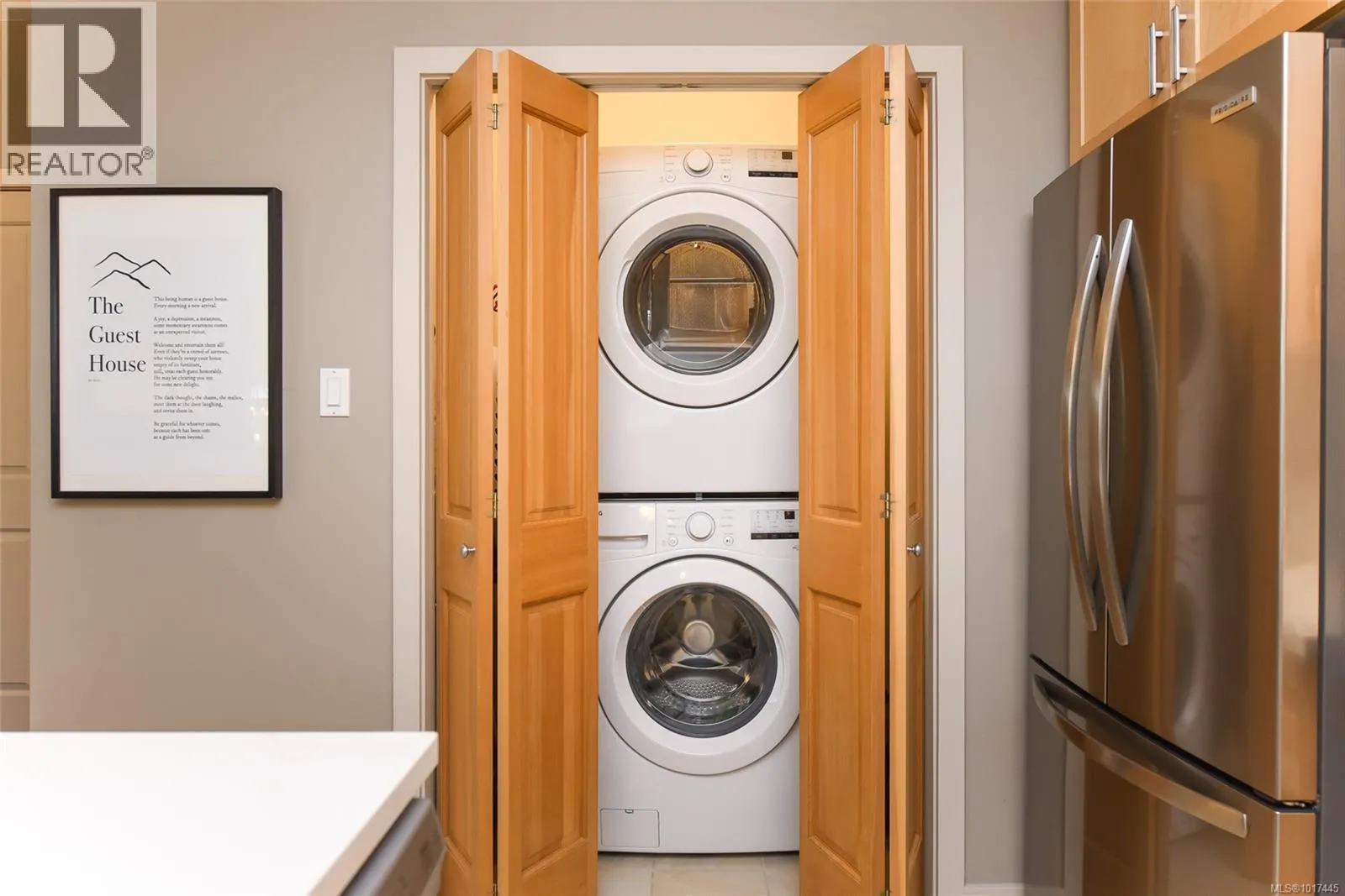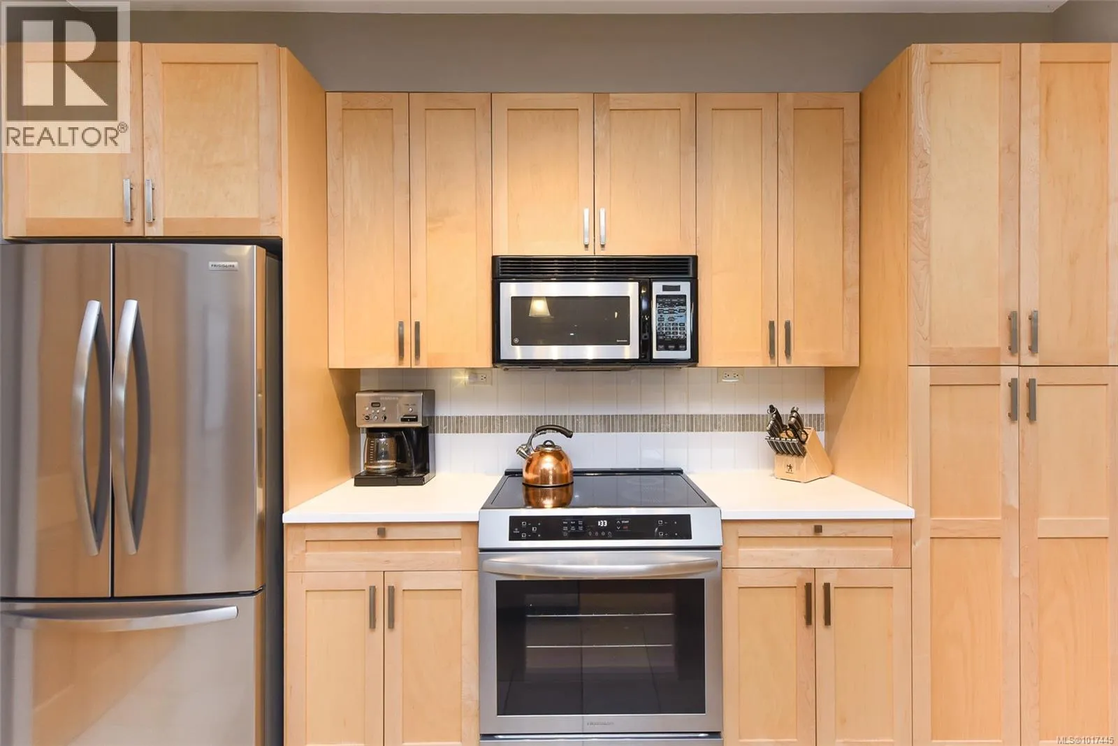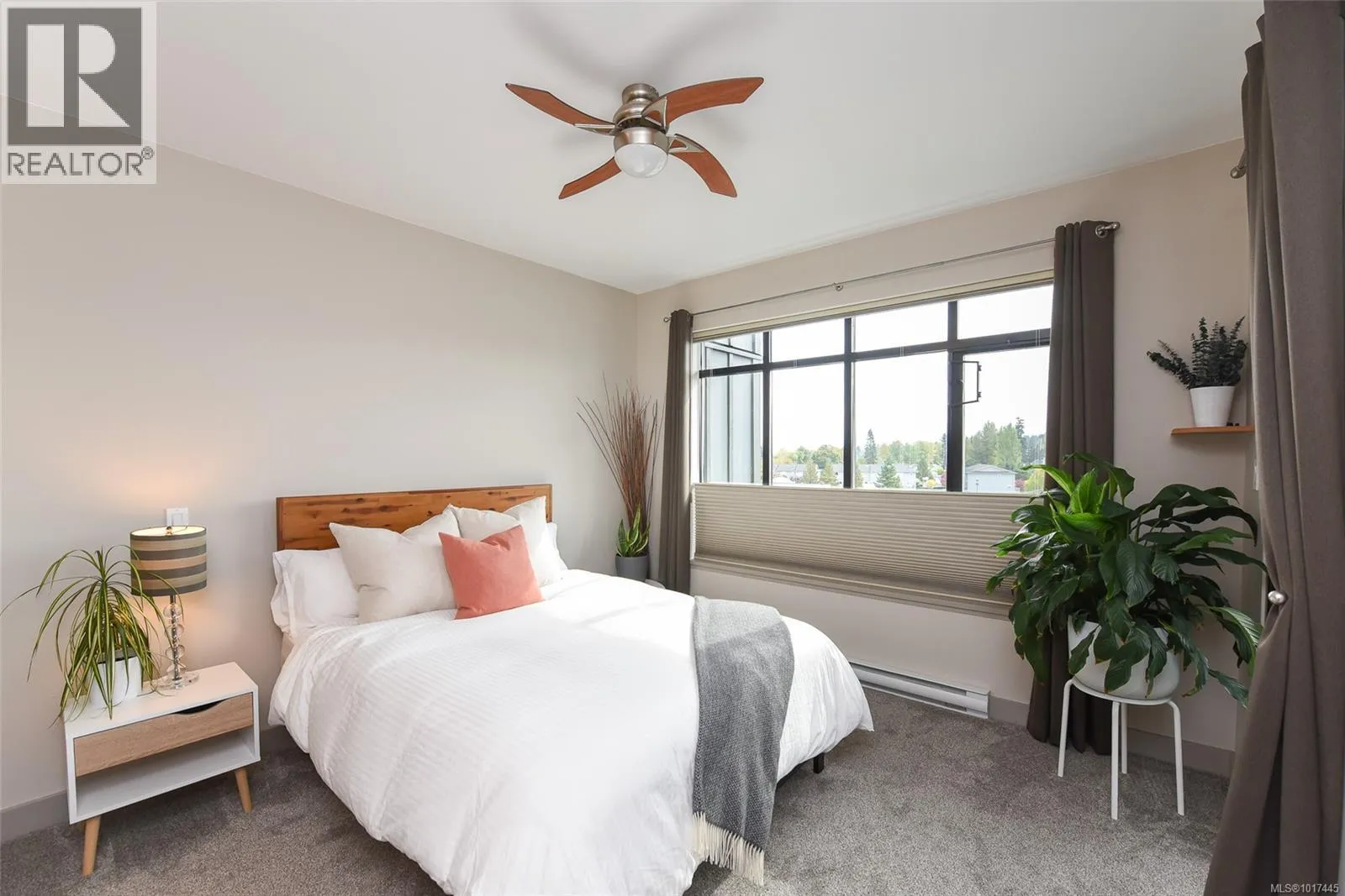 Experience luxury coastal living in this stunning top-floor residence in Building 1 of Trumpeterâs Landing. This bright and airy condo features 9-foot vaulted ceilings in the living room, and expansive windows that frame breathtaking mountain and ocean views. Thoughtfully updated with quartz countertops, new stainless steel appliances, and a sleek, modern aesthetic, this home offers a seamless blend of comfort and style. The open-concept layout is ideal for entertaining, while the balcony is the perfect place to relax and enjoy the west coast views. Located just steps from the Courtenay Riverway/Airpark, the marina, downtown shops, and cafes, this condo combines convenience with tranquility in a vibrant, walkable community. Part of a well-run and maintained strata, the building is pet-friendly â allowing up to one dog and one cat, or two cats. This is a rare opportunity to own a move-in ready, luxury condo in one of the Comox Valleyâs most desirable locations. (id:27476)