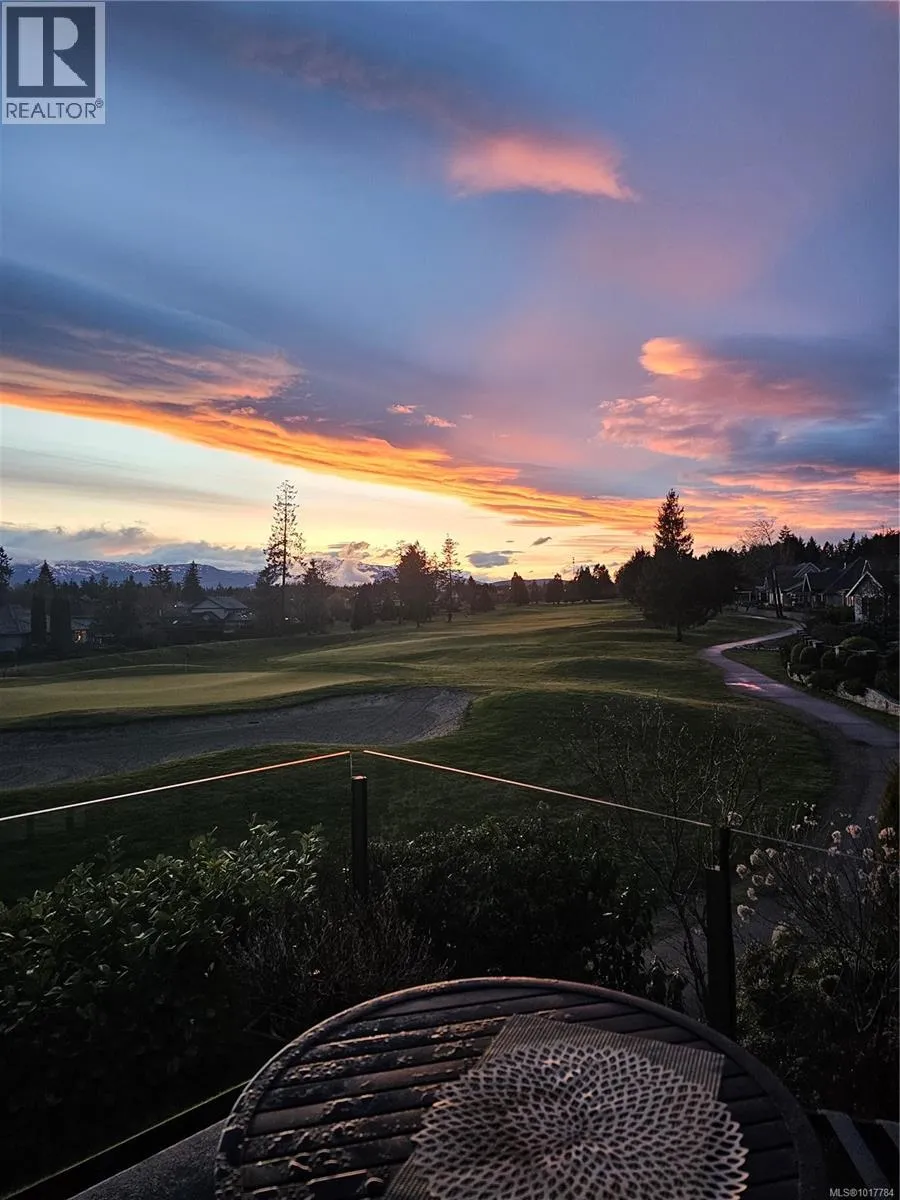 Exceptional custom-built home with stunning views of the 10th green, fairway, Comox Glacier, and surrounding mountains. Thoughtfully designed for comfort and elegance, this residence offers main-level living with soaring ceilings, modern lighting, and beautiful Acacia hardwood floors throughout. The chefâs kitchen features high-end appliances, quartz countertops, custom cabinetry, and a butlerâs pantry. The open-concept living and dining areas flow to a private, landscaped backyard with a tranquil waterfall pond with no bugs, perfect for entertaining or relaxing. The primary suite is a peaceful retreat with a fireplace, spa-inspired ensuite, walk-in closet, and French doors to the patio. Upstairs are two spacious bedrooms, a family room, and a sundeck with panoramic views. This highly energy efficient home comes complete with a built-in sound system, air-purified heat pump, and golf cart garage, this Crown Isle gem blends luxury, lifestyle, and location beautifully. (id:27476)