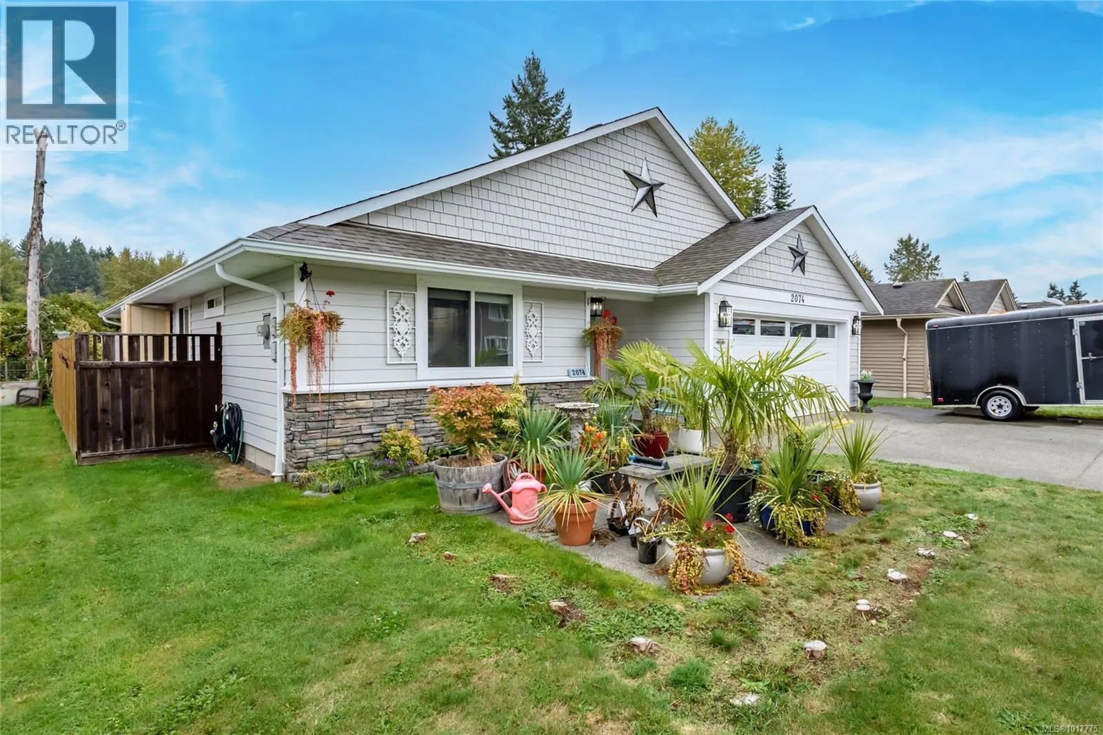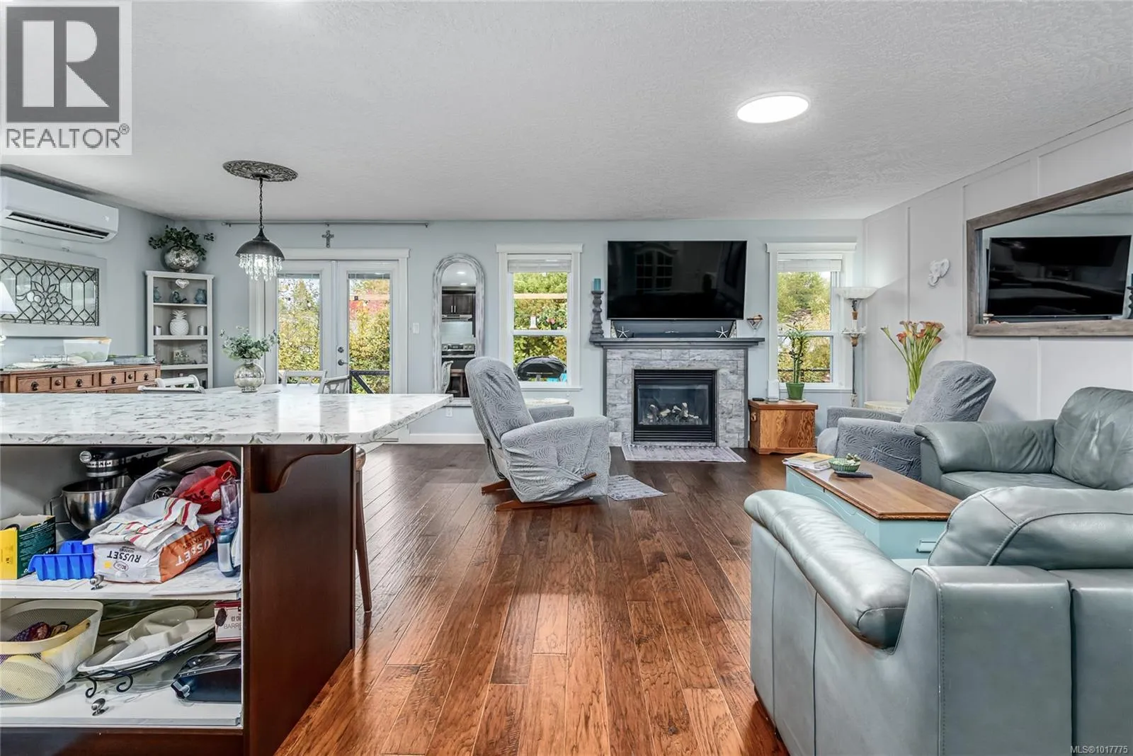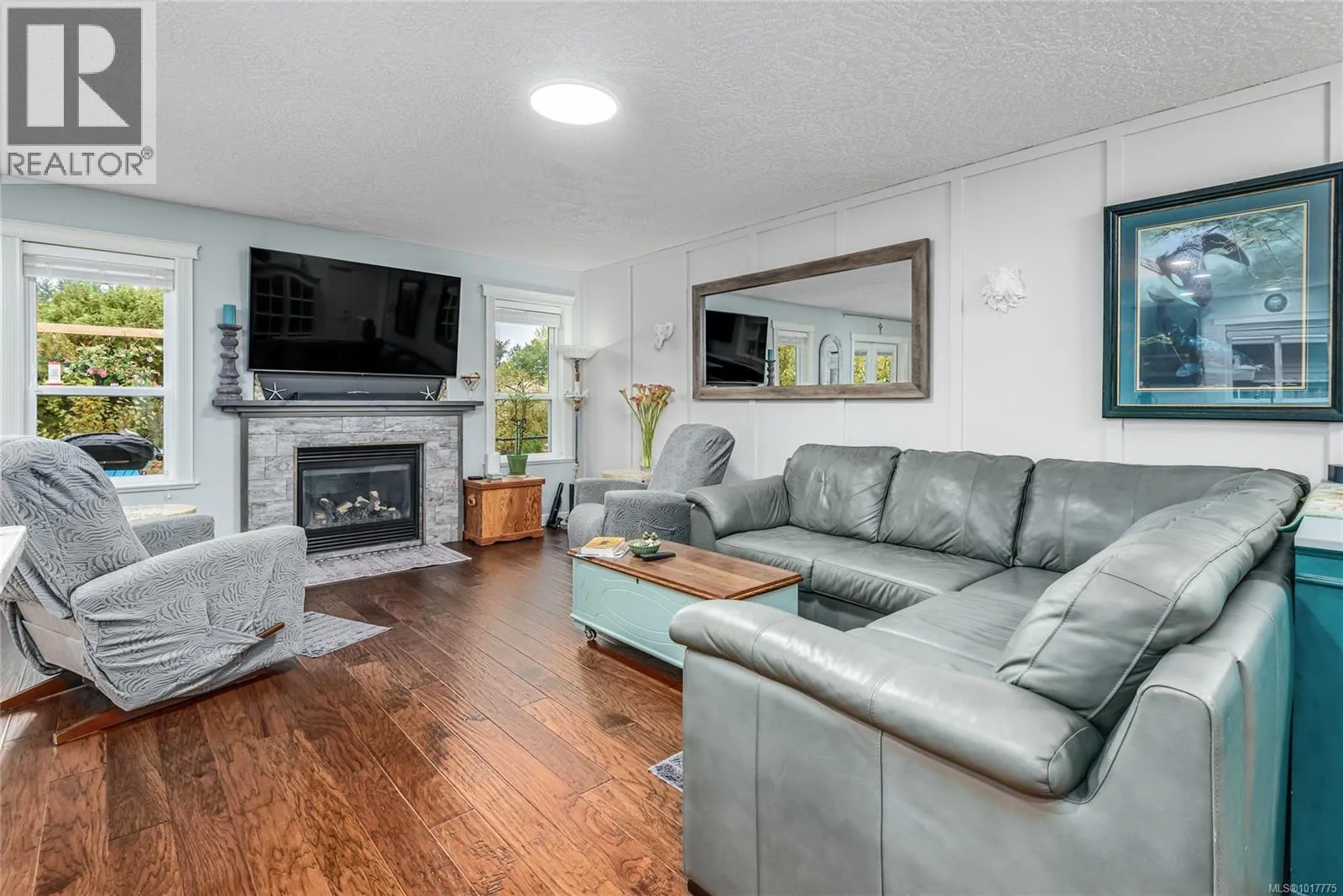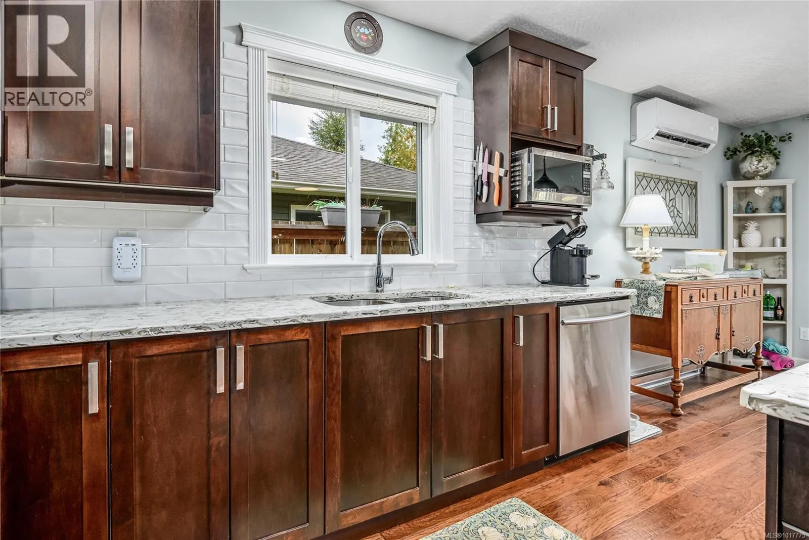Check out this fantastic 3 bed/2bath rancher built in 2014 offering 1560 sq ft situated in Courtenay. Located on a quiet street this stylish home has rounded drywall corners & upgraded trim & baseboards. Enjoy the open concept plan with a gorgeous kitchen with quartz countertops & a large island for breakfast. The living room offers a cozy gas fireplace. The flooring is engineered hardwood & tile throughout. Interior doors are oversized for wheelchair accessibility. The primary bedroom is very spacious with a large walk-in closet and ensuite. There is the added bonus of a ductless heat pump providing cost efficient heat & air conditioning. Double car garage offers over 440 sq ft. Driveway has ample space for a couple of cars, boat or RV. The outside deck area has a natural gas connection for the BBQ & backs onto a recently cleared greenbelt area with plantings for added privacy. Just a few minute drive to downtown, schools & parks & a few minutes drive to the Courtenay Connector. (id:27476)