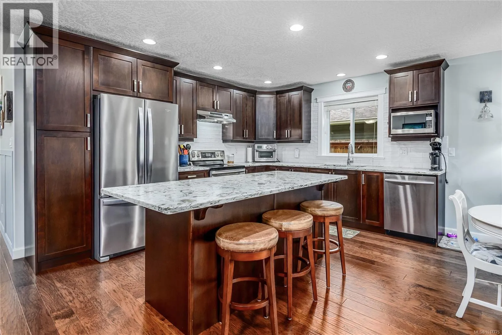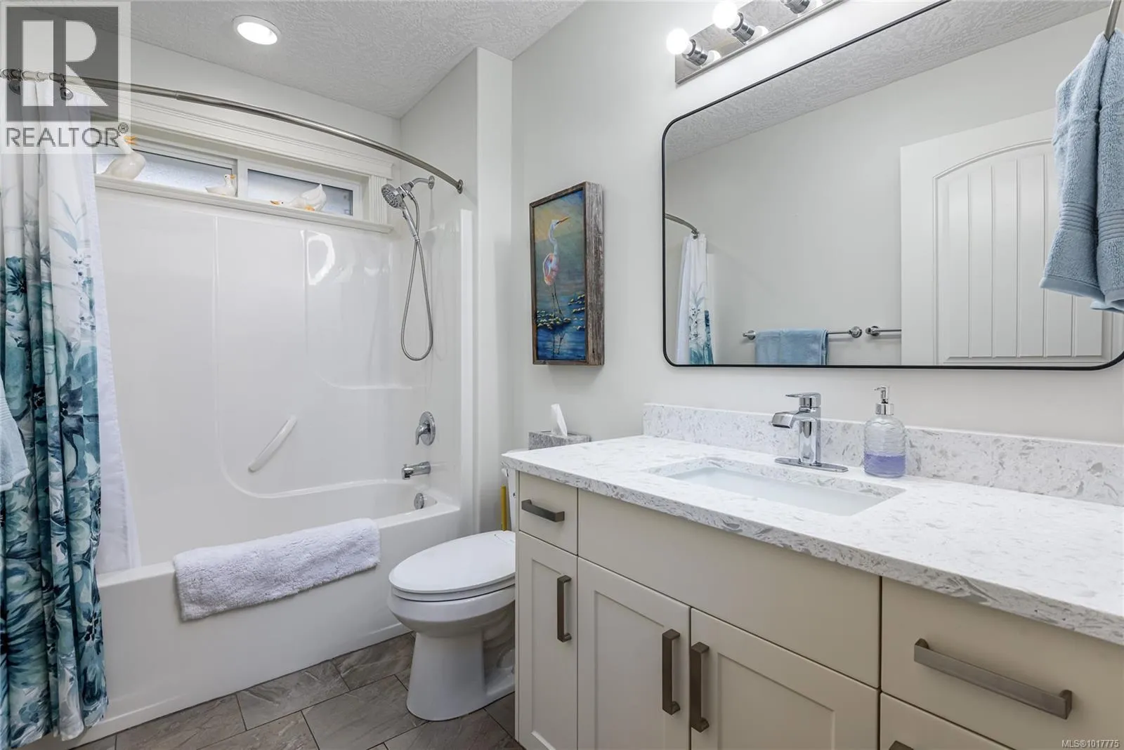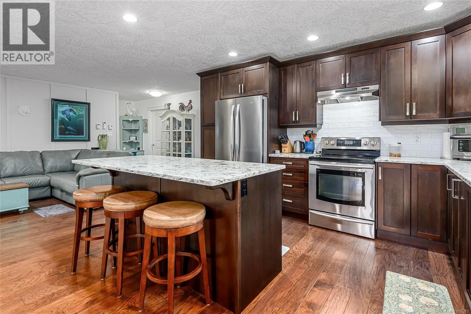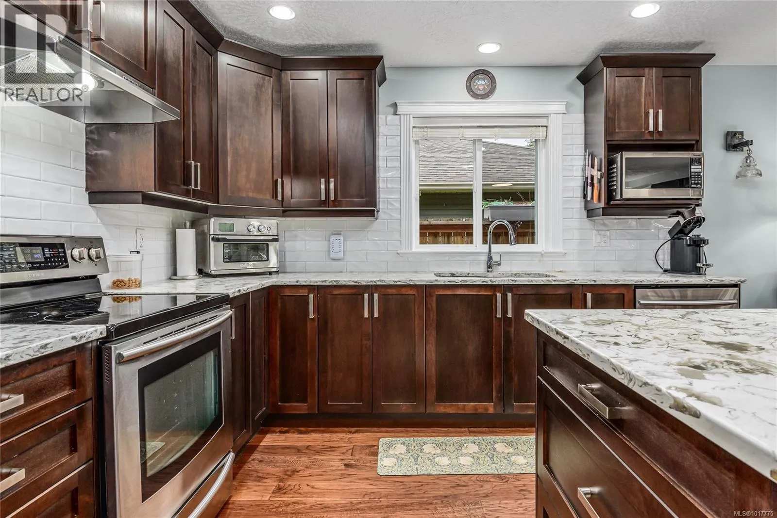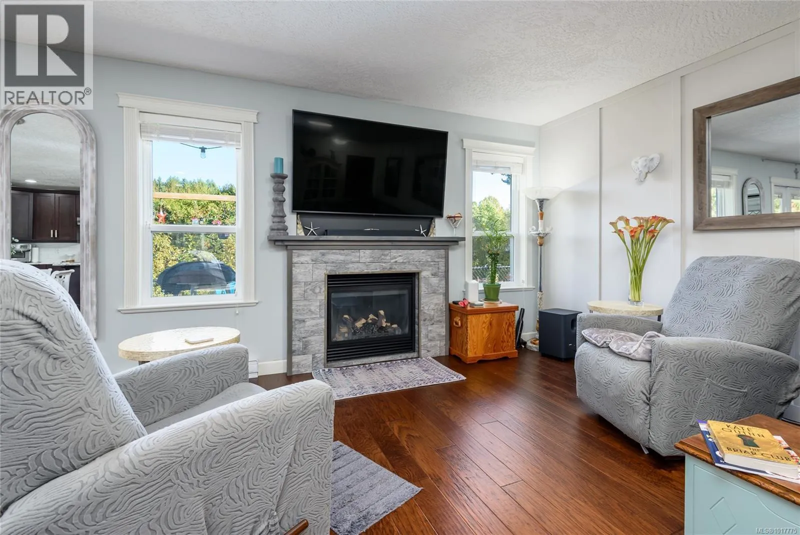 Check out this fantastic 3 bed/2bath rancher built in 2014 offering 1560 sq ft situated in Courtenay. Located on a quiet street this stylish home has rounded drywall corners & upgraded trim & baseboards. Enjoy the open concept plan with a gorgeous kitchen with quartz countertops & a large island for breakfast. The living room offers a cozy gas fireplace. The flooring is engineered hardwood & tile throughout. Interior doors are oversized for wheelchair accessibility. The primary bedroom is very spacious with a large walk-in closet and ensuite. There is the added bonus of a ductless heat pump providing cost efficient heat & air conditioning. Double car garage offers over 440 sq ft. Driveway has ample space for a couple of cars, boat or RV. The outside deck area has a natural gas connection for the BBQ & backs onto a recently cleared greenbelt area with plantings for added privacy. Just a few minute drive to downtown, schools & parks & a few minutes drive to the Courtenay Connector. (id:27476)