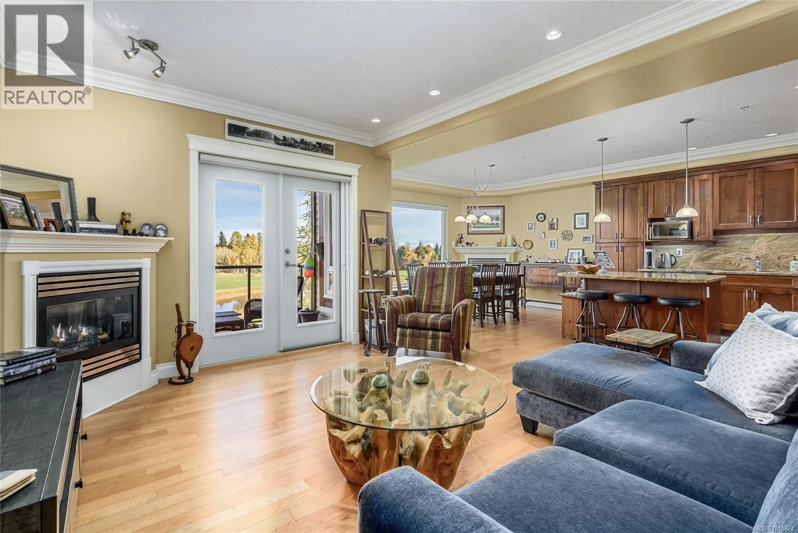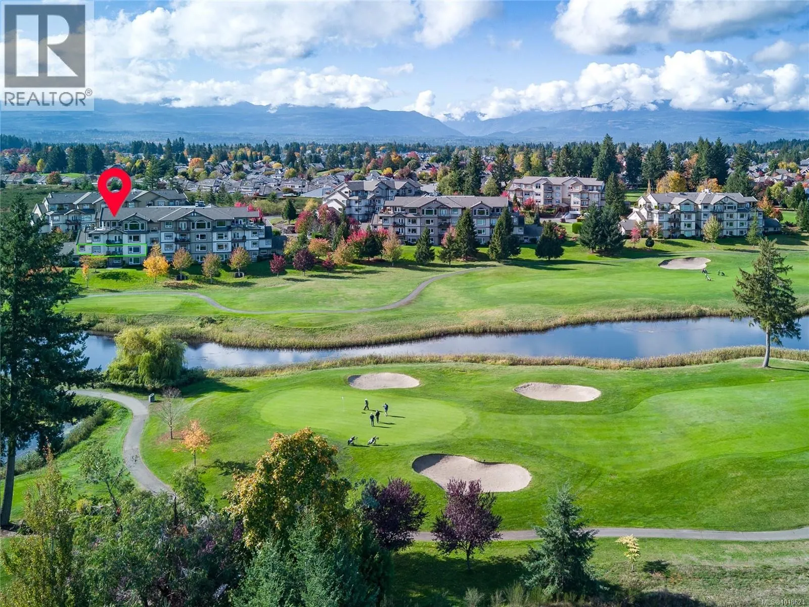 View... View... View... oh did I mention the View? Experience luxurious living with stunning views of Crown Isle and the mountains in this beautiful 2-bedroom, 2-bath plus den in this stunning 3rd floor corner unit condominium. Featuring a versatile office/denâperfect for work or relaxationâthis open-concept home offers 3 fireplaces, with hardwood & heated tiles for warmth and comfort. Retreat to the spacious primary bedroom or enjoy the fresh air from the private balcony. The home includes two large storage lockers and a dedicated golf cart space in underground parking, ensuring clutter-free living. Located close to all amenities, it blends elegance, convenience, and comfort. Plus, the underground parkade offers protection from weather year round. Whether youâre entertaining or relaxing, this home truly has it all. Live where others vacationâyou deserve it. Contact Mike Fisher with Royal LePage in the Comox Valley today for more information (250)218-3895. (id:27476)