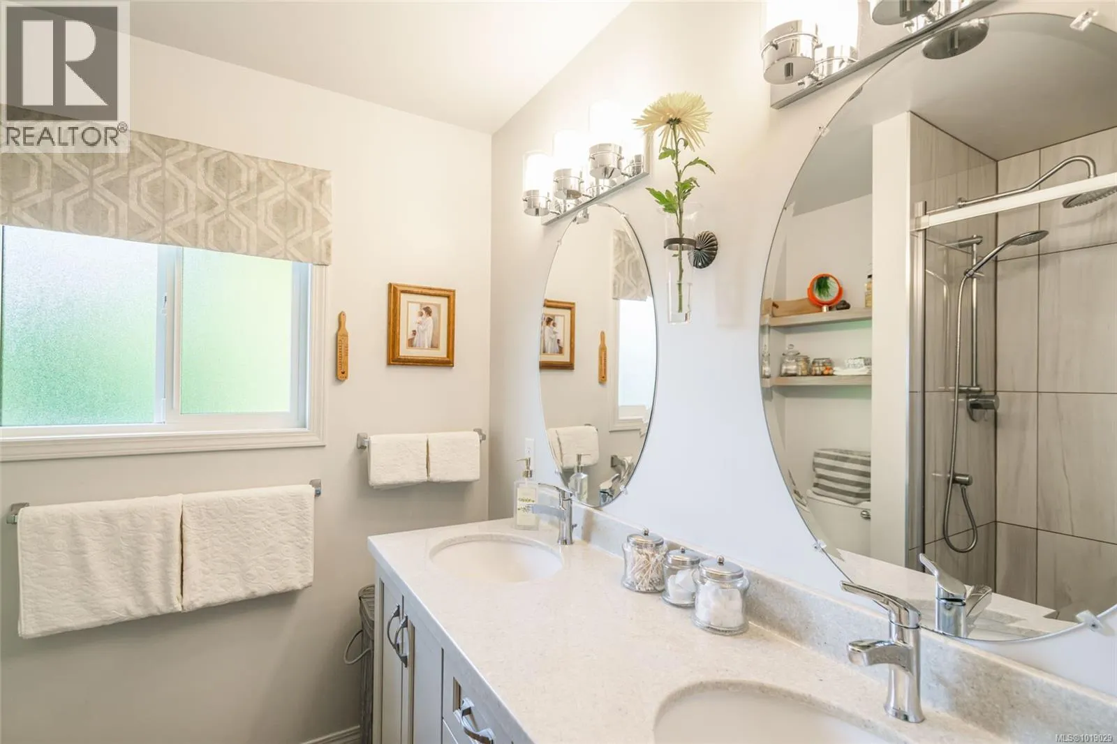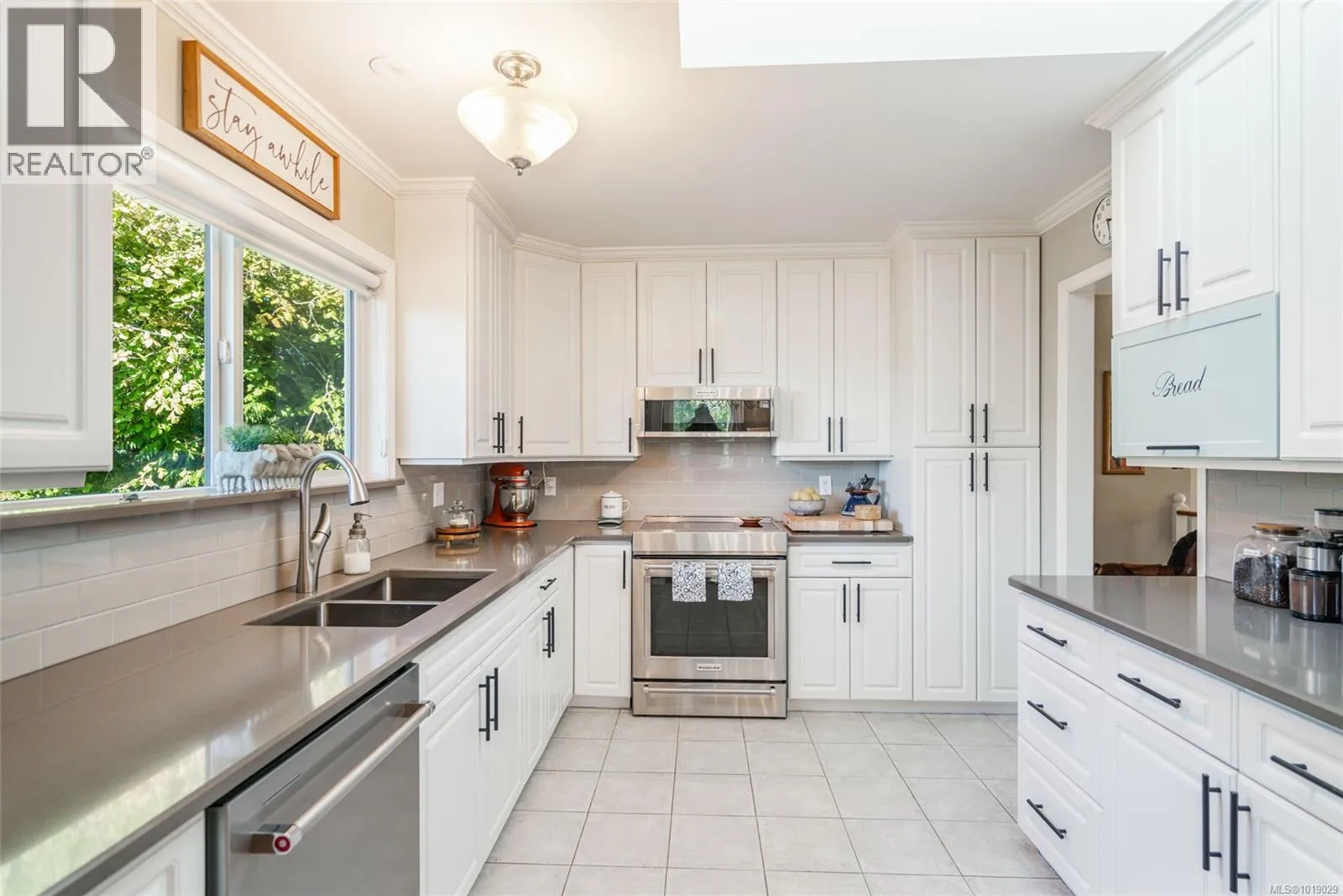 Welcome to this beautifully updated and meticulously maintained home offering a legal suite and thoughtful upgrades. This home has room for the whole family, offering over 2700 sq feet of living space. Over the past two years, the owners have completed major updates including new windows, a new roof, and new stainless steel KitchenAid appliances including induction stove. There are newer hot water tanks in both the main home and suite. The main kitchen features quartz counters, heated floors, and lots of cupboard space. The main bath includes heated floors, double sinks, and a walk-in shower. The cozy gas fireplace adds warmth and character. There is a high-efficiency gas furnace, and a garage for extra storage and/or parking. The layout offers flexibility, with the main level hosting a living room and a family room, the primary bedroom and one additional bedroom. Downstairs, youâll find three more bedrooms - one with a built-in Murphy bed and brand-new mattress. There is also a spacious laundry room with cabinets for storage and access to the garage. The 1 bedroom legal suite has its own laundry and dishwasher and can be offered fully furnished if desired. Step outside to enjoy a private oasis with mountain views from the sunny, fully fenced and landscaped backyard. The deck has a natural gas BBQ hookup, updated stairs, and a gazebo, perfect for entertaining. The yard is a gardener's dream and includes irrigation throughout, a large shed with a new roof plus an extra garden shed, fruit trees (cherry, hazelnut, and mini apple), and a fire pit with a dedicated underground propane line. Located within minutes of shopping, schools, and all amenities, this home is perfectly situated for convenience and the outdoors. With Mount Washington, local bike trails, and scenic walking paths nearby, itâs the perfect spot for outdoor enthusiasts to enjoy all that Vancouver Island living has to offer. All data approximate and should be verified if important. (id:27476)