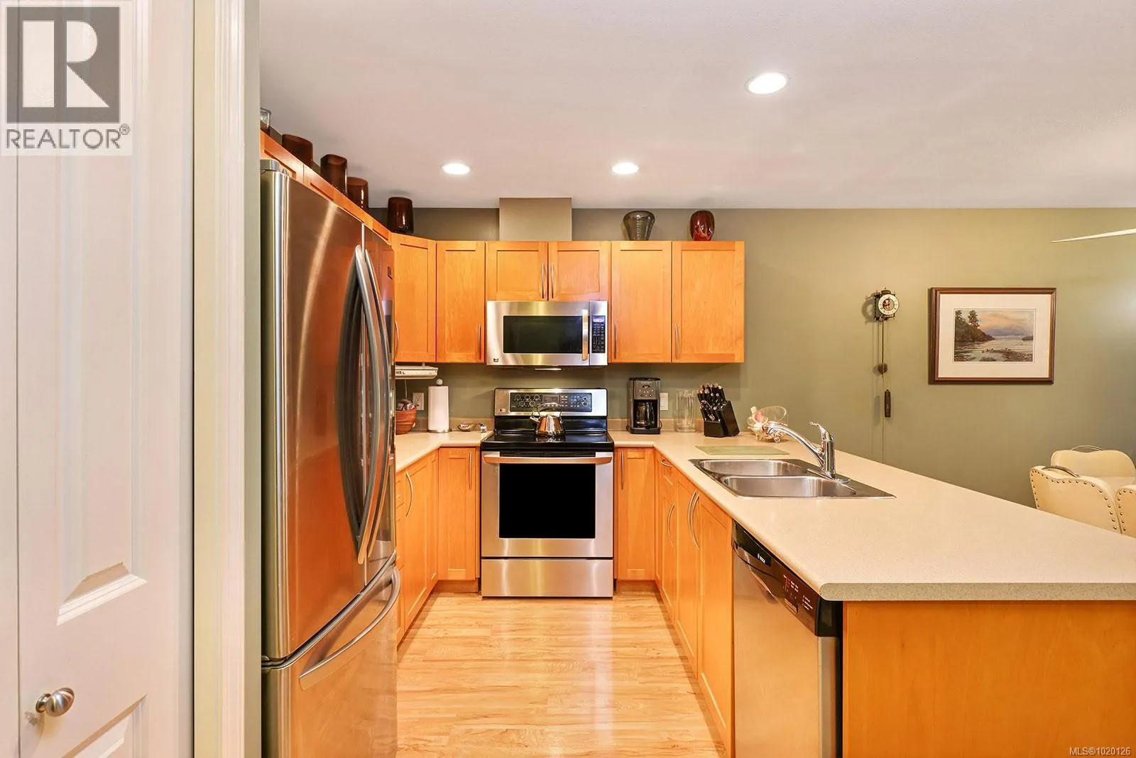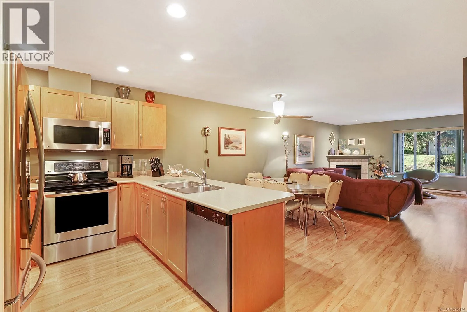 This patio home at Terrace View offers 2 bedrooms and a spacious den, ideal for convenient main-floor living near downtown. The private, sunny patio provides a perfect outdoor retreat, while inside you'll find in-suite laundry, a generous kitchen with maple cabinets, upgraded lighting, and privacy film on windows (which also helps keep the space cooler in summer). A dedicated garage and crawlspace offer ample storage. Located within walking distance of the Puntledge River, local parks, elementary and middle schools, this pet-friendly complex welcomes up to two dogs and two cats. While the home would benefit from updating and personal touches, it presents an excellent opportunity to create your ideal living space in a location that perfectly balances natural surroundings with urban convenience. (id:27476)