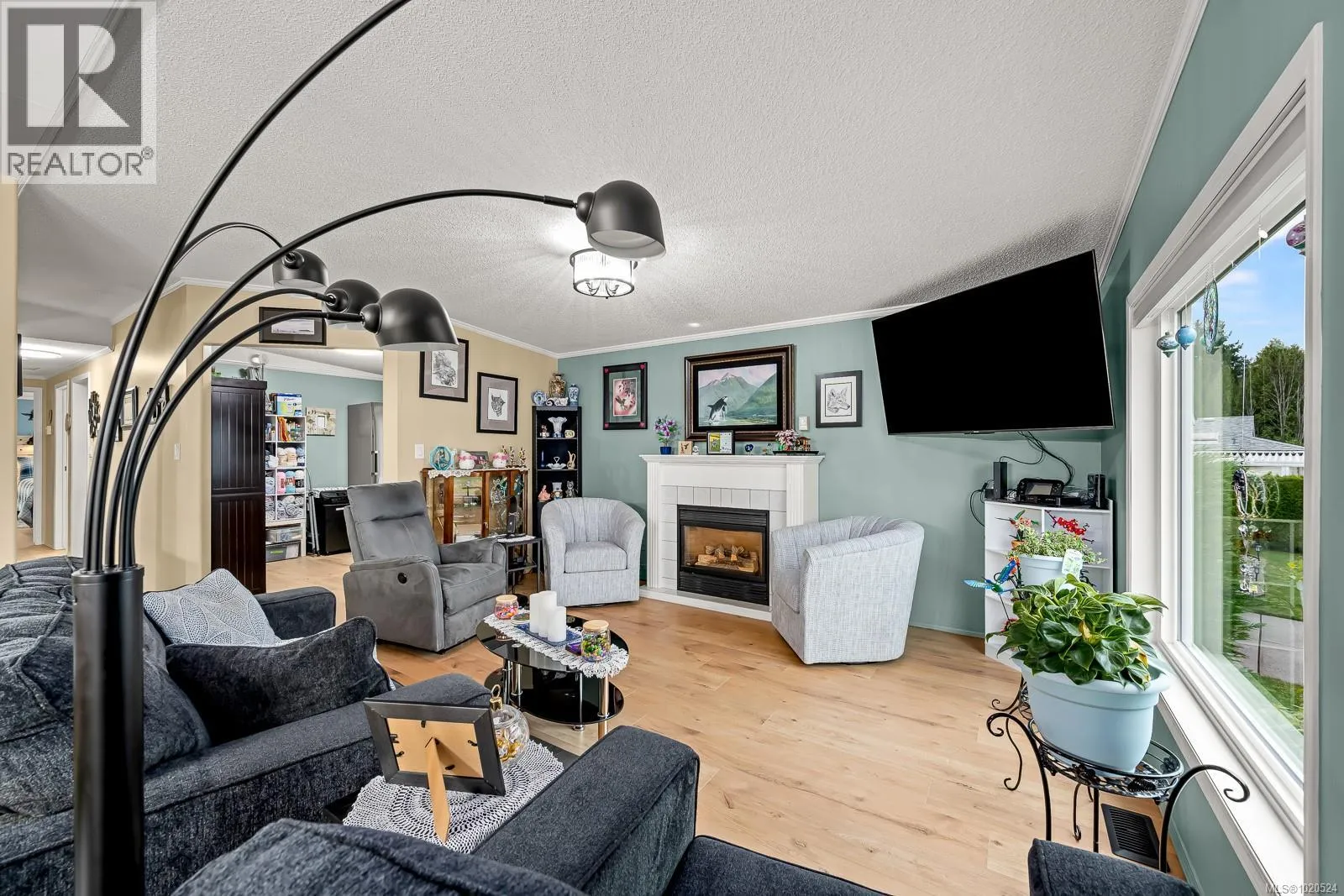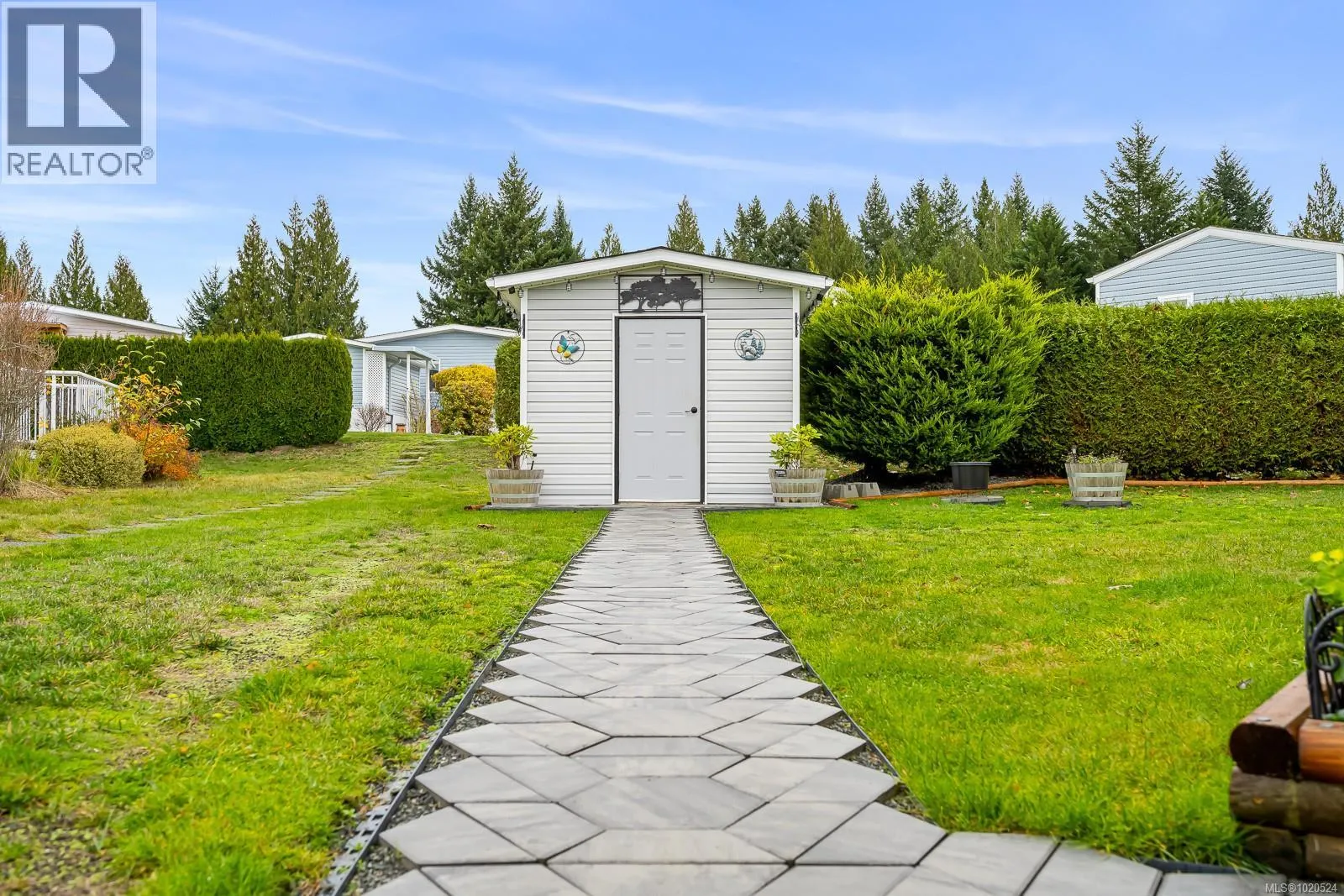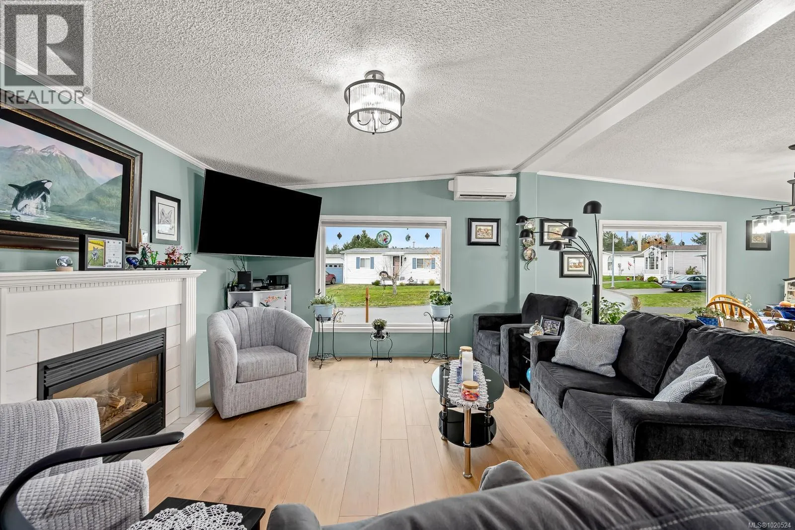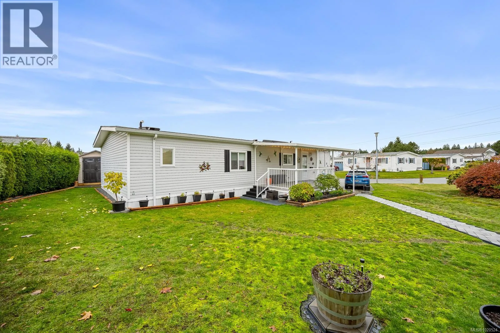 This cutie pie is worth canceling your weekend plans. Looking for a move-in ready home that feels brand new without the wait? This 2-bedroom plus den, 2-bath manufactured home in Courtenay' VALLEY VISTA ESTATES checks every box. Nestled in a well-kept 55+ adult community near the hospital, Costco, doctors, and shopping, this home brings both peace of mind and lifestyle convenience. Though the photography day was cloudy, youâll enjoy stunning mountain views on most daysâplus the warmth of a gas fireplace when on chilly BC days. The heat pump ensures you're comfortable all year long. *New park rule won't allow new heat pumps in homes that don't already have one. The Multiple SKYLIGHTS make it bright & cheerful. TWO decks, one covered the other west facing. There is also two detached storage sheds. This park offers separate fee-based RV or boat storage. Every major item is DONE for you: ⢠Hot water tank replaced October 2023 ⢠Both toilets replaced November 2023 ⢠Lighting upgrades throughout November 2023 ⢠All appliances replaced 2024 ⢠Roof replaced Fall 2024 ⢠All Windows & blinds replaced 2024 ⢠Floors fully replaced in 2025 ⢠Poly B plumbing professionally removed in 2025 ⢠Backyard drainage and sidewalk upgrades completed. ⢠Blue chip and landscape ties line the yard for clean, easy-care curb appeal This 1144 sqft home sits in one of the Valleyâs most sought-after parksâquiet, friendly, and well-maintained. Whether you're downsizing or simplifying, there's nothing left to do but move in and enjoy. Easy to view! (id:27476)