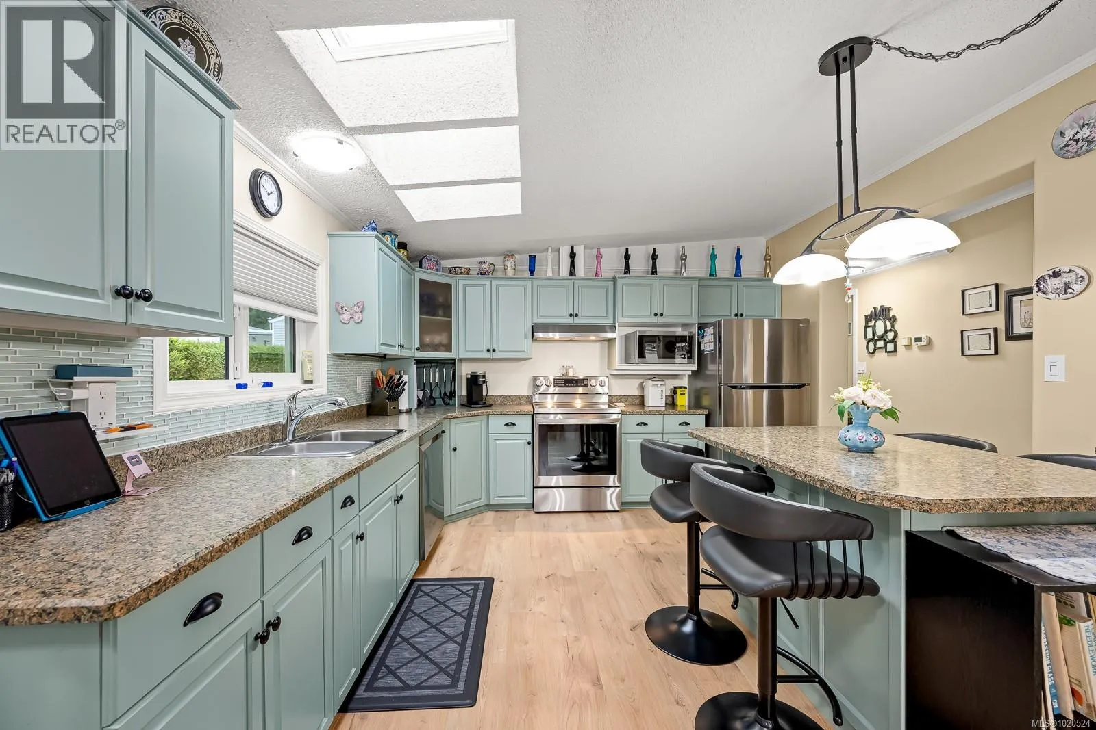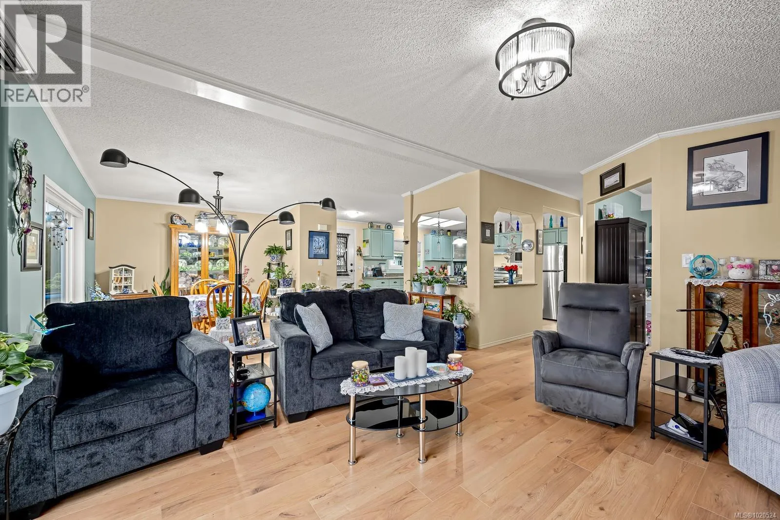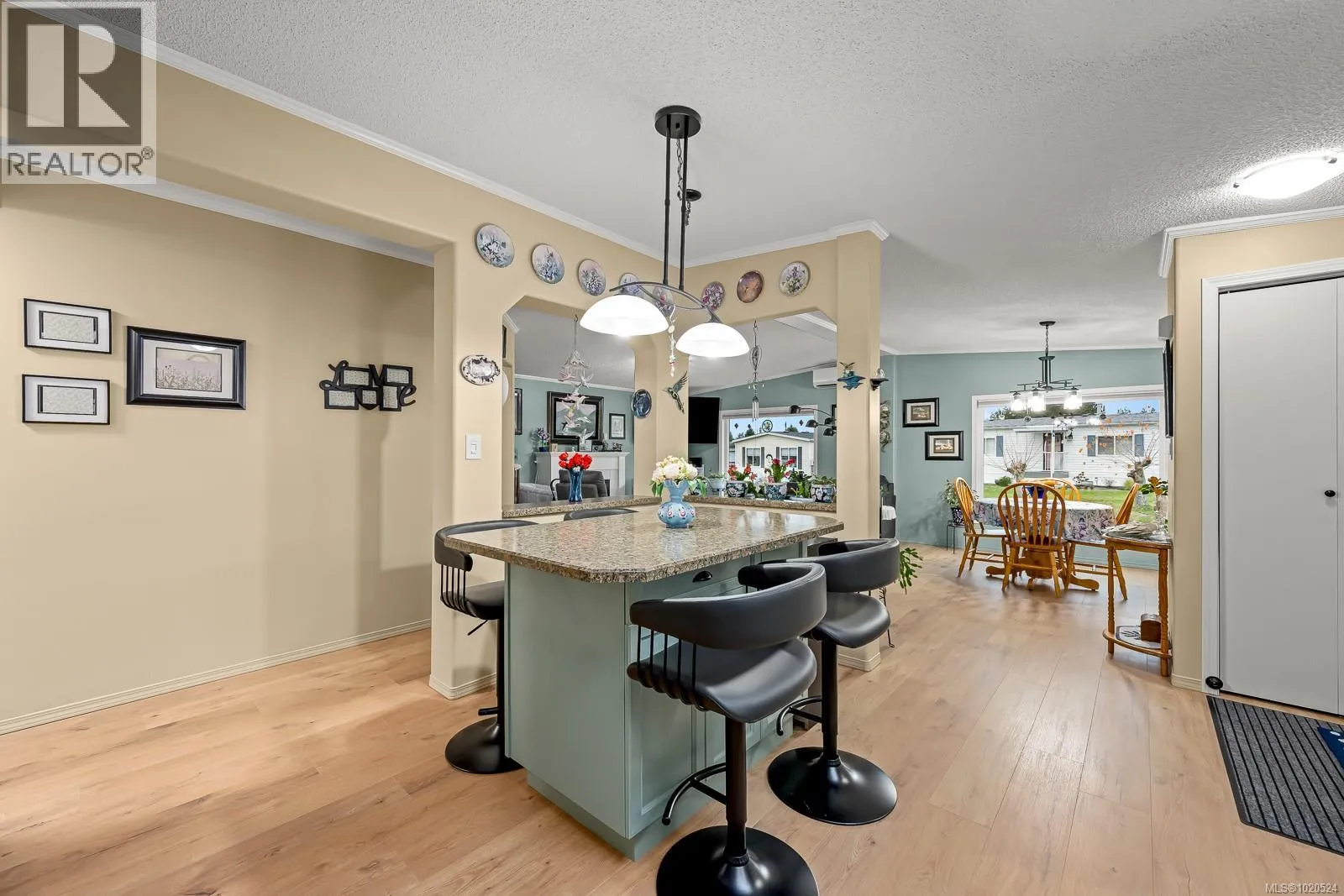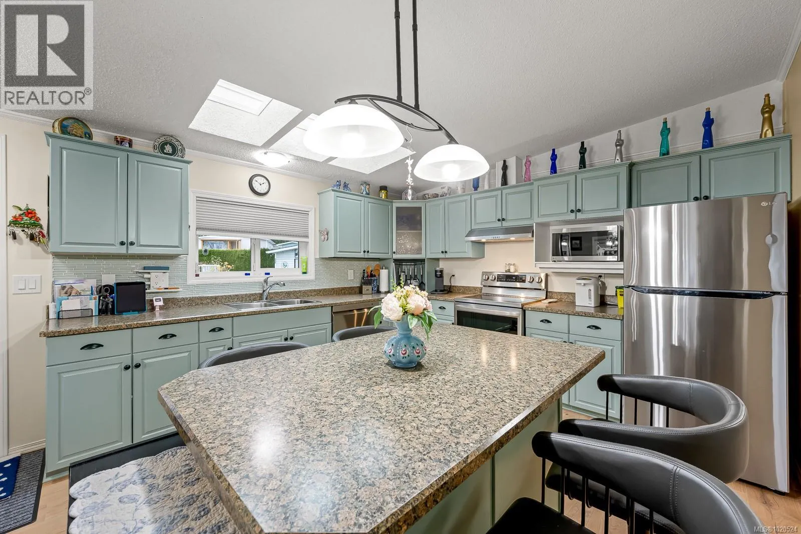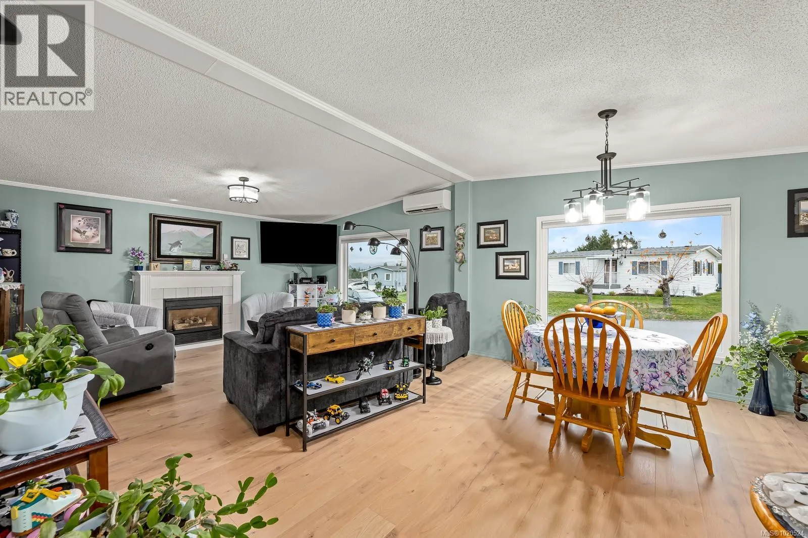 This cutie pie is worth canceling your weekend plans. Looking for a move-in ready home that feels brand new without the wait? This 2-bedroom plus den, 2-bath manufactured home in Courtenay' VALLEY VISTA ESTATES checks every box. Nestled in a well-kept 55+ adult community near the hospital, Costco, doctors, and shopping, this home brings both peace of mind and lifestyle convenience. Though the photography day was cloudy, youâll enjoy stunning mountain views on most daysâplus the warmth of a gas fireplace when on chilly BC days. The heat pump ensures you're comfortable all year long. *New park rule won't allow new heat pumps in homes that don't already have one. The Multiple SKYLIGHTS make it bright & cheerful. TWO decks, one covered the other west facing. There is also two detached storage sheds. This park offers separate fee-based RV or boat storage. Every major item is DONE for you: ⢠Hot water tank replaced October 2023 ⢠Both toilets replaced November 2023 ⢠Lighting upgrades throughout November 2023 ⢠All appliances replaced 2024 ⢠Roof replaced Fall 2024 ⢠All Windows & blinds replaced 2024 ⢠Floors fully replaced in 2025 ⢠Poly B plumbing professionally removed in 2025 ⢠Backyard drainage and sidewalk upgrades completed. ⢠Blue chip and landscape ties line the yard for clean, easy-care curb appeal This 1144 sqft home sits in one of the Valleyâs most sought-after parksâquiet, friendly, and well-maintained. Whether you're downsizing or simplifying, there's nothing left to do but move in and enjoy. Easy to view! (id:27476)