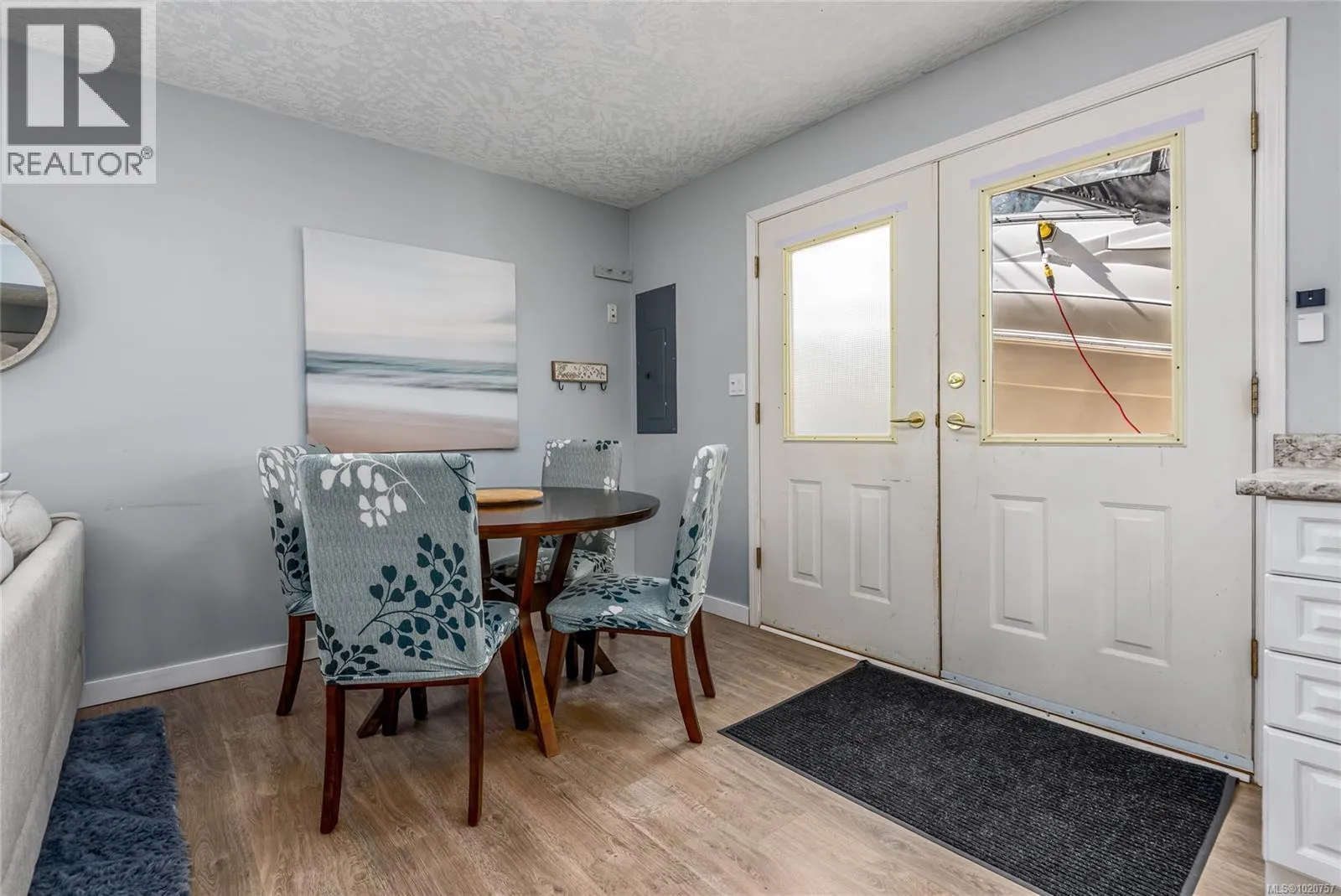Situated on a 0.44-acre corner lot in a semi-rural neighborhood north of Comox, this 4-bedroom, 3-bathroom home provides immediate access to nearby natural features, with Seal Bay Parkâs trail system and local beaches roughly a 5-minute walk away. The property is positioned across from an open field and a treed area, giving steady natural views from the living room, front windows, and deck. The upper floor contains the main living and dining areas, along with a gas fireplace in the living room, large windows for natural light, and a kitchen equipped with updated cabinets, recently installed appliances, and functional counter layout. The roof was replaced in 2025 with fiberglass shingles. The lower level features a non-conforming suite with its own exterior entrance, a dedicated driveway, a den with a second gas fireplace, and its own private laundry, eliminating the need for any shared laundry arrangement. This layout supports flexible use for extended family, guests, workspace, or independent living needs. Outdoor elements include a fenced backyard, gazebo, fire pit area, and multiple sections suitable for gardening, recreation, storage, or future projects. A covered workshop area is located beneath the side deck, providing sheltered space for tools or equipment. The property also includes RV and boat parking along with two separate driveway access points that support straightforward vehicle movement. Zoned R-1, the lot allows a secondary dwelling such as a carriage house, suite, or a detached shop or garage with a suite above, up to 90 m² and subject to municipal approval. The home is approximately 10 minutes from Comox and near major amenities including Costco, Crown Isle, the hospital, the airport, schools, parks, and everyday services, while maintaining a low-density, semi-rural environment. At closing, the Seller is offering a $5,000 decorating bonus to the Buyer to personalize the home to their taste. (id:27476)