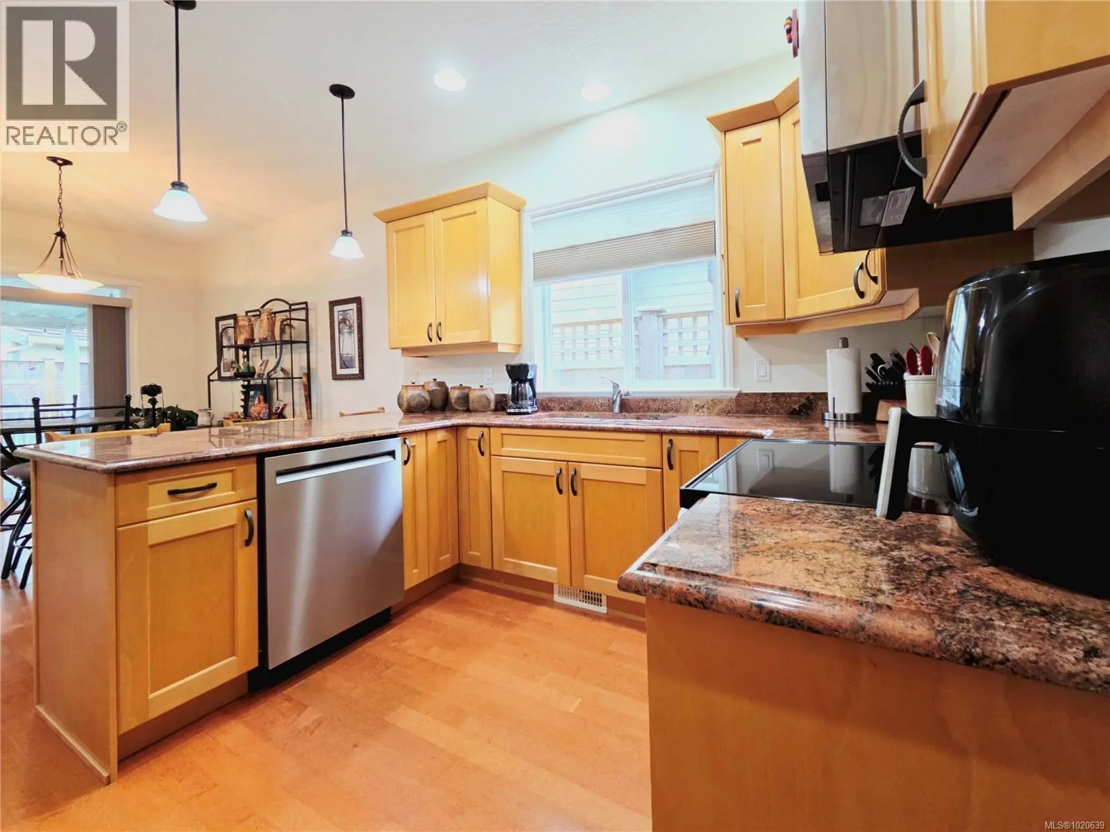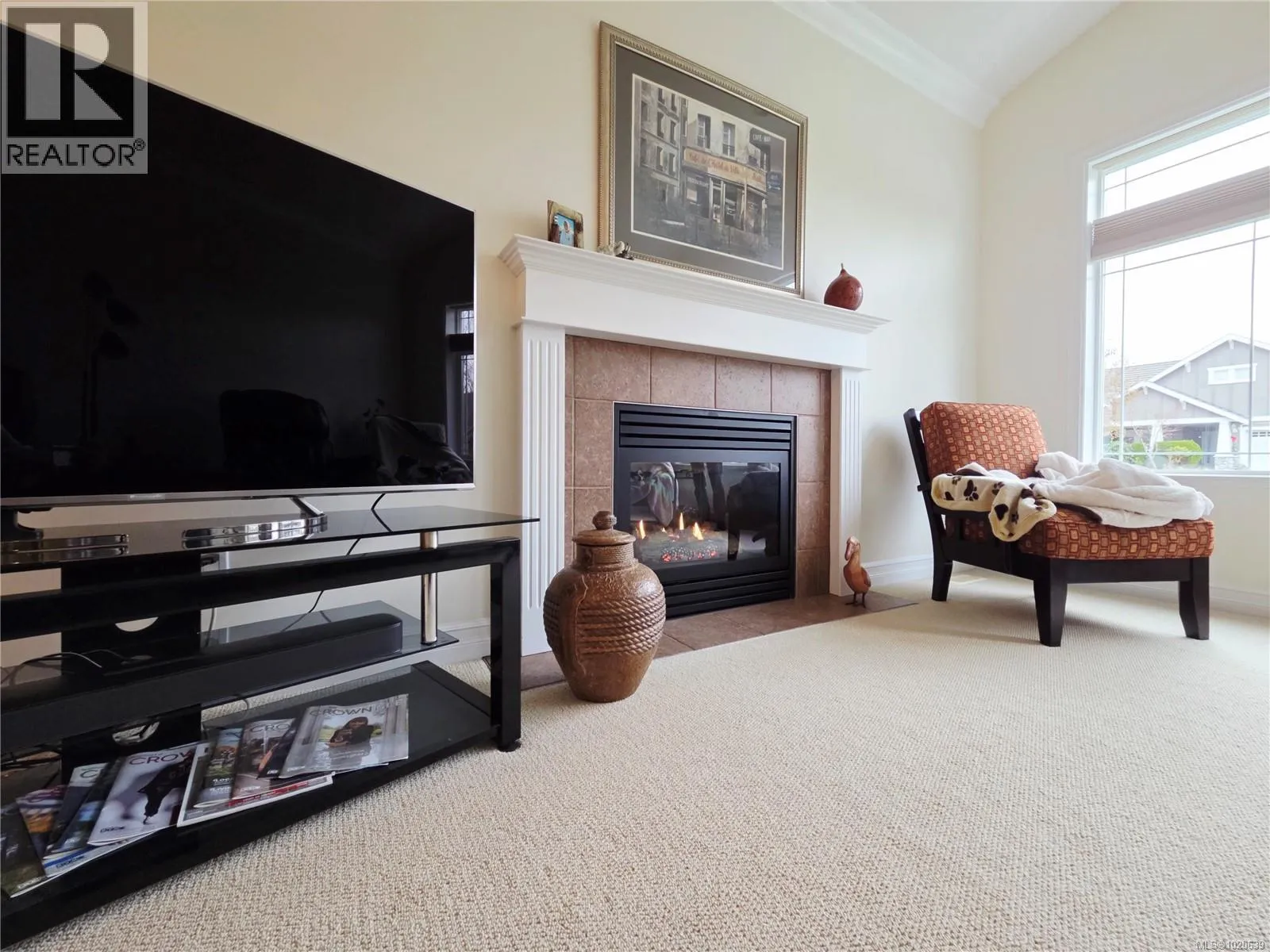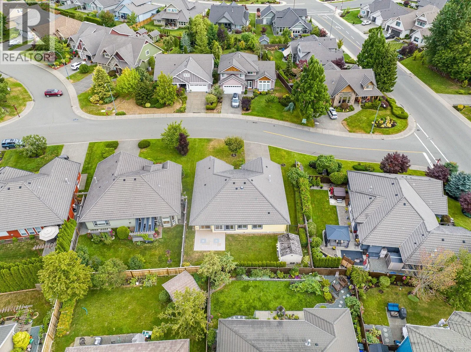 Retirement living doesnât get better than thisâan immaculate 1,826 sqft rancher in the highly sought-after Crown Isle community. Set back from busy roads, this ideal single-level home offers a quiet location with easy access to walking paths, neighborhood parks, and all East Courtenay amenities. Inside, the bright 3 bed, 2 bath layout features large windows, 9 ft ceilings and a semi-open design. The living room showcases vaulted ceilings and a cozy gas fireplace, while the kitchen offers maple shaker cabinets, stone counters and views of the sunny backyard. The spacious primary bedroom includes a walk-in closet and a lovely ensuite. An insulated double garage and crawl space provide excellent storage. Outside, enjoy a low-maintenance yard with sprinklers, southern exposure, tall hedges and a charming garden shed. Just minutes to restaurants, groceries, the hospital and airport. And the your corner store? Costco! (id:27476)
