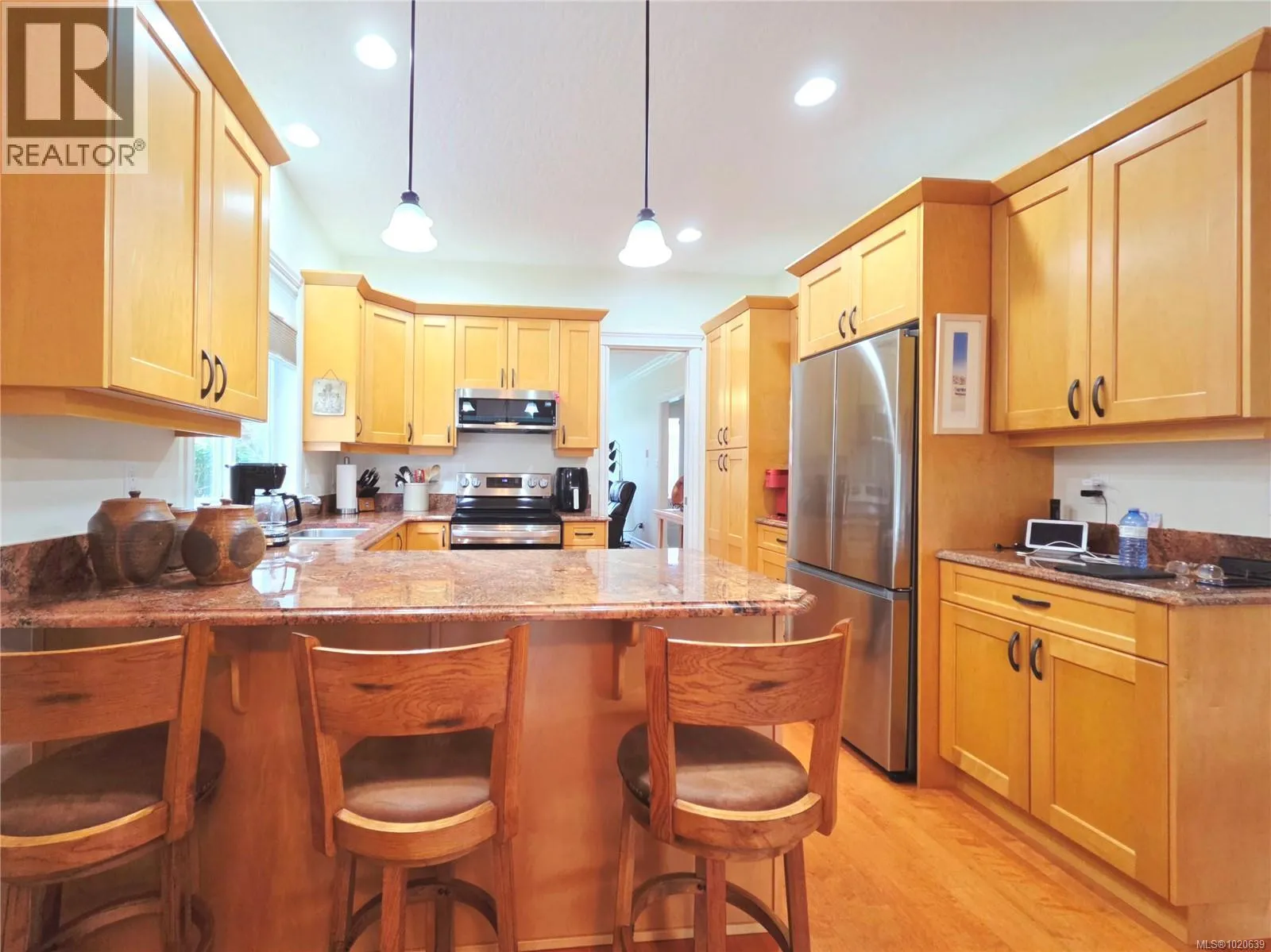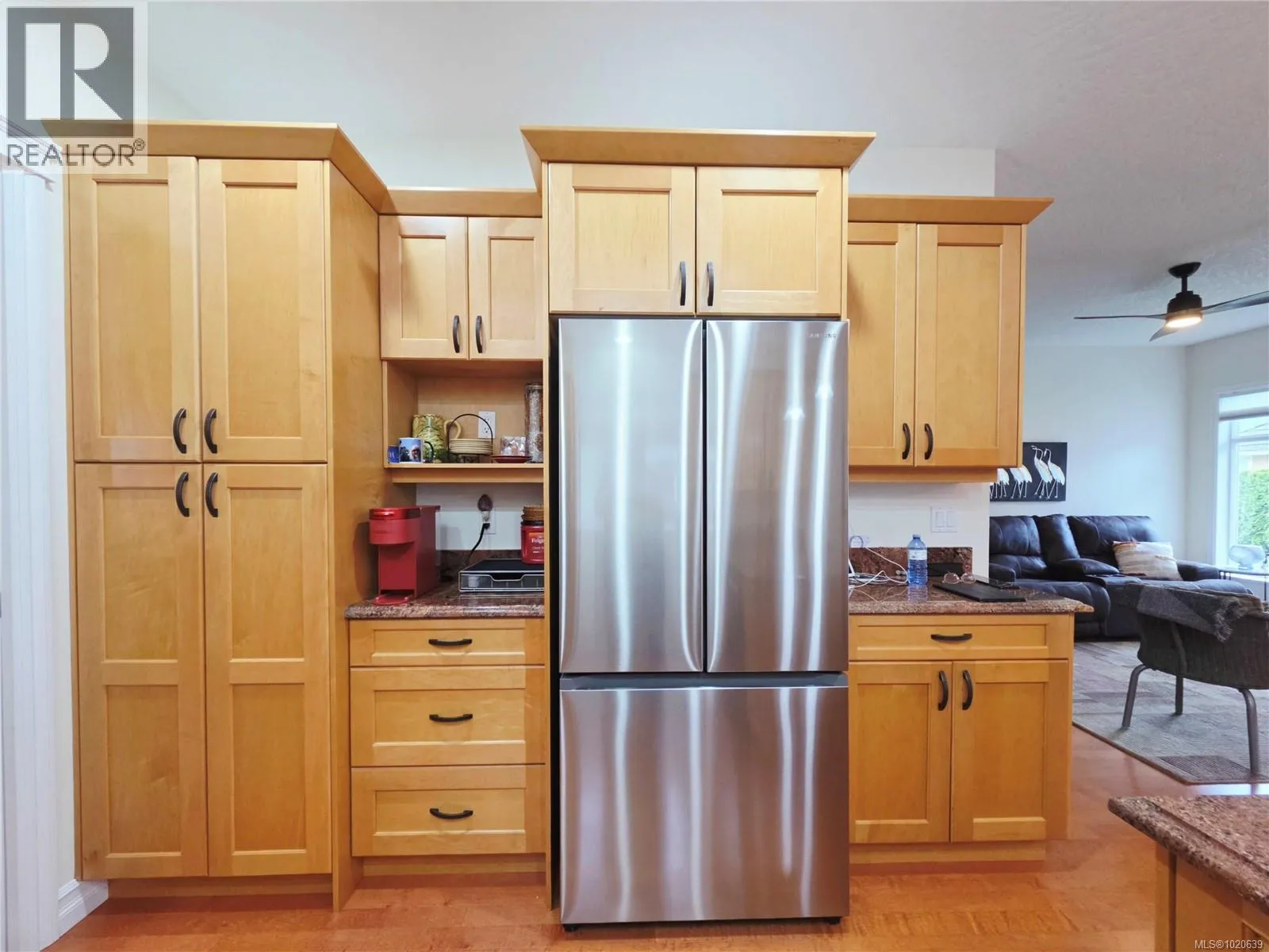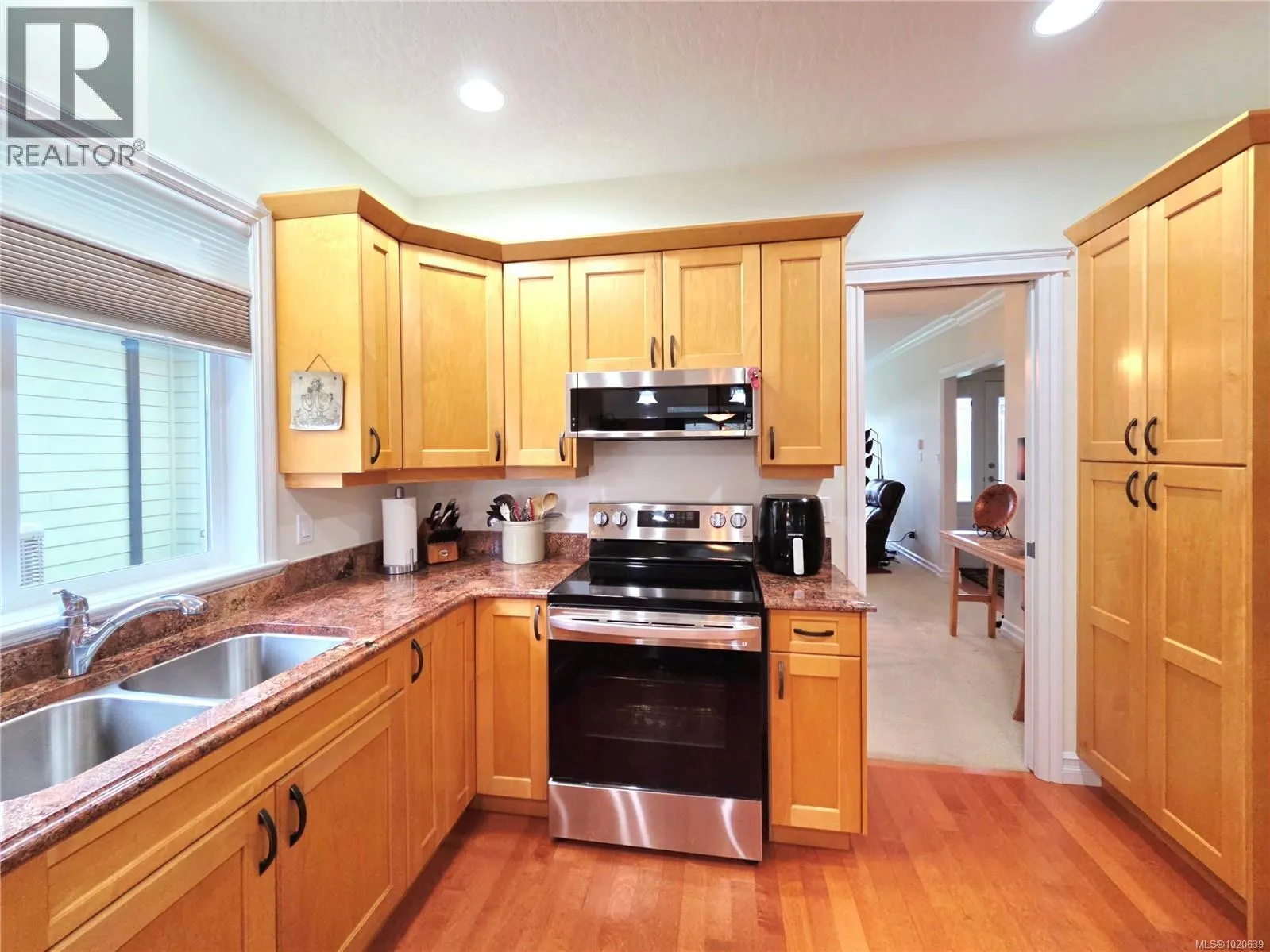 Retirement living doesnât get better than thisâan immaculate 1,826 sqft rancher in the highly sought-after Crown Isle community. Set back from busy roads, this ideal single-level home offers a quiet location with easy access to walking paths, neighborhood parks, and all East Courtenay amenities. Inside, the bright 3 bed, 2 bath layout features large windows, 9 ft ceilings and a semi-open design. The living room showcases vaulted ceilings and a cozy gas fireplace, while the kitchen offers maple shaker cabinets, stone counters and views of the sunny backyard. The spacious primary bedroom includes a walk-in closet and a lovely ensuite. An insulated double garage and crawl space provide excellent storage. Outside, enjoy a low-maintenance yard with sprinklers, southern exposure, tall hedges and a charming garden shed. Just minutes to restaurants, groceries, the hospital and airport. And the your corner store? Costco! (id:27476)