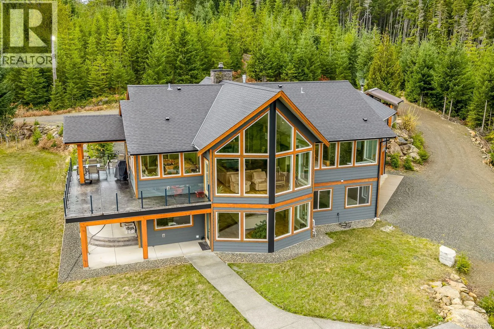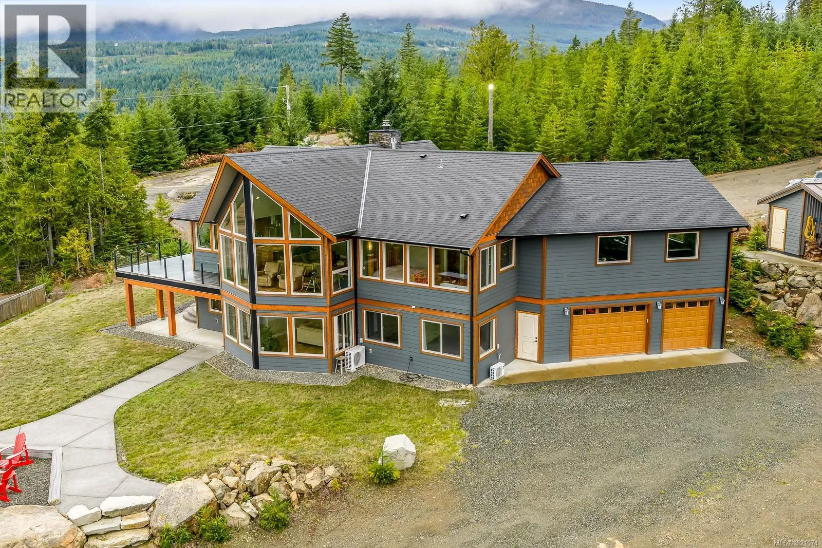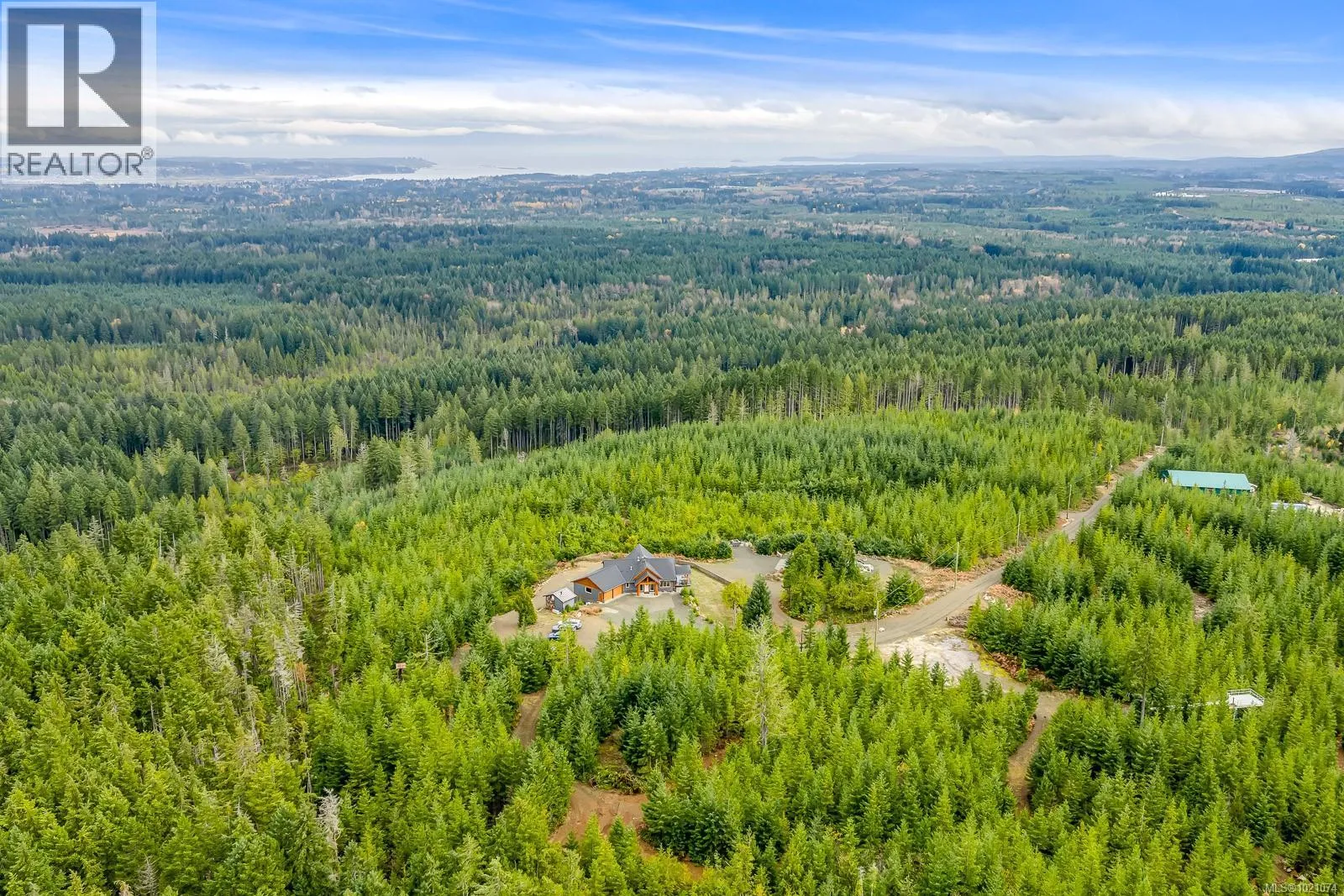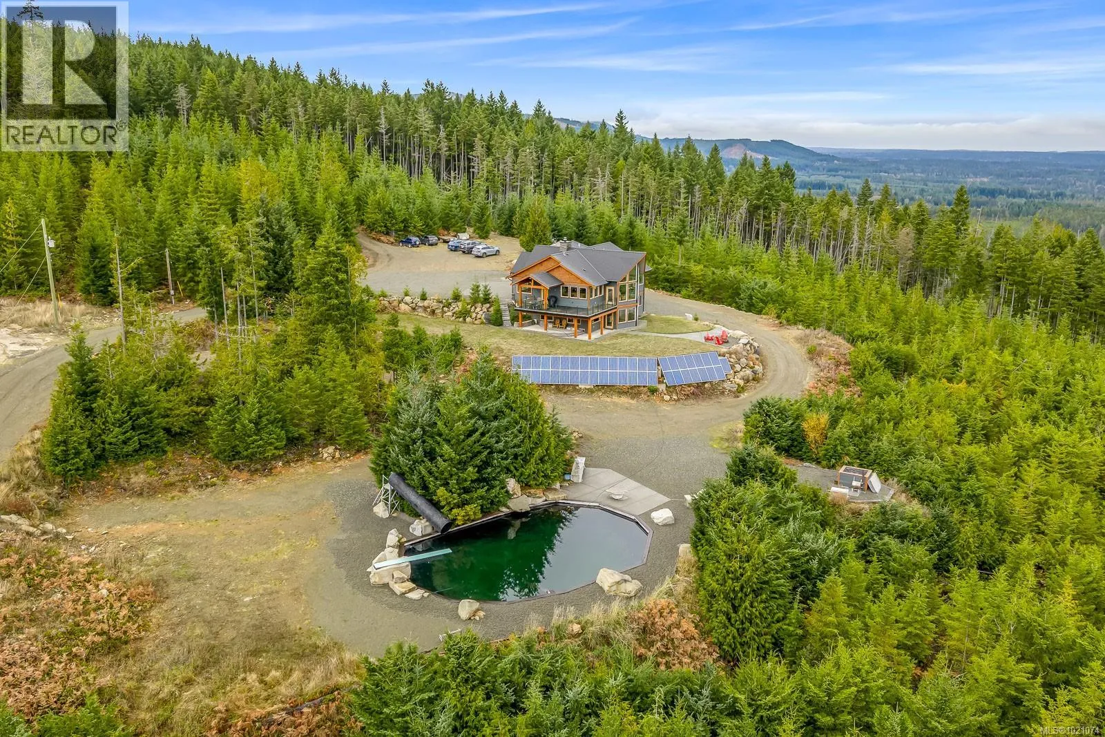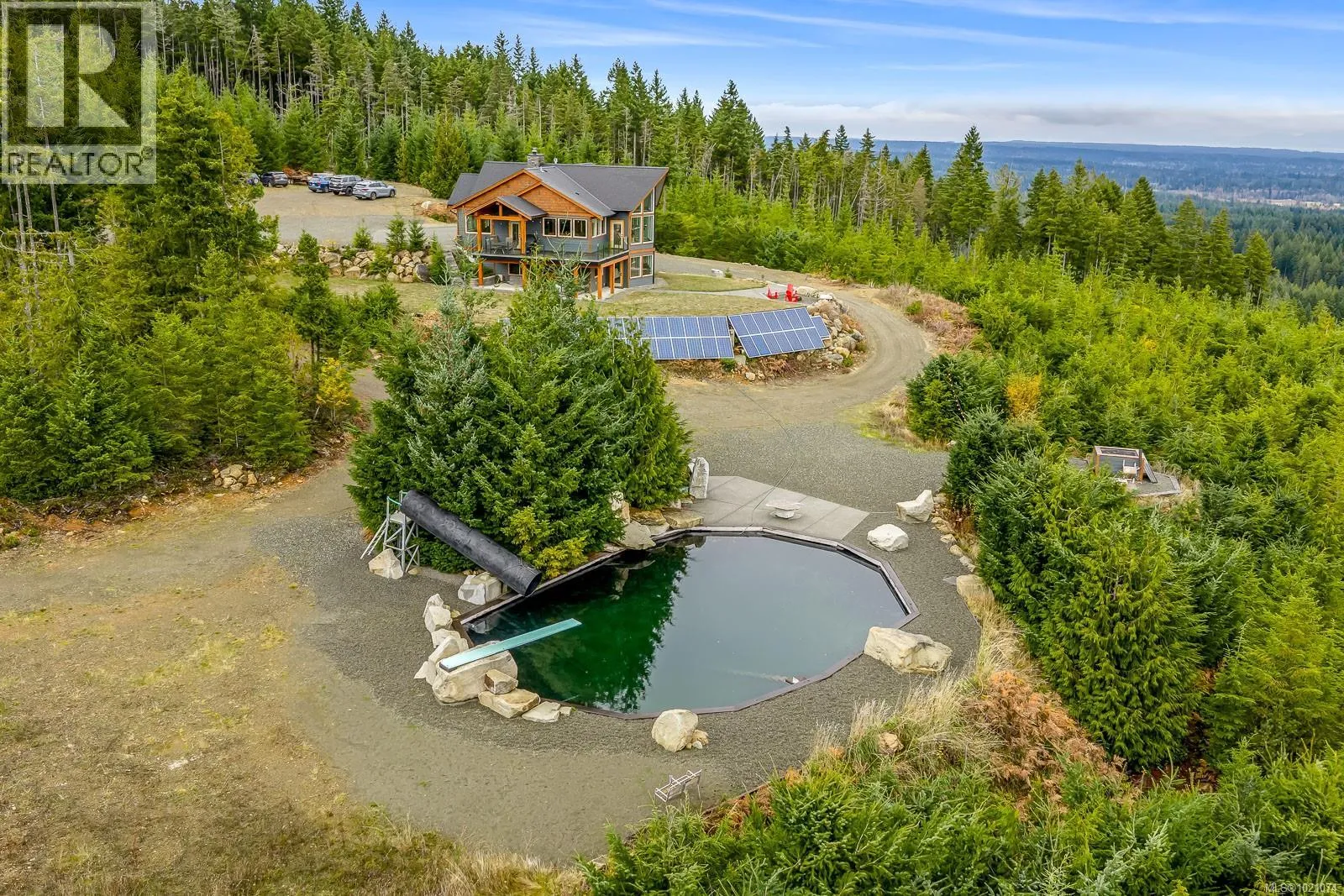 This custom-designed estate sits commandingly atop Mystic Cove on 40 pristine acres, offering an unparalleled living experience continually bathed in natural light. Secured by a private gate and encompassing extensive walking trails, the property ensures complete privacy and seamless immersion in nature. Every window frames a breathtaking panorama, capturing the serene expanse of Georgia Strait, the distant, captivating outlines of Denman and Hornby Islands, the curve of Comox Bay. The residence is a masterpiece of luxury and scale, designed for both comfortable living and grand-scale entertainment, boasting ample space to host crowds of any size. It features five spacious bedrooms, including primary suites designed with opulent touches like large, spa-like walk-in showers. The heart of the home is a large kitchen appointed with exquisite custom cabinetry. The main living space is warm and inviting, centered around a striking, huge stonre fireplace. Outdoor living revolves around a dazzling pool, while evenings culminate at a dramatic fire pit specifically positioned to overlook the twinkling lights of the entire Comox Valley. Utility and sustainability are paramount, supported solar power, silent in-ground radiant heat, and supplemental heat pumps for efficient, year-round climate control. Finally, a versatile four-car garageâcleverly split with two bays on the main level and two additional bays belowârealizes the car collector's dream. This is more than a home; it is a meticulously engineered, self-sustaining, and visually stunning elevated retreat where luxury, nature, and engineering converge. (id:27476)