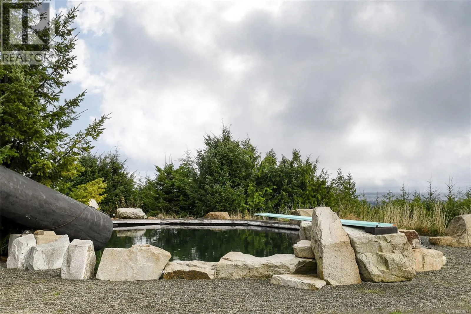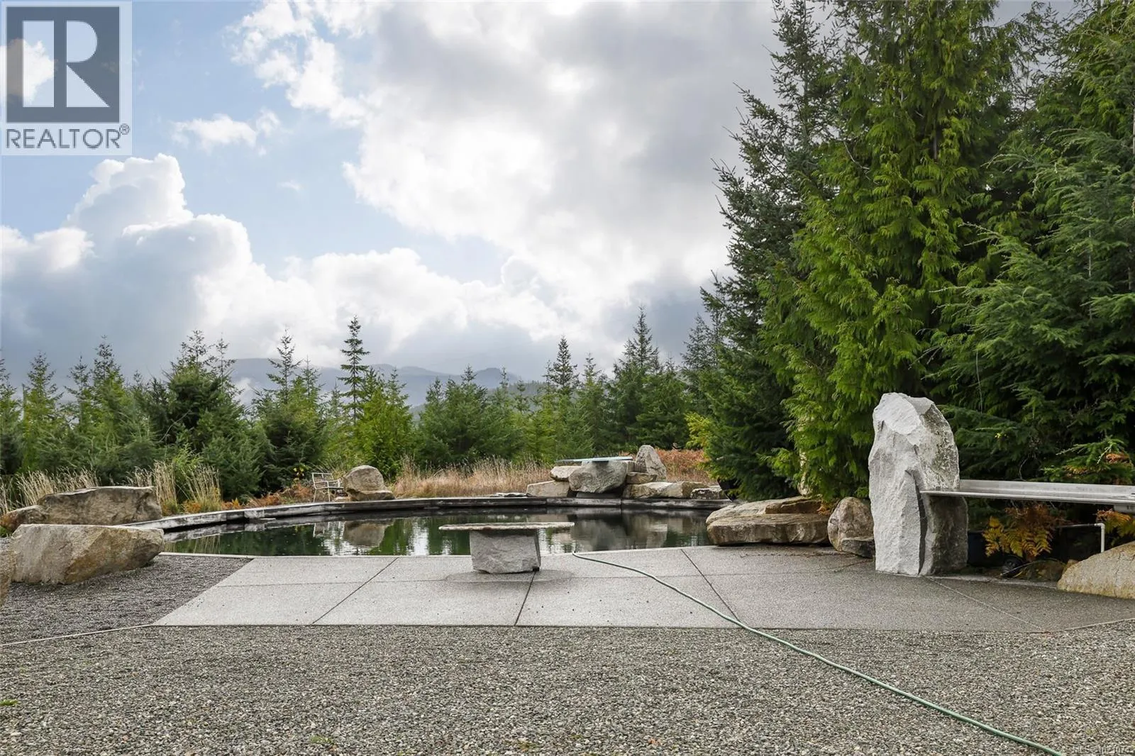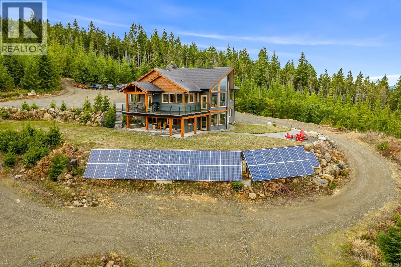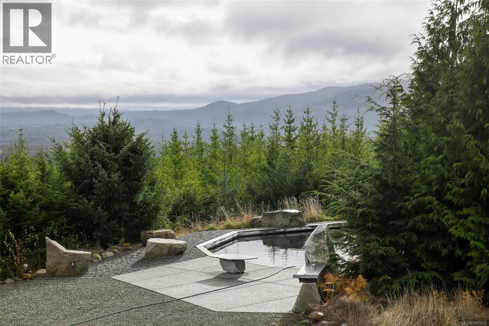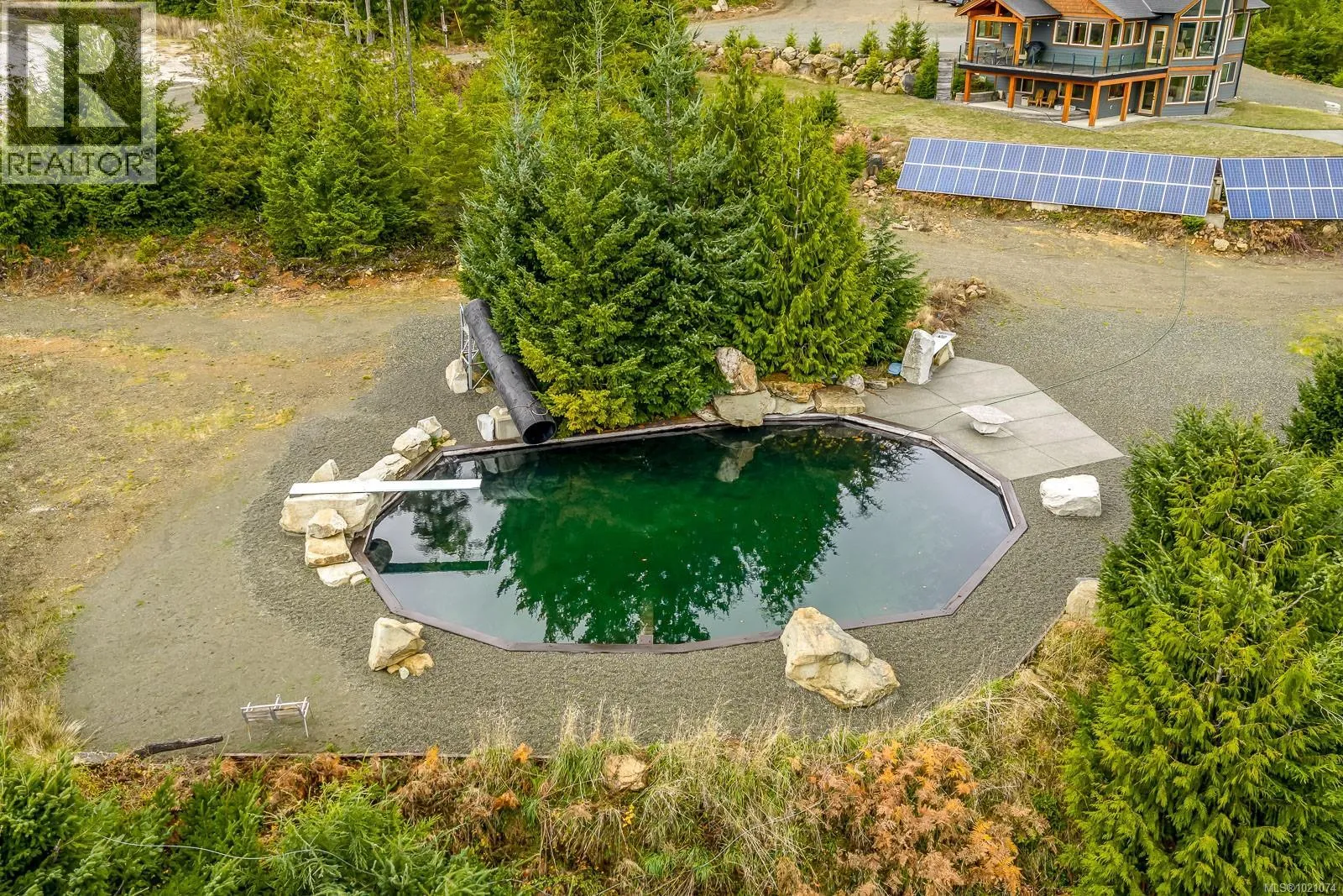 This custom-designed estate sits commandingly atop Mystic Cove on 40 pristine acres, offering an unparalleled living experience continually bathed in natural light. Secured by a private gate and encompassing extensive walking trails, the property ensures complete privacy and seamless immersion in nature. Every window frames a breathtaking panorama, capturing the serene expanse of Georgia Strait, the distant, captivating outlines of Denman and Hornby Islands, the curve of Comox Bay. The residence is a masterpiece of luxury and scale, designed for both comfortable living and grand-scale entertainment, boasting ample space to host crowds of any size. It features five spacious bedrooms, including primary suites designed with opulent touches like large, spa-like walk-in showers. The heart of the home is a large kitchen appointed with exquisite custom cabinetry. The main living space is warm and inviting, centered around a striking, huge stonre fireplace. Outdoor living revolves around a dazzling pool, while evenings culminate at a dramatic fire pit specifically positioned to overlook the twinkling lights of the entire Comox Valley. Utility and sustainability are paramount, supported solar power, silent in-ground radiant heat, and supplemental heat pumps for efficient, year-round climate control. Finally, a versatile four-car garageâcleverly split with two bays on the main level and two additional bays belowârealizes the car collector's dream. This is more than a home; it is a meticulously engineered, self-sustaining, and visually stunning elevated retreat where luxury, nature, and engineering converge. (id:27476)