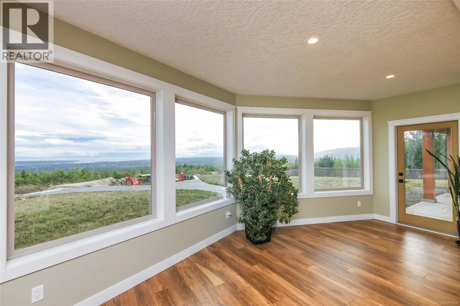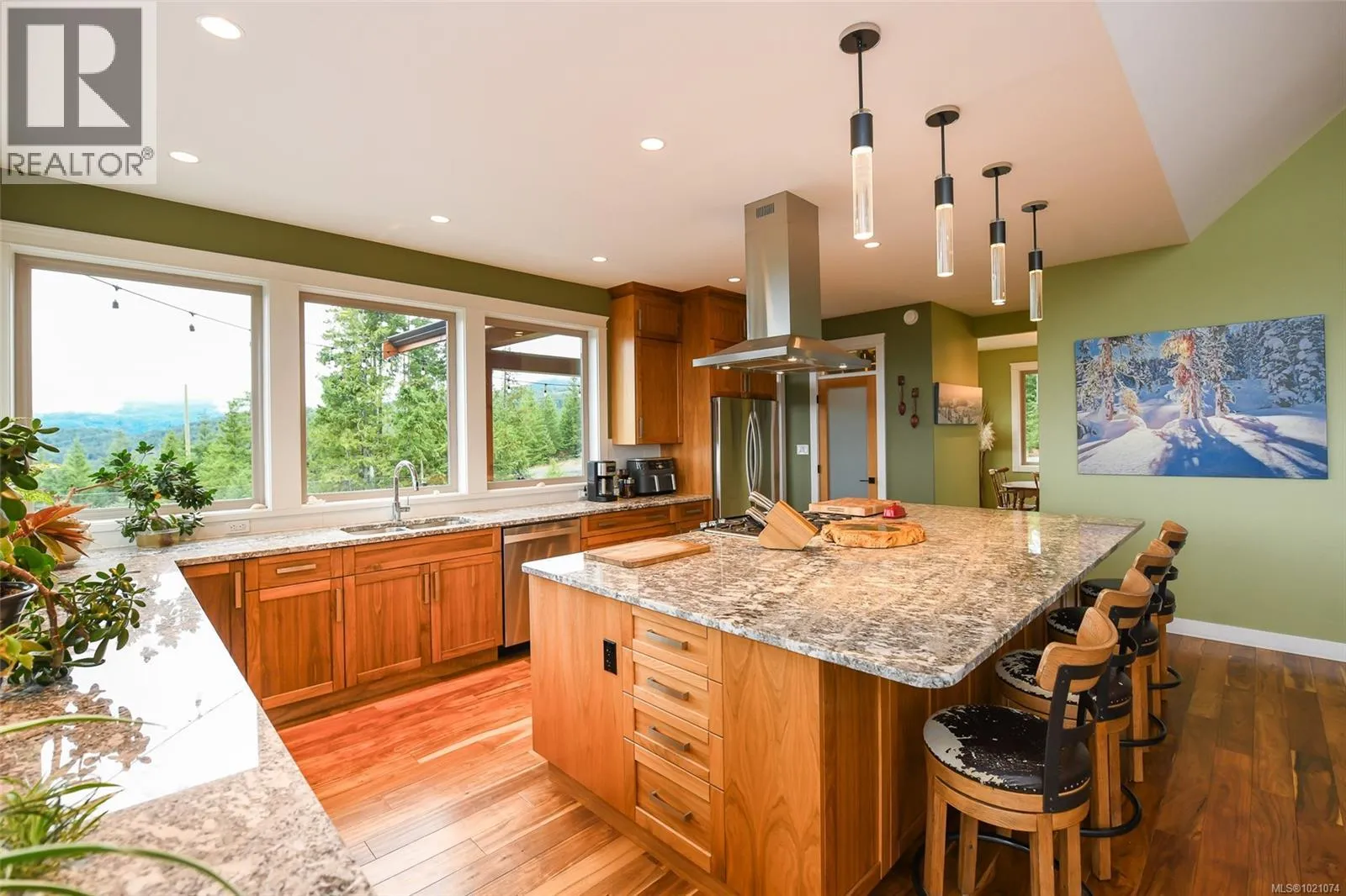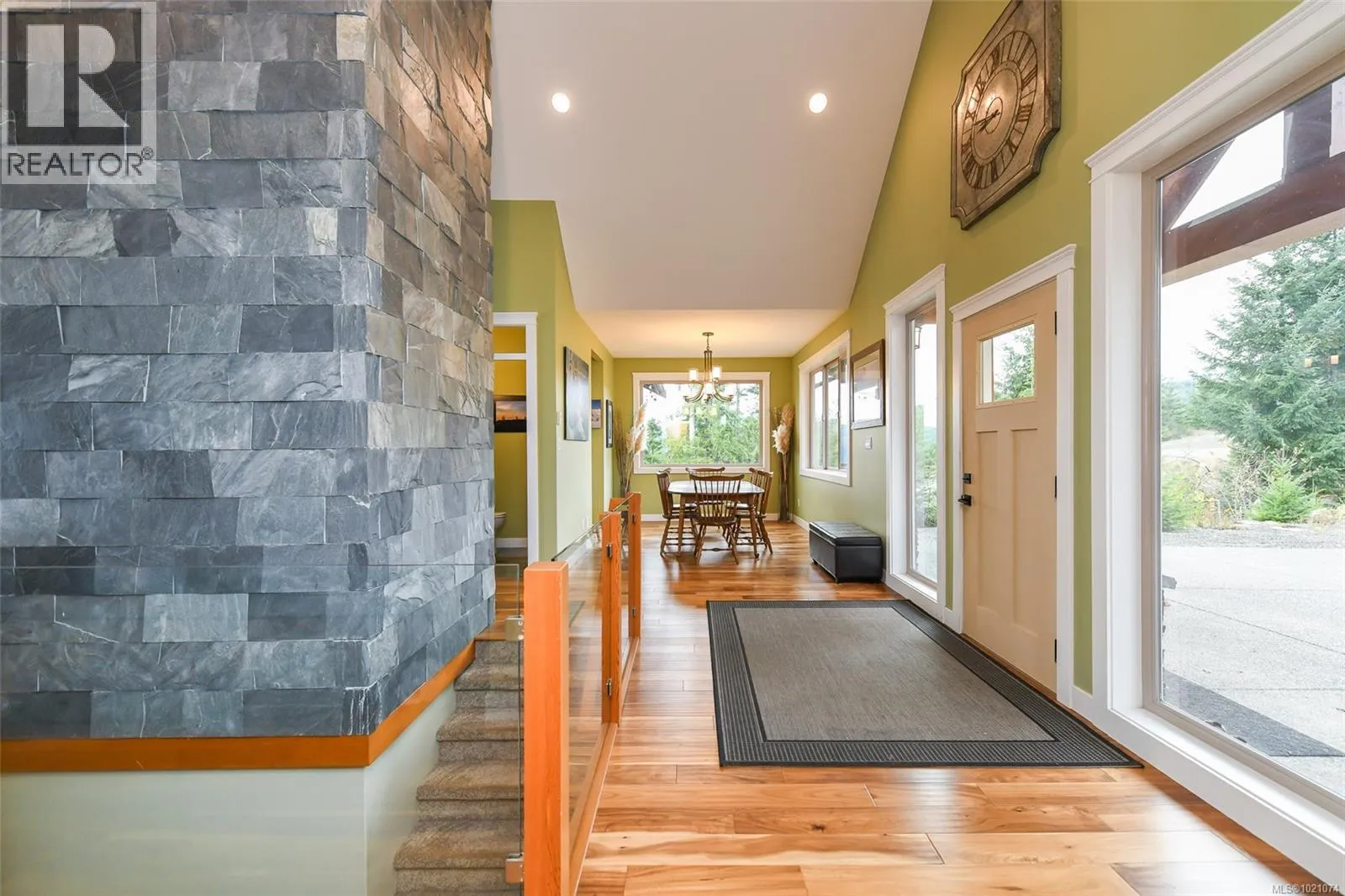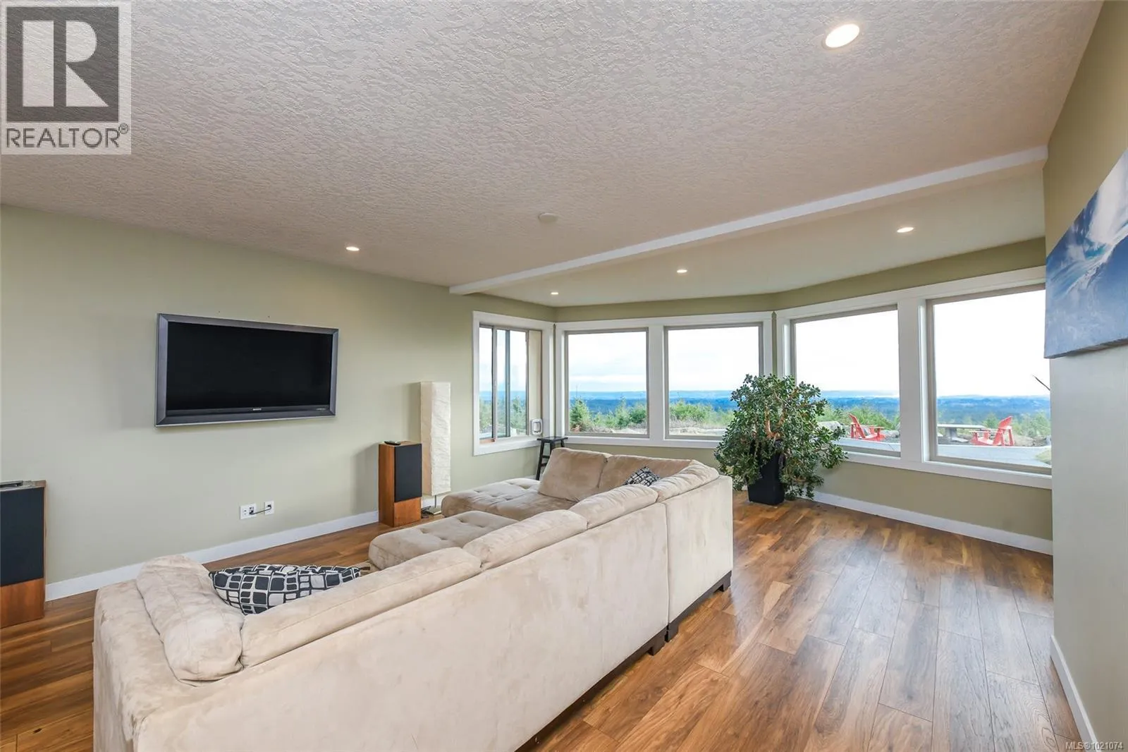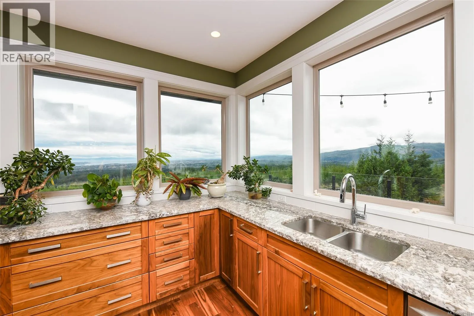 This custom-designed estate sits commandingly atop Mystic Cove on 40 pristine acres, offering an unparalleled living experience continually bathed in natural light. Secured by a private gate and encompassing extensive walking trails, the property ensures complete privacy and seamless immersion in nature. Every window frames a breathtaking panorama, capturing the serene expanse of Georgia Strait, the distant, captivating outlines of Denman and Hornby Islands, the curve of Comox Bay. The residence is a masterpiece of luxury and scale, designed for both comfortable living and grand-scale entertainment, boasting ample space to host crowds of any size. It features five spacious bedrooms, including primary suites designed with opulent touches like large, spa-like walk-in showers. The heart of the home is a large kitchen appointed with exquisite custom cabinetry. The main living space is warm and inviting, centered around a striking, huge stonre fireplace. Outdoor living revolves around a dazzling pool, while evenings culminate at a dramatic fire pit specifically positioned to overlook the twinkling lights of the entire Comox Valley. Utility and sustainability are paramount, supported solar power, silent in-ground radiant heat, and supplemental heat pumps for efficient, year-round climate control. Finally, a versatile four-car garageâcleverly split with two bays on the main level and two additional bays belowârealizes the car collector's dream. This is more than a home; it is a meticulously engineered, self-sustaining, and visually stunning elevated retreat where luxury, nature, and engineering converge. (id:27476)