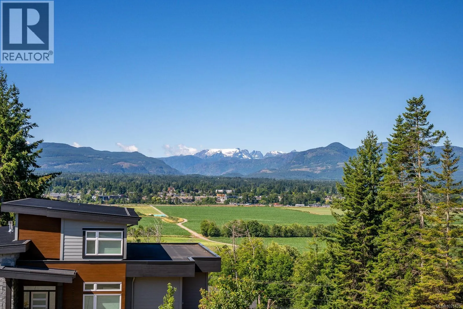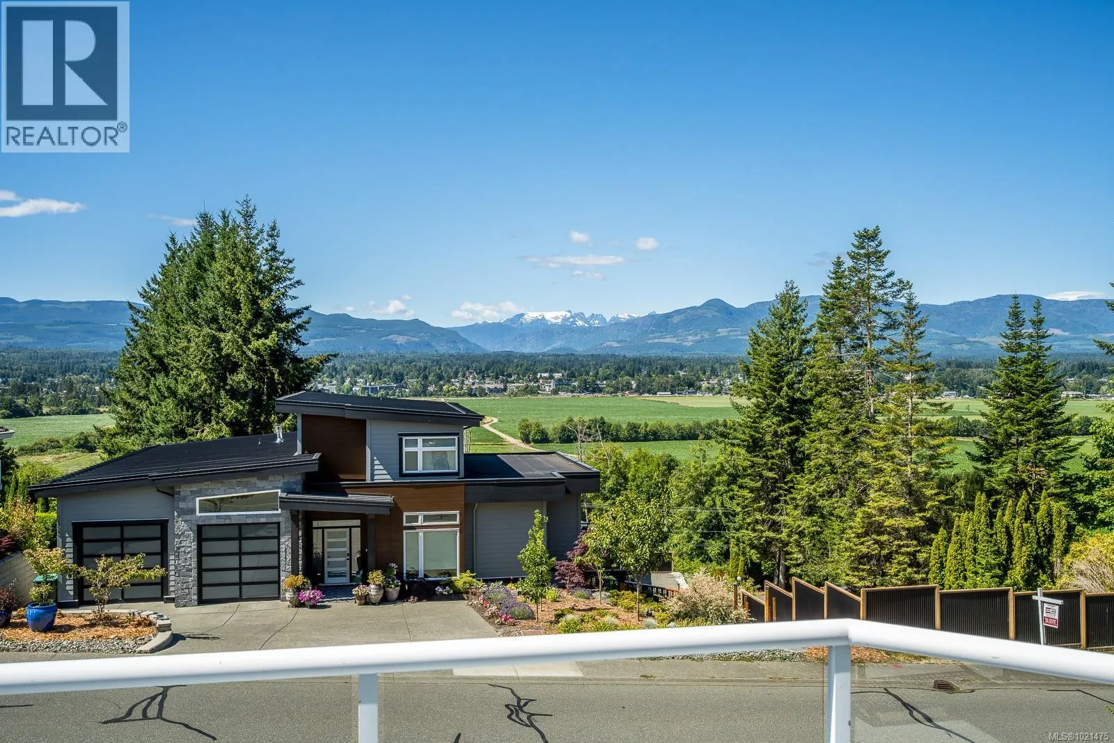 $100,000+ below assessed value, this 3,766 sq. ft., three-level home offers exceptional multi-generational living with suite potential and unparalleled views of the Comox Glacier, Mt. Washington, coastal mountains, lush farmland, and city lights! Designed to capture the scenery, the home features extensive windows that fill the interior with natural light. The main living room boasts 12-ft cathedral ceilings and a gas fireplace, currently styled as an elegant dining area. The updated kitchen includes a large island, abundant cabinetry, stainless appliances with gas stove and double oven, eating nook, adjacent family room which opens to a front-facing balcony plus a covered 10'x8' deck for year-round enjoyment and barbecues. Two additional rooms could be bedrooms or offices, depending on your needs. Upstairs, a beautiful winding staircase leads to three bedrooms. The spacious primary suite impresses with 11-ft cathedral ceilings, full-height windows, a private balcony + covered deck, and a luxurious 5-piece ensuite with soaker tub and walk-in closet - your own retreat with continuous mountain, glacier, and ocean vistas. The lower level offers a full kitchen and 3-piece bath, providing two-bedroom suite potential (windows required) with a private, no-stairs entrance. Outdoors, a large backyard deck creates a cool summer oasis among fruit trees. Additional highlights include mini-split heat pumps, radiant flooring, a double garage, and a separate workshop. Exceptional value and unbelievable views - this is a home you won't want to miss! (id:27476)