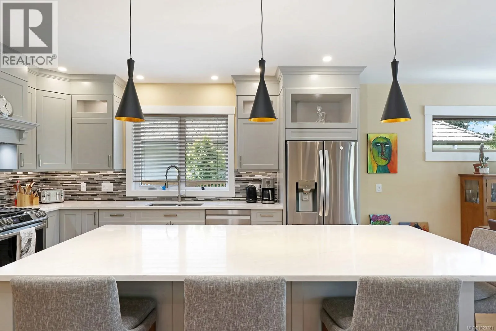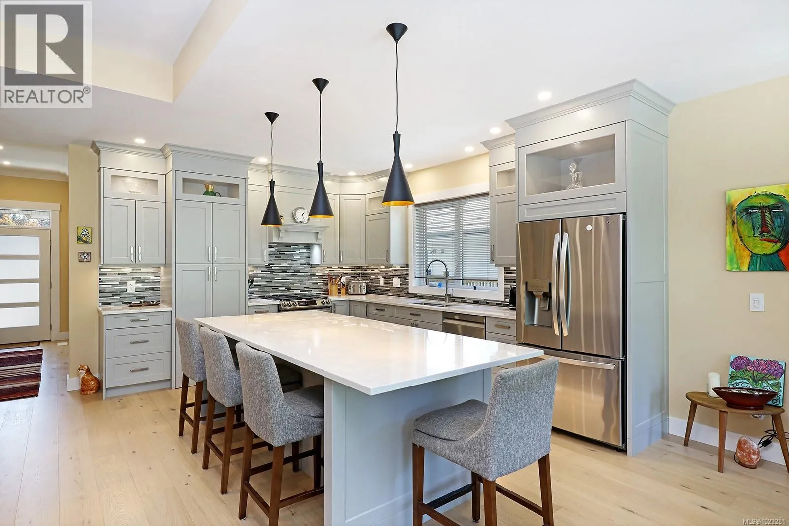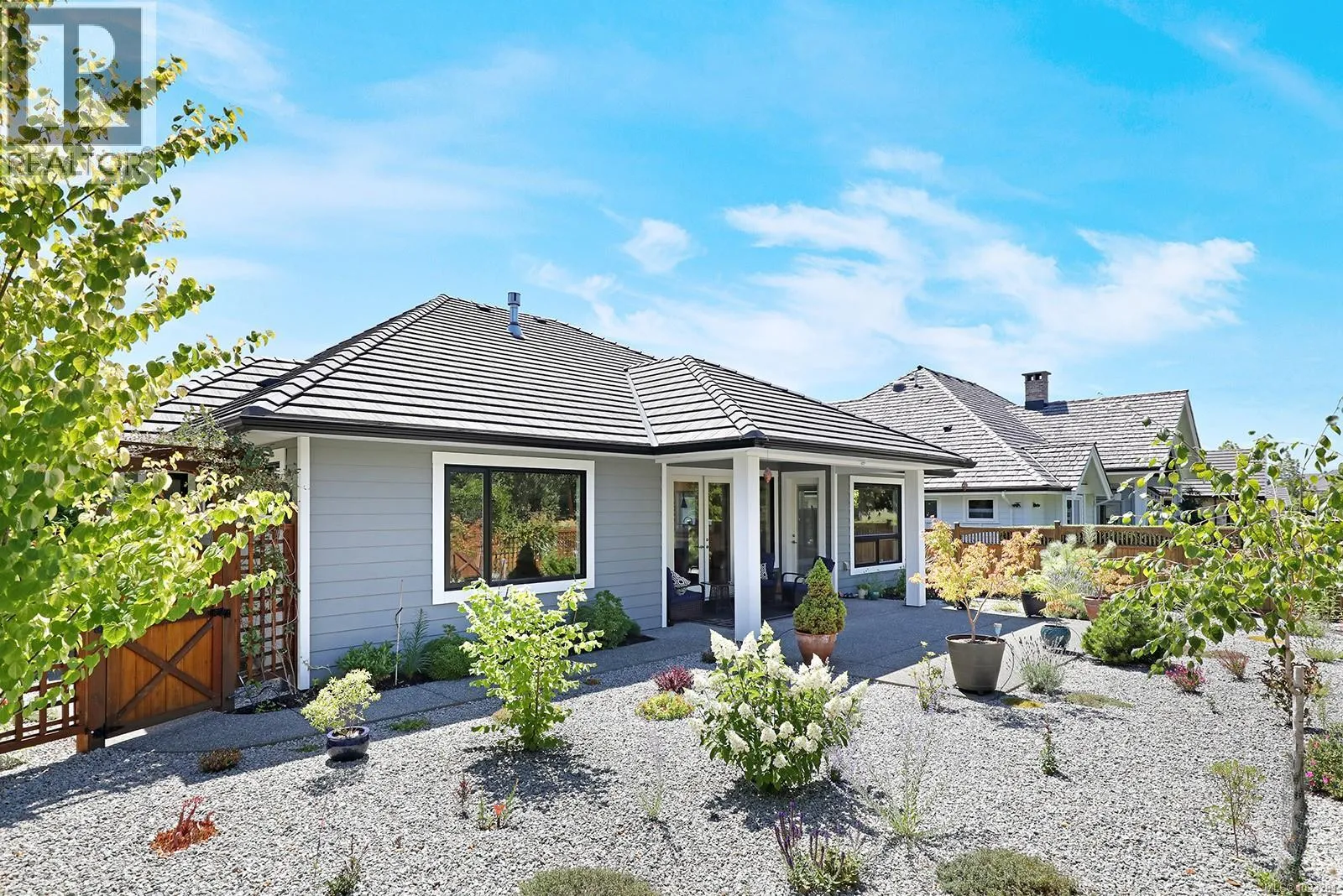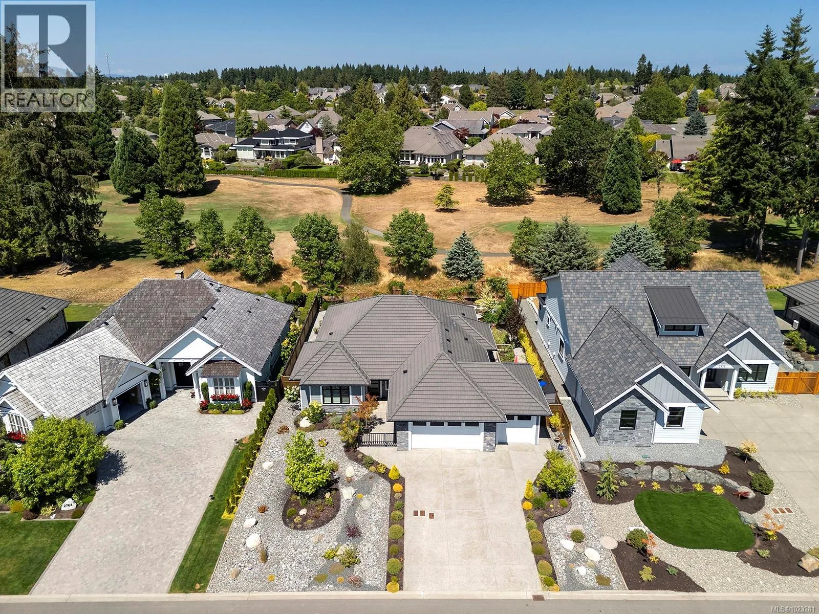 Stunning Rancher built in 2021, located in Crown Isleâs Cambridge Park Estates, ideally positioned on the 13th fairway w/ northern exposure. Sophisticated luxury, clean lines & contemporary styling, open concept plan w/ spacious room sizes, 9â ceilings throughout & 10â ceilings in the entry & great rooms, 2,084 sf, 3 BD/ 2 BA. Fine finishing & contemporary hues, linear gas fireplace, engineered wide plank hardwood flooring, quartz counters, crown molding. This dream kitchen boasts a large quartz island, window over the sink & hidden walk-in butlerâs pantry. French doors from the Great room open to the covered patio, ideal for BBQ's. The master suite offers a large walk-in closet & 5 pce ensuite, dual vanities, W/C, air-jetted tub, & fully tiled curbless glass shower. Crawl space 6â4â in center w/ stair access. H/W on demand, Carrier Air Purifier System, Heat Pump, 3 car garage w/ Polyaspartic flooring & 4th glass garage door to the side gardens. Low maintenance yard, gorgeous gardens. (id:27476)