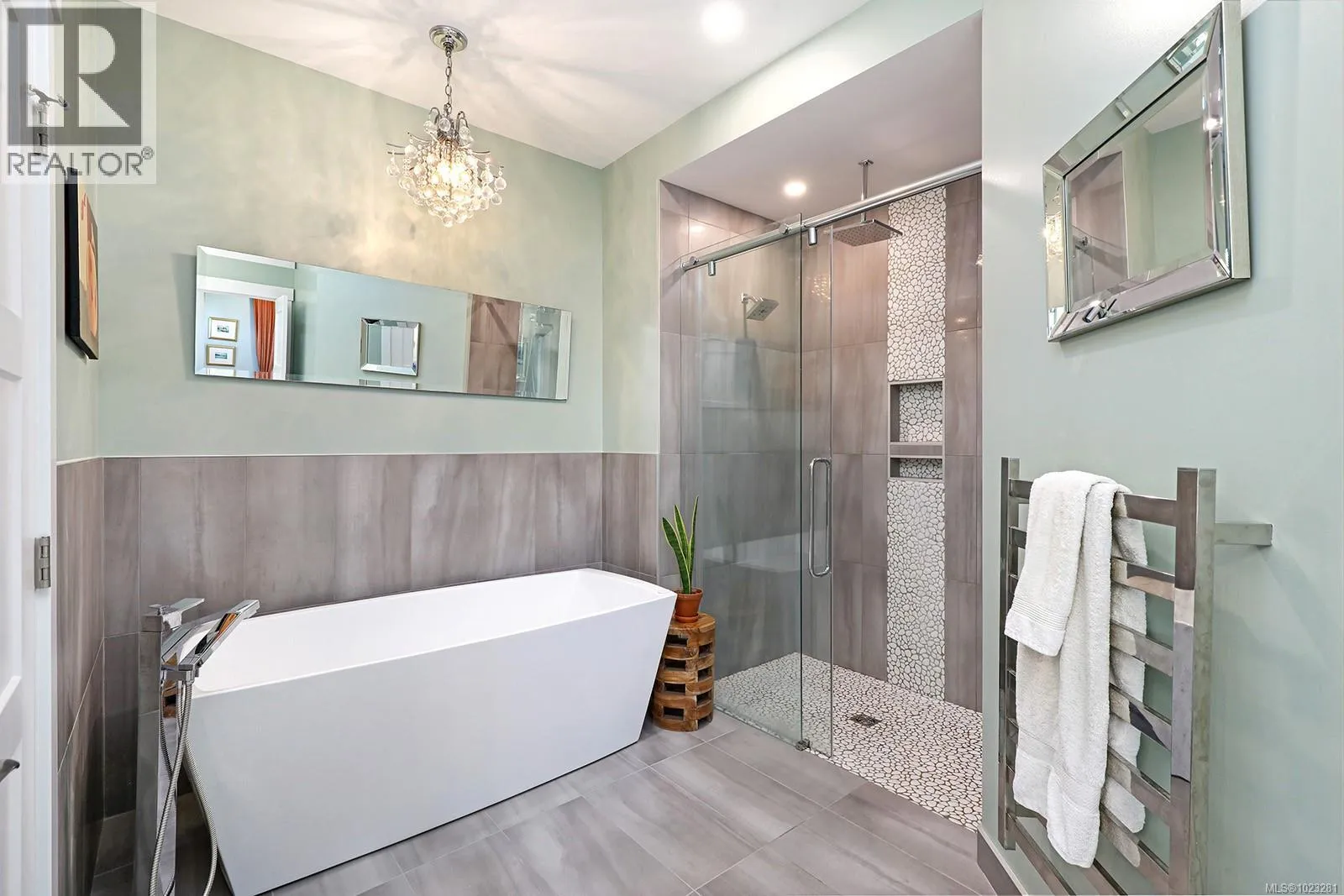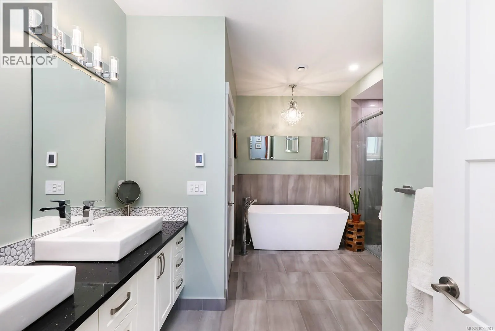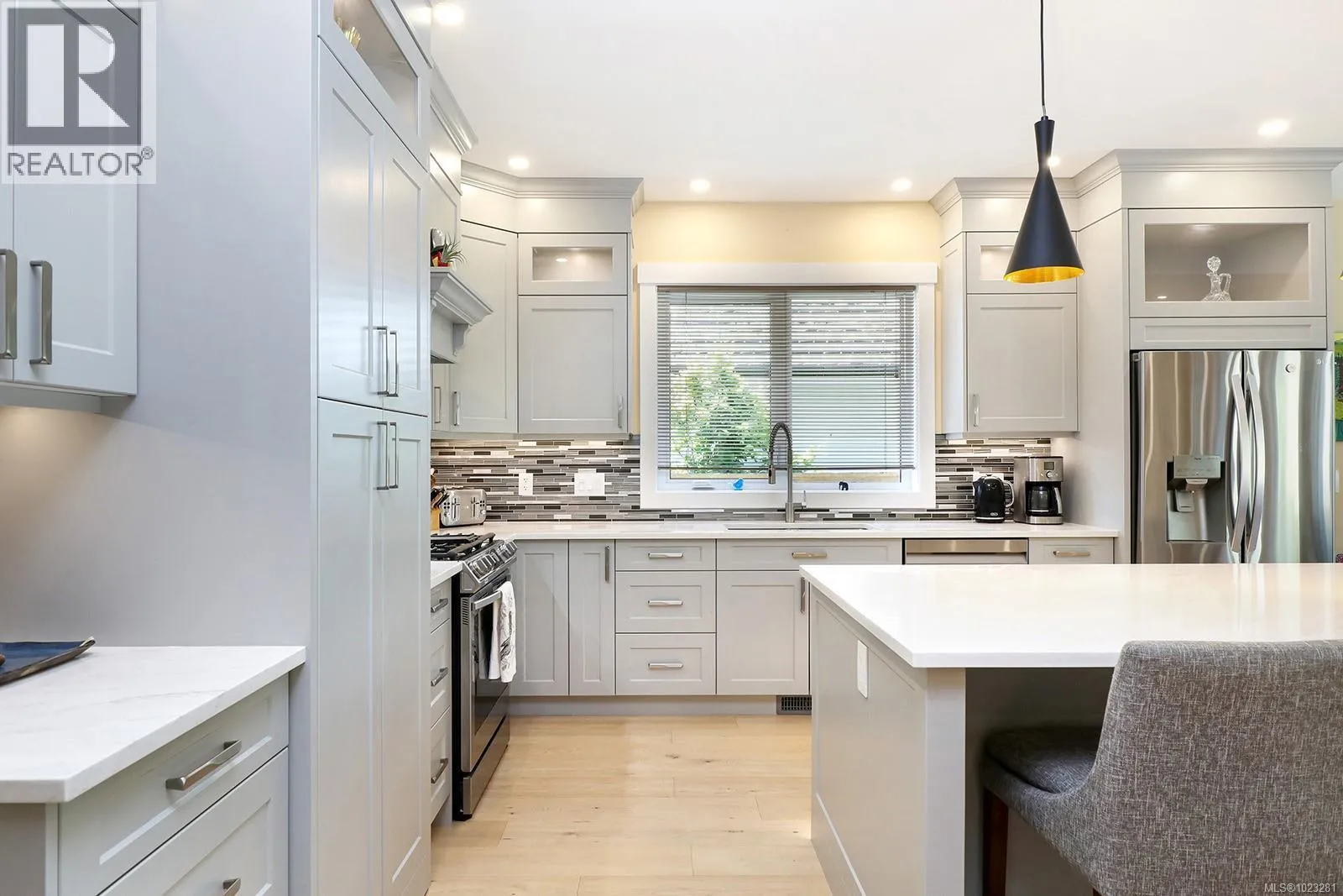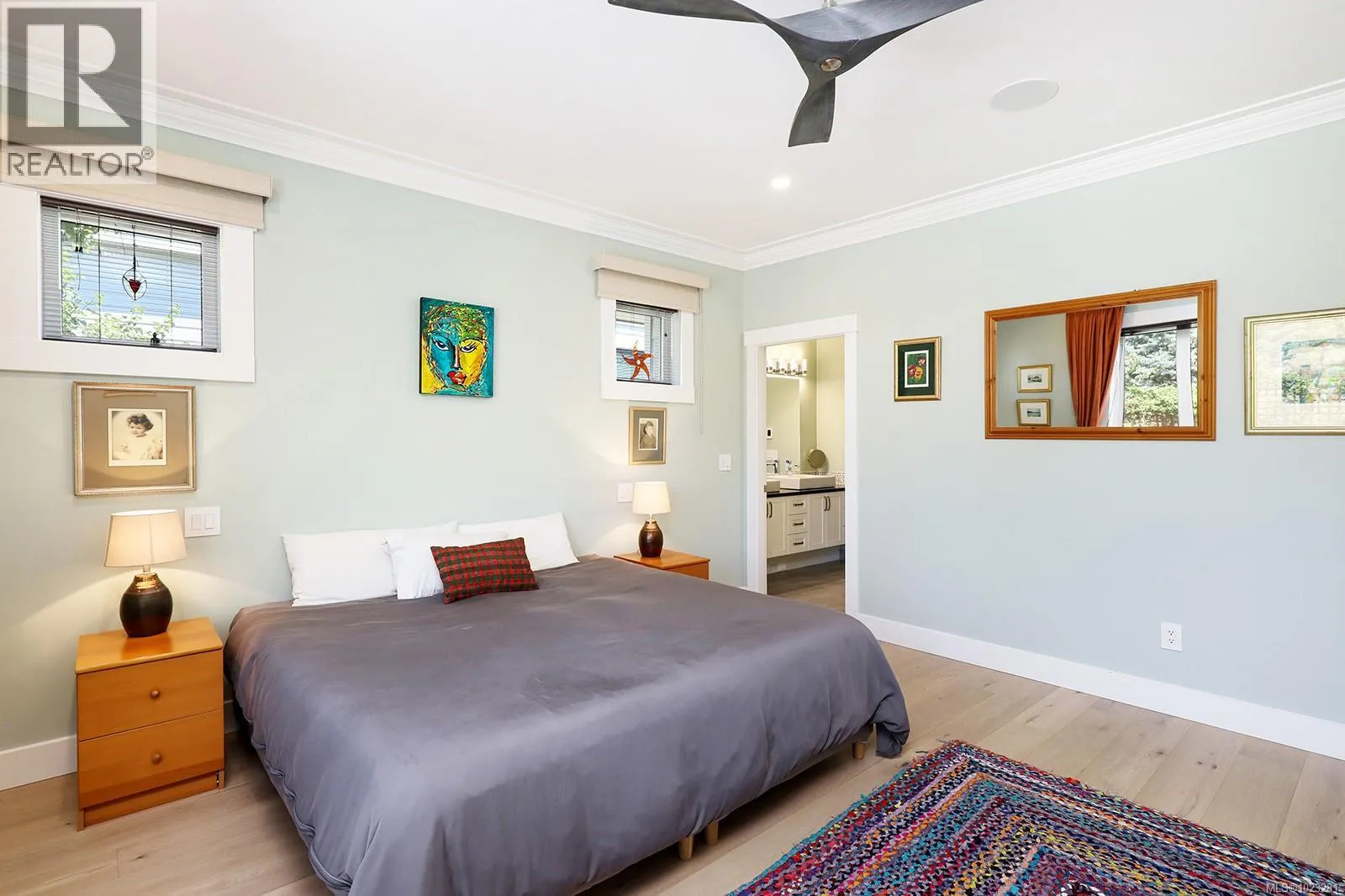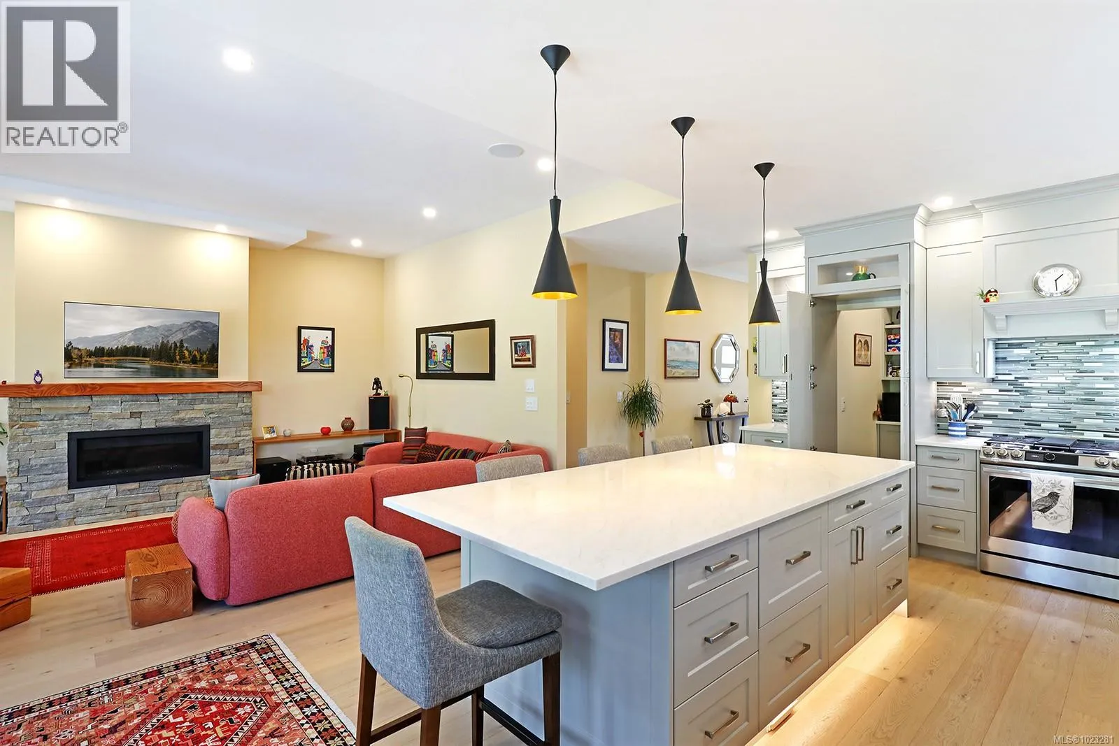 Stunning Rancher built in 2021, located in Crown Isleâs Cambridge Park Estates, ideally positioned on the 13th fairway w/ northern exposure. Sophisticated luxury, clean lines & contemporary styling, open concept plan w/ spacious room sizes, 9â ceilings throughout & 10â ceilings in the entry & great rooms, 2,084 sf, 3 BD/ 2 BA. Fine finishing & contemporary hues, linear gas fireplace, engineered wide plank hardwood flooring, quartz counters, crown molding. This dream kitchen boasts a large quartz island, window over the sink & hidden walk-in butlerâs pantry. French doors from the Great room open to the covered patio, ideal for BBQ's. The master suite offers a large walk-in closet & 5 pce ensuite, dual vanities, W/C, air-jetted tub, & fully tiled curbless glass shower. Crawl space 6â4â in center w/ stair access. H/W on demand, Carrier Air Purifier System, Heat Pump, 3 car garage w/ Polyaspartic flooring & 4th glass garage door to the side gardens. Low maintenance yard, gorgeous gardens. (id:27476)