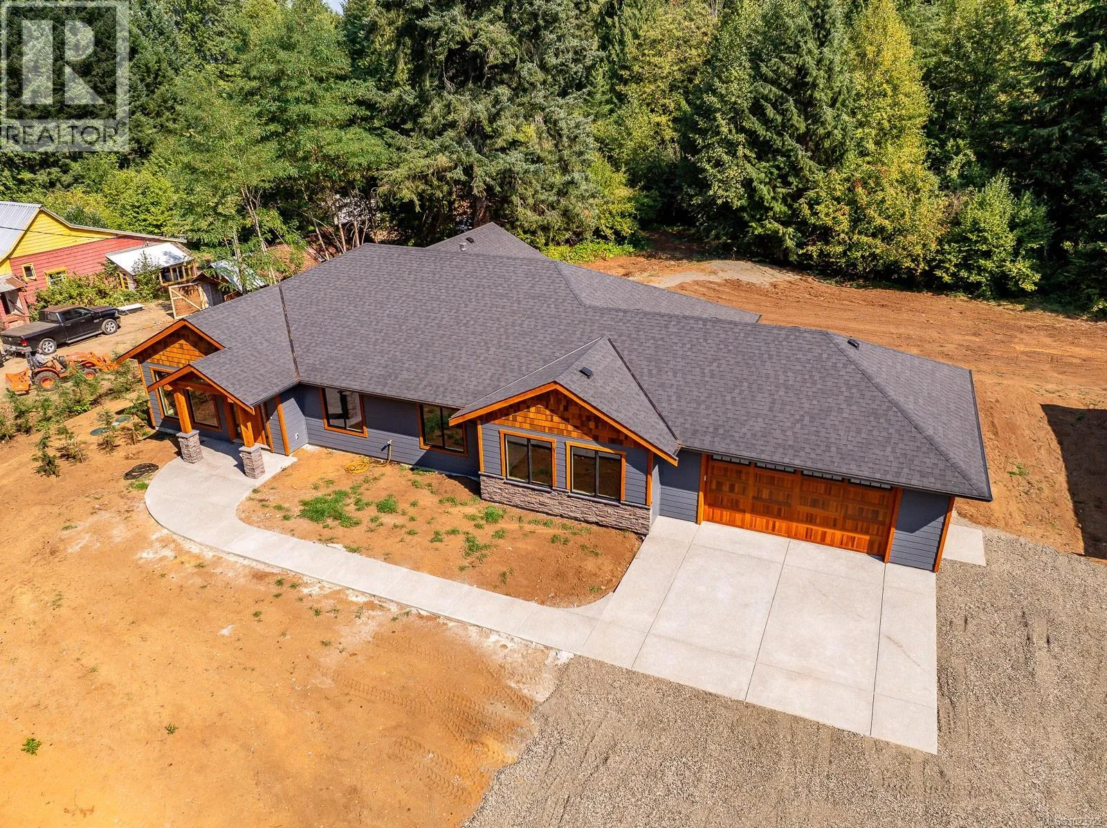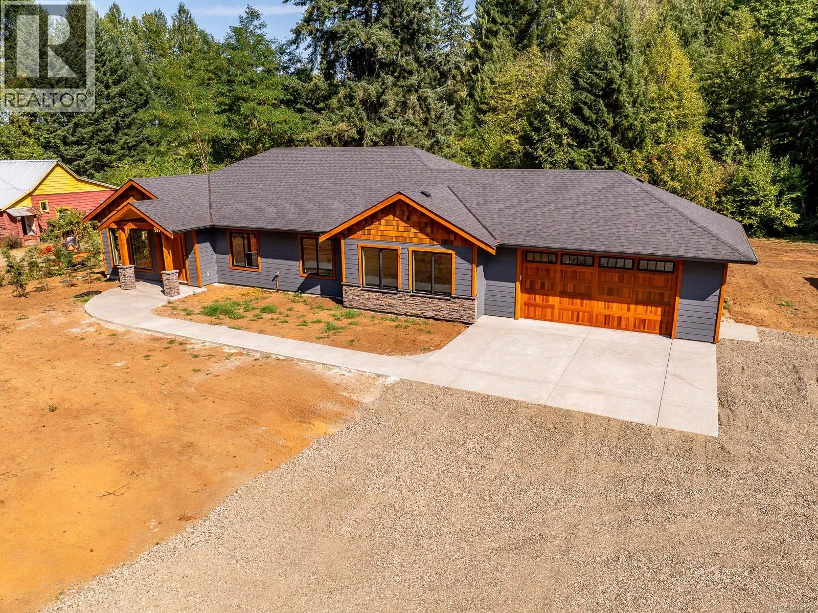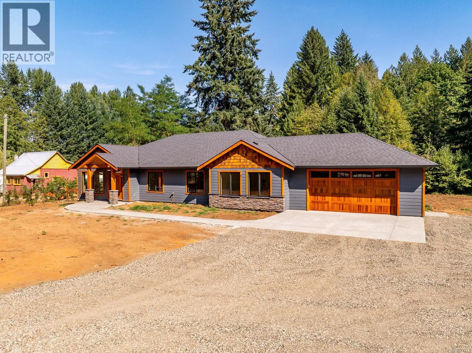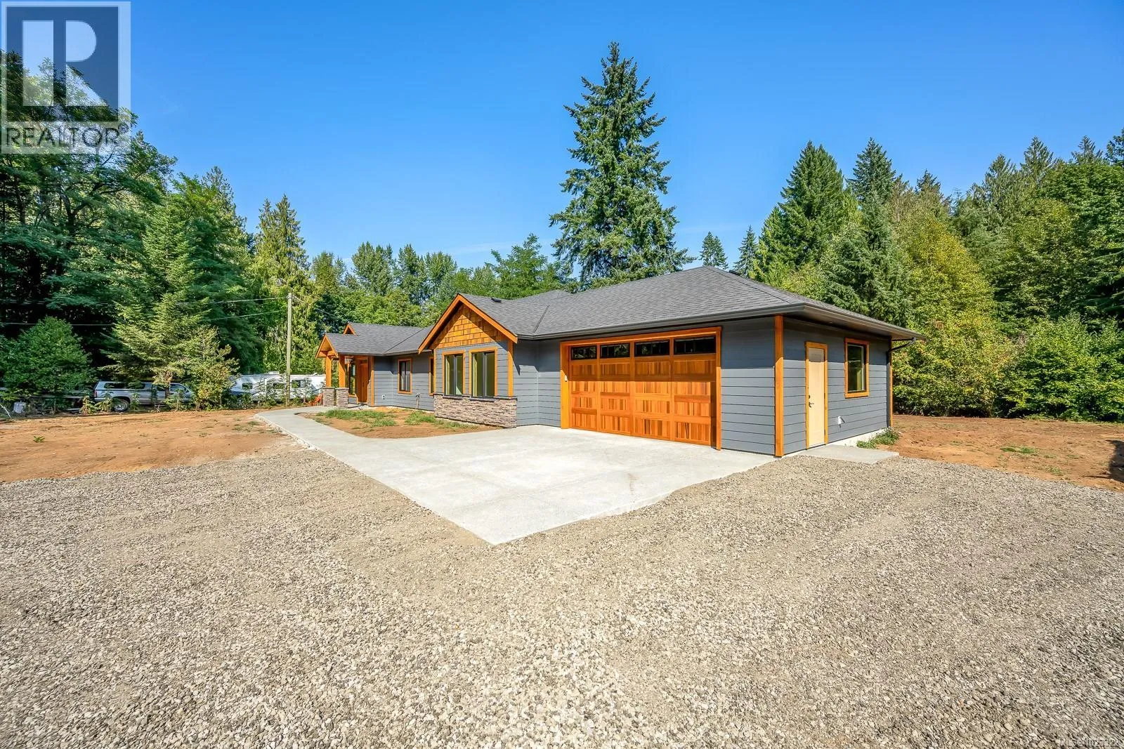 3 bedroom, 2 bath, 2310 sq ft executive rancher by Dragonfly Homes, ready for occupancy. Set on a level 2 +/- acre, private treed lot with a 1000 sq ft detached shop with over height garage doors. This high end rancher has all the west coast finishing Dragonfly homes is known for with a modern twist. Hardwood and tile floors, fir trim, hemlock doors and a huge great room with vaulted ceilings that extend through to the huge partially covered patio. Living room boasts floor to ceiling windows and a cozy fireplace. Gourmet kitchen with modern finishing, lots of cabinetry and quartz counters. Luxurious master suite has a walk in closet and ensuite with free standing soaker tub, jack and jill sinks and walk in tiled shower. Electric forced air furnace with a heat pump keeps you cool in the summer. This one level home has a covered entry way with fir timber details, hardi plank siding a garage attached to the house as well as the detached shop so bring your toys! (id:27476)