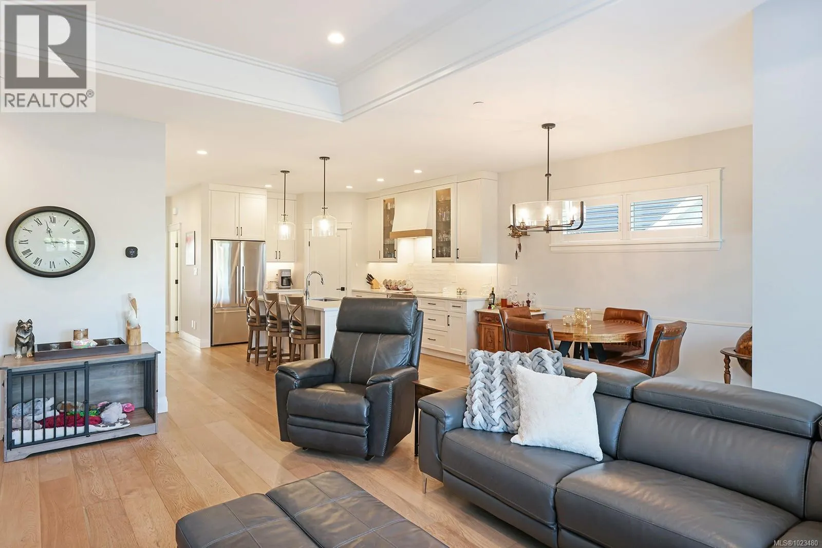 Spectacular location in Silverstone Estates, Crown Isleâs newest patio home development perfectly positioned between the 14th, 15th & 16th fairways. This stunning 1 level residence offers a private location backing onto the pond and great separation between neighbours. Built in 2022 by Integra Homes with a reputation for high end luxurious finishing. Craftsman/Farmhouse architectural styling w/ 1,432 sf, 2 BD/ 2 BA, 9-10â ceilings, California Shutters, engineered oak plank hardwood flooring, quartz countertops, gas fireplace, H/W on demand, gas furnace, Heat Pump for A/C, HRV, Hardie Plank, Tile Roof. Spacious open plan w/ 9-10â ceilings, a modern white kitchen w/ subtle wood accents, Fisher & Paykel appliances, induction range, & walk-in pantry. Primary ensuite features heated tile flooring, curb-less tile shower & bench w/ glass surround, double vanity & free-standing soaker tub. Laundry w/ upper & lower cabinets, sink, closet & LG W/D. 1 car garage & parking for 2 cars in driveway. (id:27476)