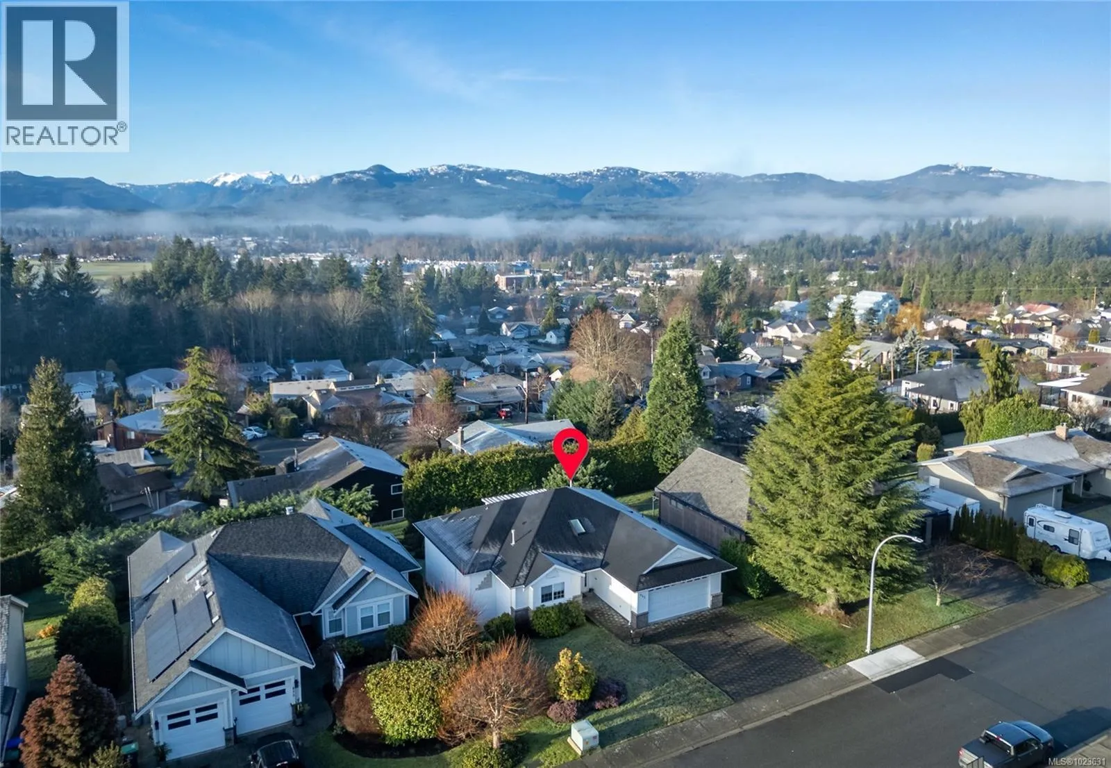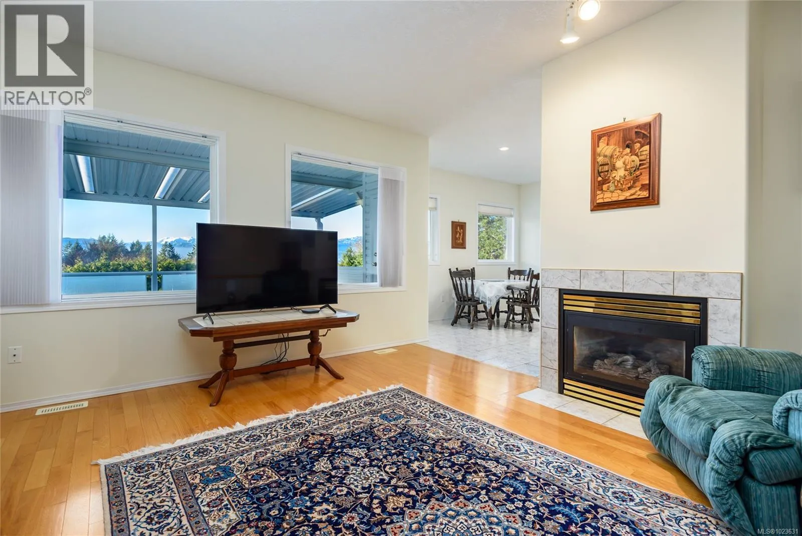 Amazing 5 bdrm/2.5 bath, mountain and glacier VIEW home in desirable Courtenay East location! Very well maintained one owner home, this rancher with full walk-out basement offers 3189 sf, ready to welcome a new family. Main floor features sizeable kitchen with ample cabinetry and tile floors open to dining area. Enjoy relaxing & entertaining on the fantastic covered deck. Spacious living room with wood floors, gas fireplace and fabulous views. Impressive primary bdrm with double closets, 5 pce ensuite and deck access. Downstairs offers huge recreation room with sliding doors to lower patio and landscaped yard, 3 large bedrooms and open den/office space. Thereâs a double garage, heat pump, hot water on demand, newer roof, built-in vac system and in-ground sprinklers. Zoning allows for a secondary suite. Excellent neighbourhood close to schools, shopping, college and hospital. Book your showing today! (id:27476)