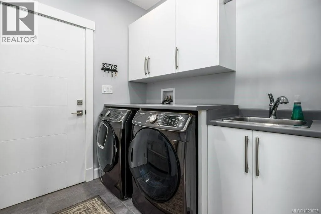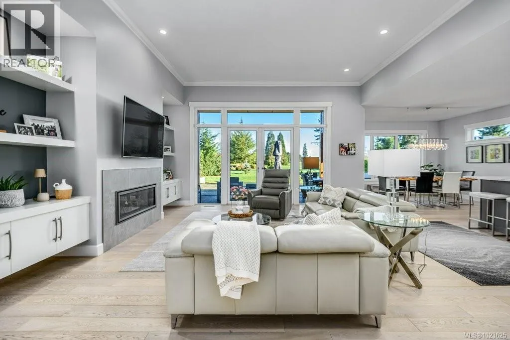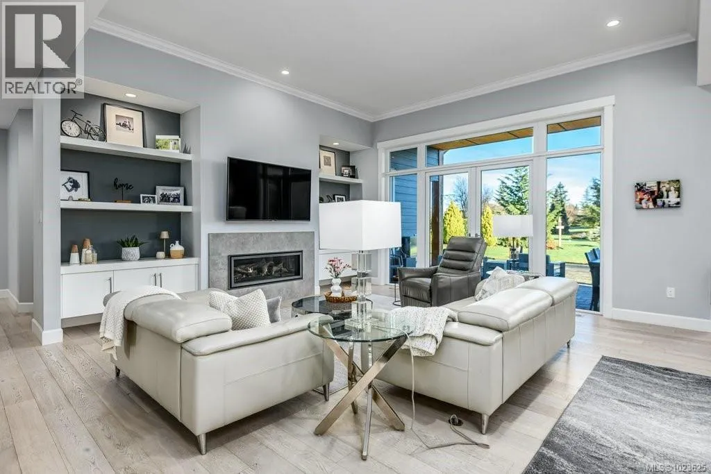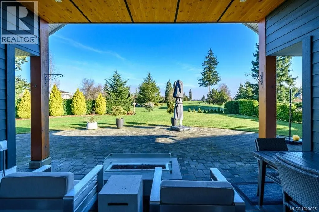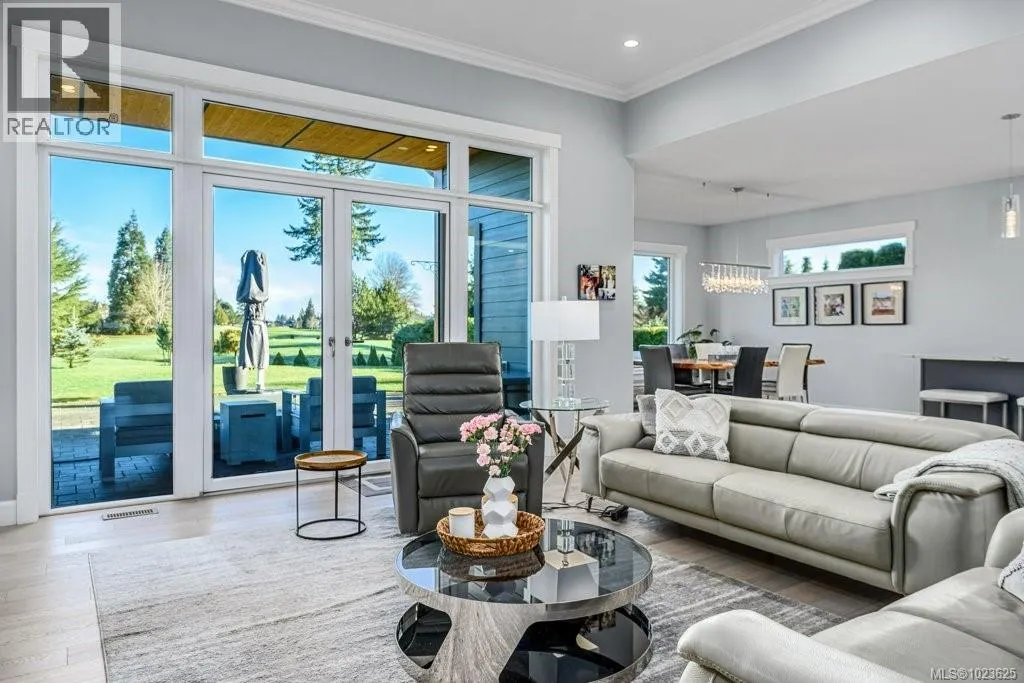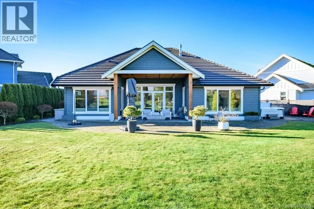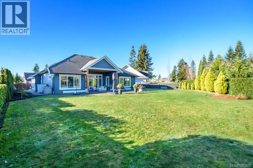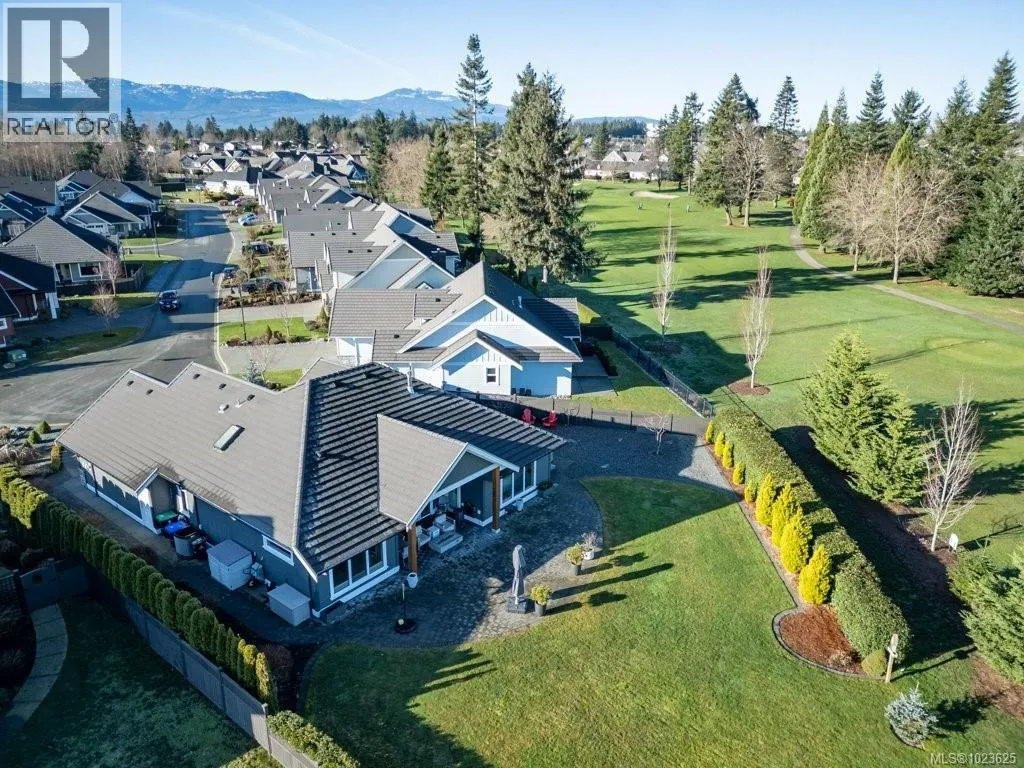 Welcome to Hampton Gate, an exclusive gated golf course community located at Crown Isle on Vancouver Island. This contemporary rancher is ideally positioned between the 16th and 17th fairways, offering exceptional golf course frontage and unparalleled views down the 11th fairway. Set on a quiet cul-de-sac at the end of the complex on one of the largest lots, this custom-built 2019 home showcases refined craftsmanship, including European white oak engineered hardwood flooring, Innotech tilt-and-turn windows, quartz countertops, and 11-foot ceilings in the great room. Outdoor living is highlighted by an impressive 1000 sq ft patio with interlocking pavers, a covered area for all-season use, and a Watkins saltwater spa in a private setting. Green built options include EV charger, heat pump, and efficient natural gas on demand hot water/furnace/fireplace/bbq. With level-entry living, wide hallways, and a 5-foot paved walkway encircling the home, this residence offers flexible options for all ages. Generous size garage fits 2 cars, storage and workshop area comfortably. Come and see why Hampton Gate is a great place to call home! (id:27476)