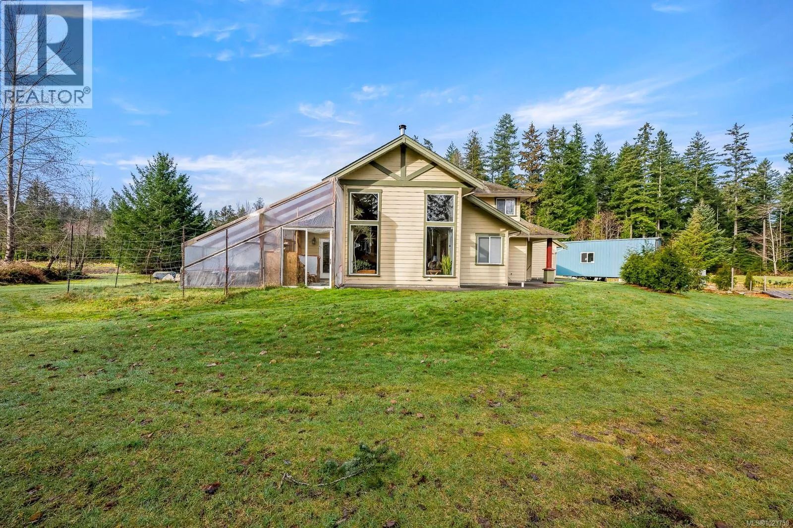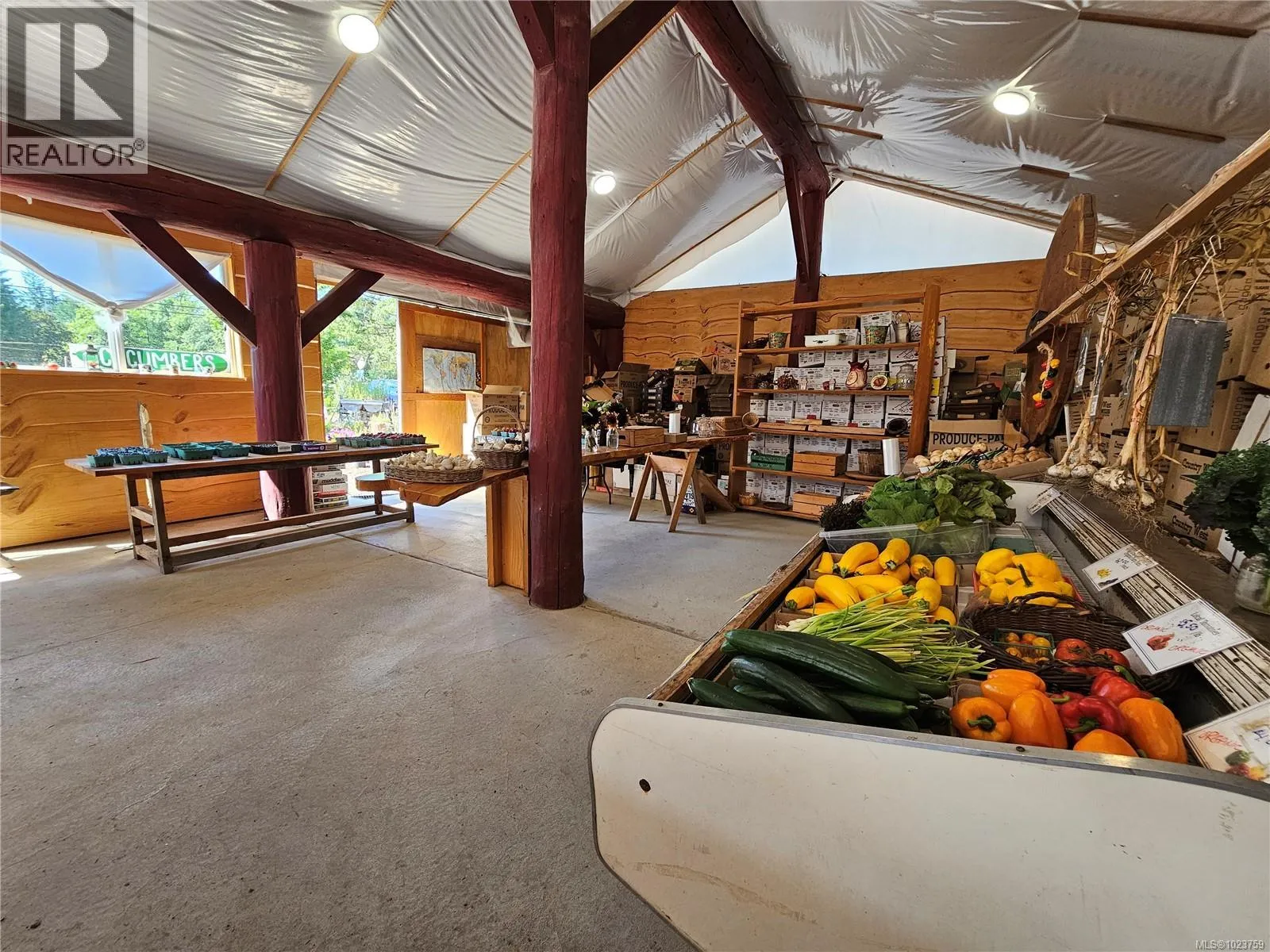 17.23-acre rural investment opportunity in desirable North Courtenay with established agri-business infrastructure and income potential. Approximately one acre is in production with blueberries (multiple varieties), cherries, strawberries, vegetables, and cut flowers, supported by a roadside farm stand. Outbuildings include greenhouses, workshop, studio, storage buildings, two walk-in coolers, and kiosk, supporting continued or expanded agricultural use. Three separate 200-amp electrical services provide excellent capacity for business operations. Additional dwellings include a second residence with its own well and septic, an unfinished 1-bed tiny home, and an unfinished guesthouse with bathroomâideal for staff housing, rental income, or multigenerational living. The custom 5-bed, 4-bath main home offers comfortable owner-operator living with a main-level primary bedroom, heat pump, woodstove, and chef-inspired kitchen. Private setting backing onto a creek, minutes to Courtenay amenities, airport, parks, and beaches. Residential MLS 1023409 (id:27476)