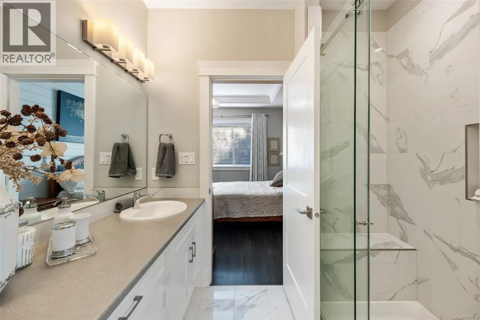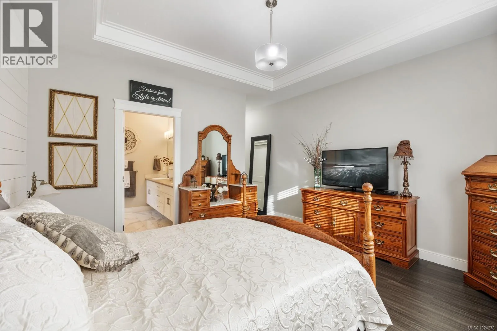 Located in the highly sought-after Crown Isle Boulevard neighbourhood, this stunning 1,504 sqft home offers privacy, quality craftsmanship, and timeless design. Built by reputable Integra Homes, it features soaring ceilings throughout and elegant coved ceilings in both the primary bedroom and living room, adding architectural interest and a sense of space. Large windows fill the living room with natural sunlight, while the gas fireplace creates a warm and inviting focal point. The kitchen is thoughtfully designed with a spacious pantry, and the home offers excellent storage throughout, including a tall crawl space ideal for seasonal and long-term use. The primary ensuite features in-floor heating for added comfort, while a heat pump provides efficient, year-round climate control. Outside, the private, treed backyard offers a peaceful retreat perfect for relaxing or entertaining. With its classy finishes, thoughtful layout, and prime location, this home delivers both comfort and enduring style in one of the areaâs most desirable neighbourhoods. (id:27476)