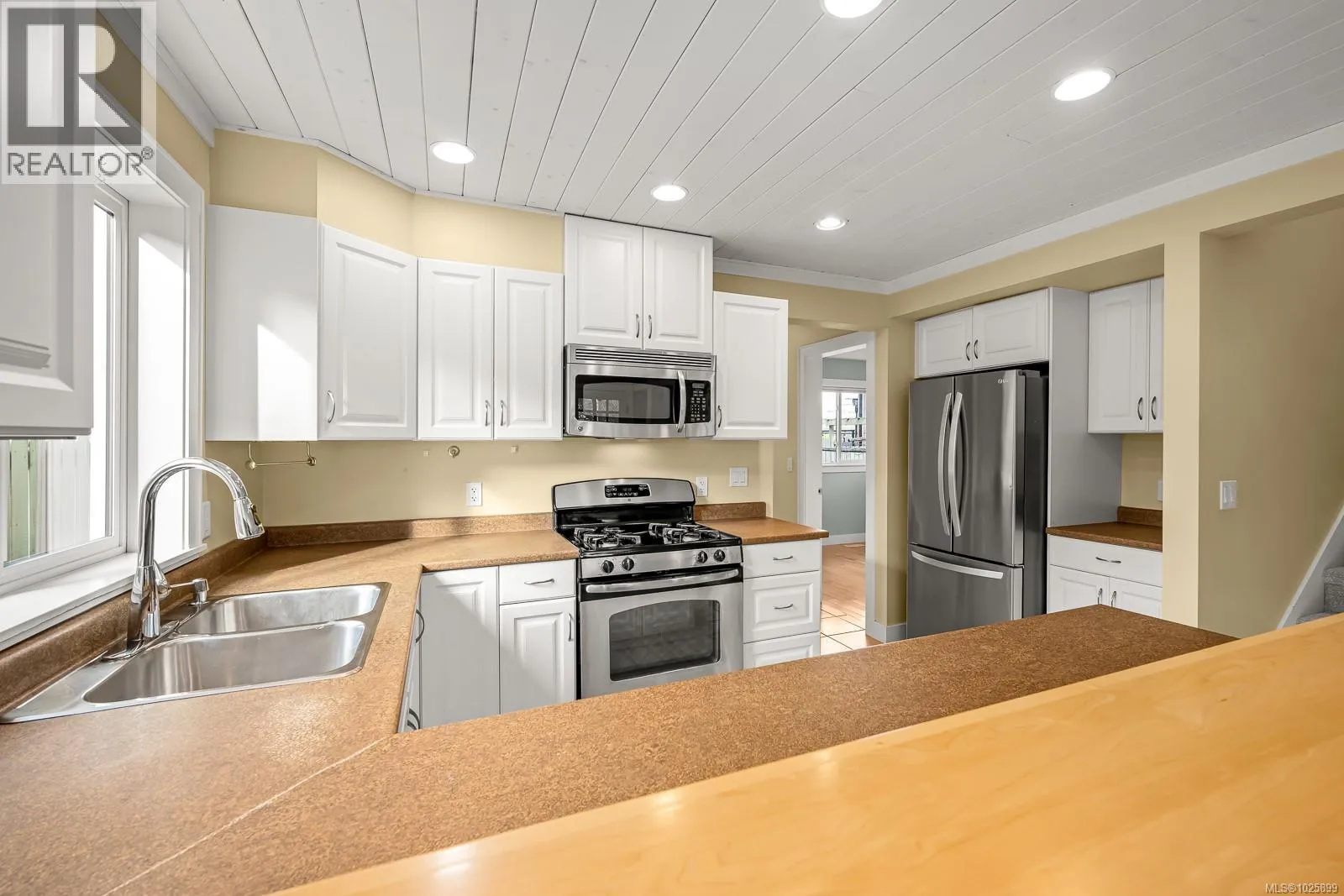 No car required! 2008 Croonen Construction built, this warm and inviting 3-bedroom, 2-bath home blends quality craftsmanship with everyday comfort plus incredible street appeal - all in a location where you can truly leave the car at home. Step inside to a bright main-level entry featuring hardwood flooring, new carpets, and a cozy gas fireplace that anchors the living room. The thoughtfully designed kitchen offers a welcoming butchers block eating bar --- perfect for gathering with friends and family. The open-concept layout creates an easy flow for both daily living and entertaining. The main floor includes a bedroom plus a den/office area overlooking the private backyard - ideal for working from home or enjoying a quiet reading nook with a garden view. Upstairs, you'll find two generously sized bedrooms with abundant closet and storage space. The front bedroom opens onto its own private balcony - the perfect spot for morning coffee or unwinding in the evening. Comfort is ensured year-round with an efficient heat pump system. Outside, the home is beautifully set among some mature trees and established landscaping, the fully fenced yard offers a covered deck at the front of the home and a large private patio out the back for summer evenings on the patio, plant your vegetables, grow your flowers, and make the most of your own peaceful outdoor retreat. A separate21' x 15' garage with convenient lane access provides a workshop or excellent parking and storage option, plus there's additional space for RV and boat parking - a rare find this close to town. Located within walking distance to all amenities - including the downtown core, shops, restaurants, and services - this home offers the ultimate in convenience and lifestyle. (id:27476)