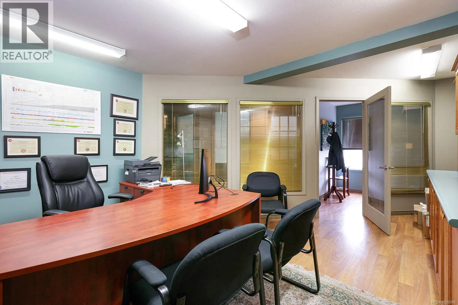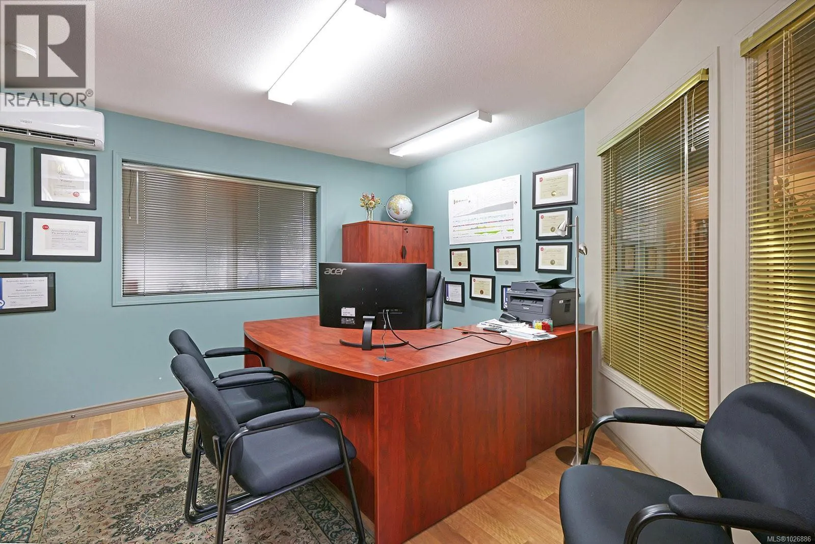 Unbeatable downtown Courtenay location with exceptional flexibility and potential! This 3,781 sqft C-1 zoned building features 2 commercial and 1 residential units, 9 on site parking stalls, rear lane access, and abundant street parking. The primary commercial space offers an accessible entrance, bright reception area, 6 private offices, and a spacious meeting room with a cozy gas fireplace. The second unit, with both front and rear access, includes a functional layout with reception, 2 offices, a kitchenette, and a washroom. Upstairs, you'll find a fully renovated 2 bedroom apartment with vaulted ceilings, a gas fireplace, modern open concept kitchen and living area, a stylish 4 piece bath, laundry, and a private back deck with peaceful mountain views. Recent updates include new fencing, updated HVAC, new hot water tanks and Poly-B remediation. A rare opportunity to invest, live, and work in a high visibility, high demand area with solid income potential and excellent versatility. (id:27476)