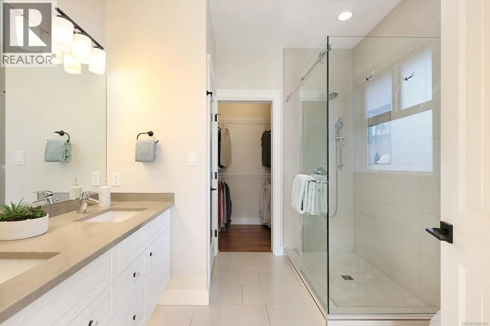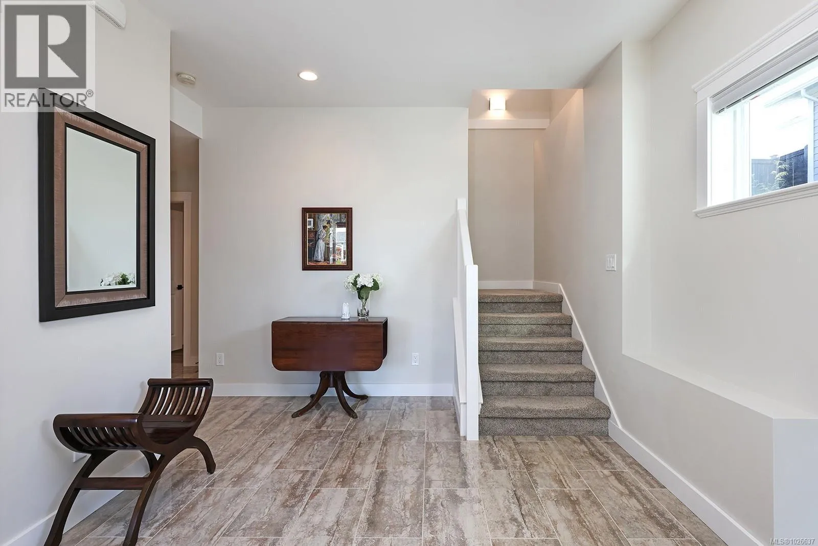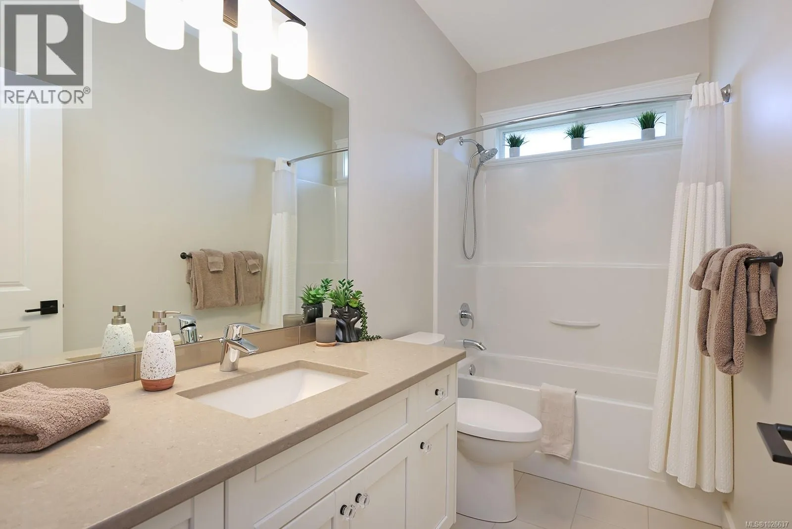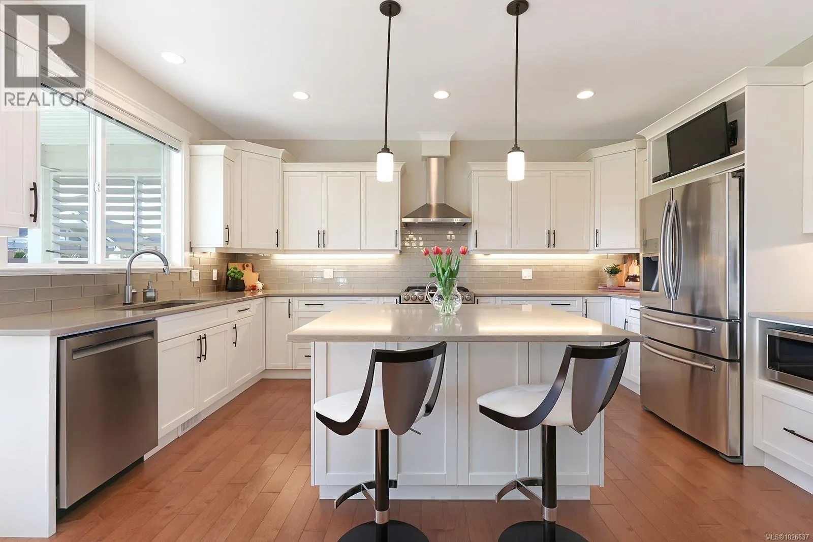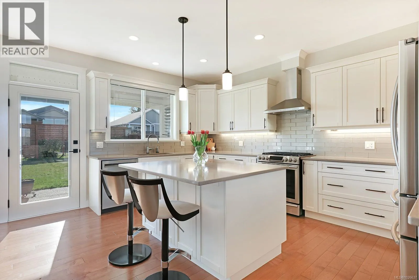 Welcome to 3407 Eagleview Crescent, ideally located in the sought-after Ridge neighbourhoodâsteps to walking trails, minutes to shopping, and surrounded by coastal mountain views. This meticulous custom-built home blends refined living with everyday functionality, offering 4 bedrooms and 3 bathrooms in a thoughtfully designed layout. The bright, open-concept main level is the heart of the home, ft 11-foot ceilings and expansive windows that flood the space with natural light. A cozy gas fireplace anchors the living room, while sliding glass doors open to a covered deck for seamless indoor-outdoor living. The kitchen is designed for entertaining and daily life, showcasing quartz countertops, a contemporary tile backsplash, SS appliances, generous cabinetry, a walk-in pantry, and large island for gathering. The adjoining dining area opens to a private southwest-facing backyard with natural gas hookups for a BBQ and firepit, plus a covered patio for year-round enjoyment. Low-maintenance landscaping includes full irrigation front and back. The primary suite overlooks the backyard and offers a walk-in closet and luxurious ensuite with heated floors, dual vanities, water closet, and a spacious walk-in shower. Two additional bedrooms complemented by a 4-piece bathroom round out the upper level. Downstairs, a versatile flex room provides space for family living, recreation, or guests, along with a fourth bedroom/office and a dedicated laundry area with a separate side entrance for added convenience. Approximately 180 sq ft of partially finished space awaits your creativity, offering potential for a future home gym, wine cellar, workshop, studio, or extended living area. Additional highlights include an oversized double garage, engineered hardwood on the main level, luxury vinyl below, and a high-efficiency heat pump. This well-appointed home delivers versatile living spaces, elevated finishes, and an exceptional setting in one of the areaâs most desirable neighbourhoods. (id:27476)