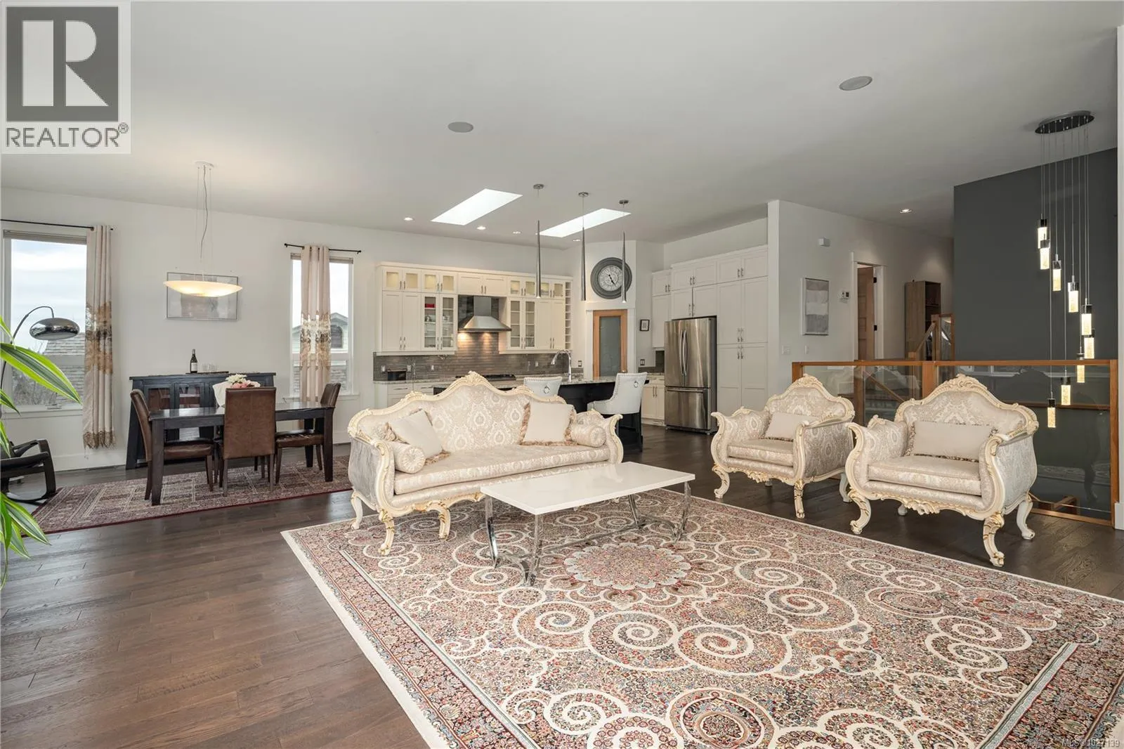 WEST COAST CUSTOM home with timber frame accents and gorgeous mountain views! The main level features an open layout with 11â ceilings, large windows for natural light, and double doors leading to a grand front balcony. The ideal kitchen offers quartz counters, maple shaker cabinets, under-cabinet lighting, a large island, and a walk-in pantry. Upstairs are 3 bedrooms, including a primary suite with private deck, walk-in closet, and spa-like ensuite, plus a 5-piece main bath and laundry. The lower level offers a large media room, 4th bedroom, full bath, and rough-ins for a second laundry and kitchenâsuite potential! The nearly 1,000 sqft garage includes a workshop area, benches, and storage. Extras: heat pump, fir doors, built-in speakers, room for RV/boat parking, and great gardening space in a top school catchment. A west coast jewel with space, style, and views! (id:27476)