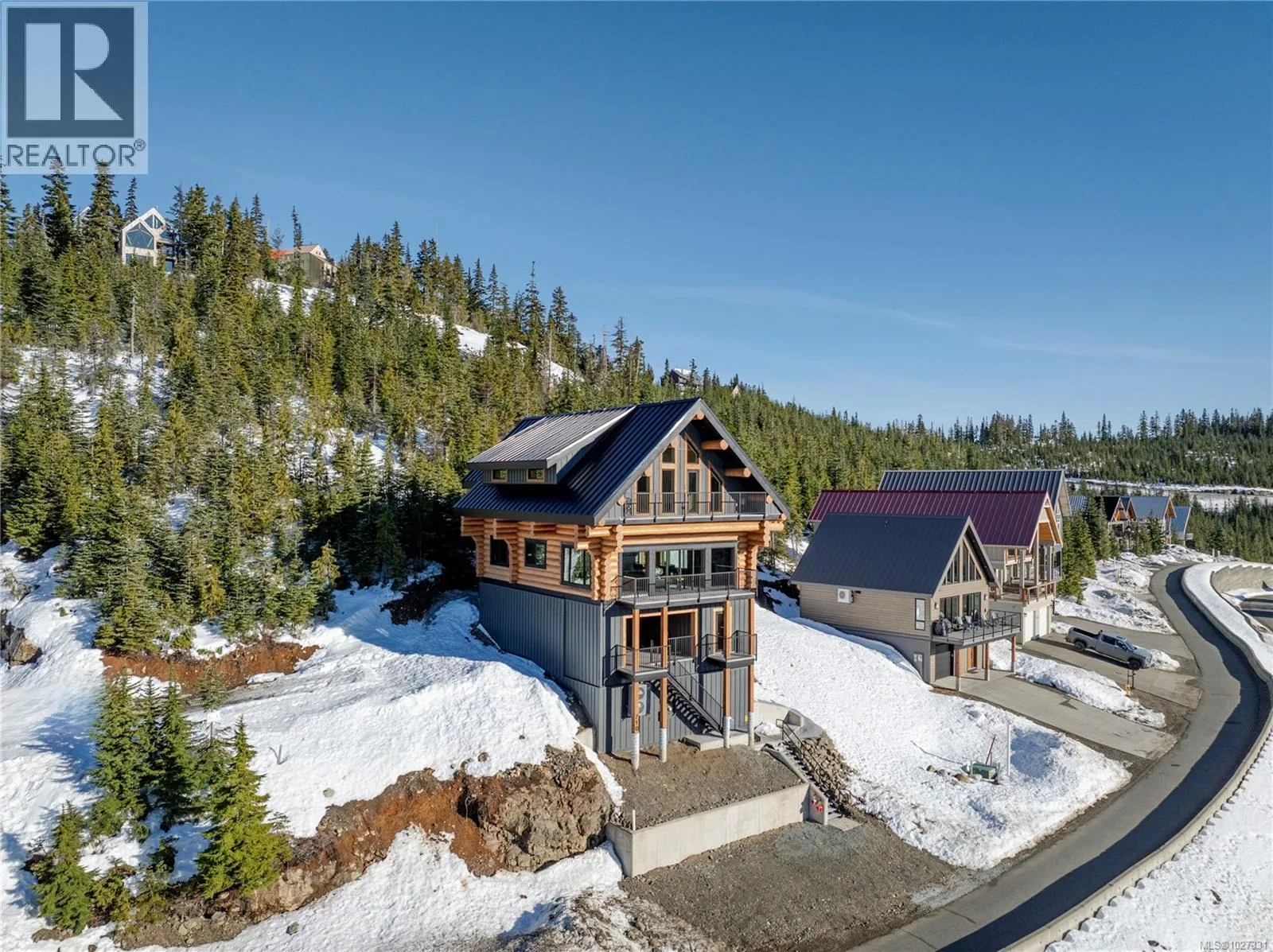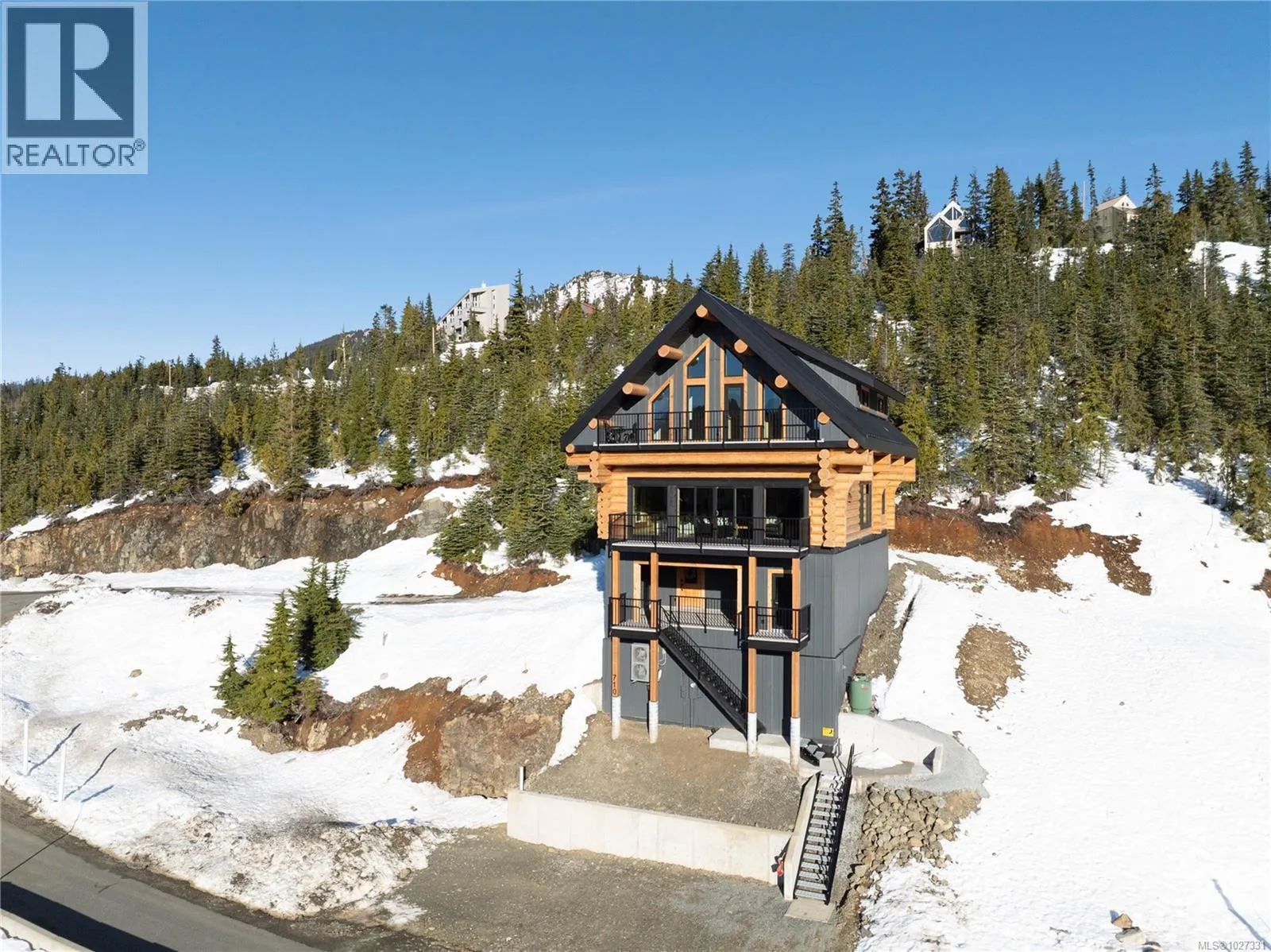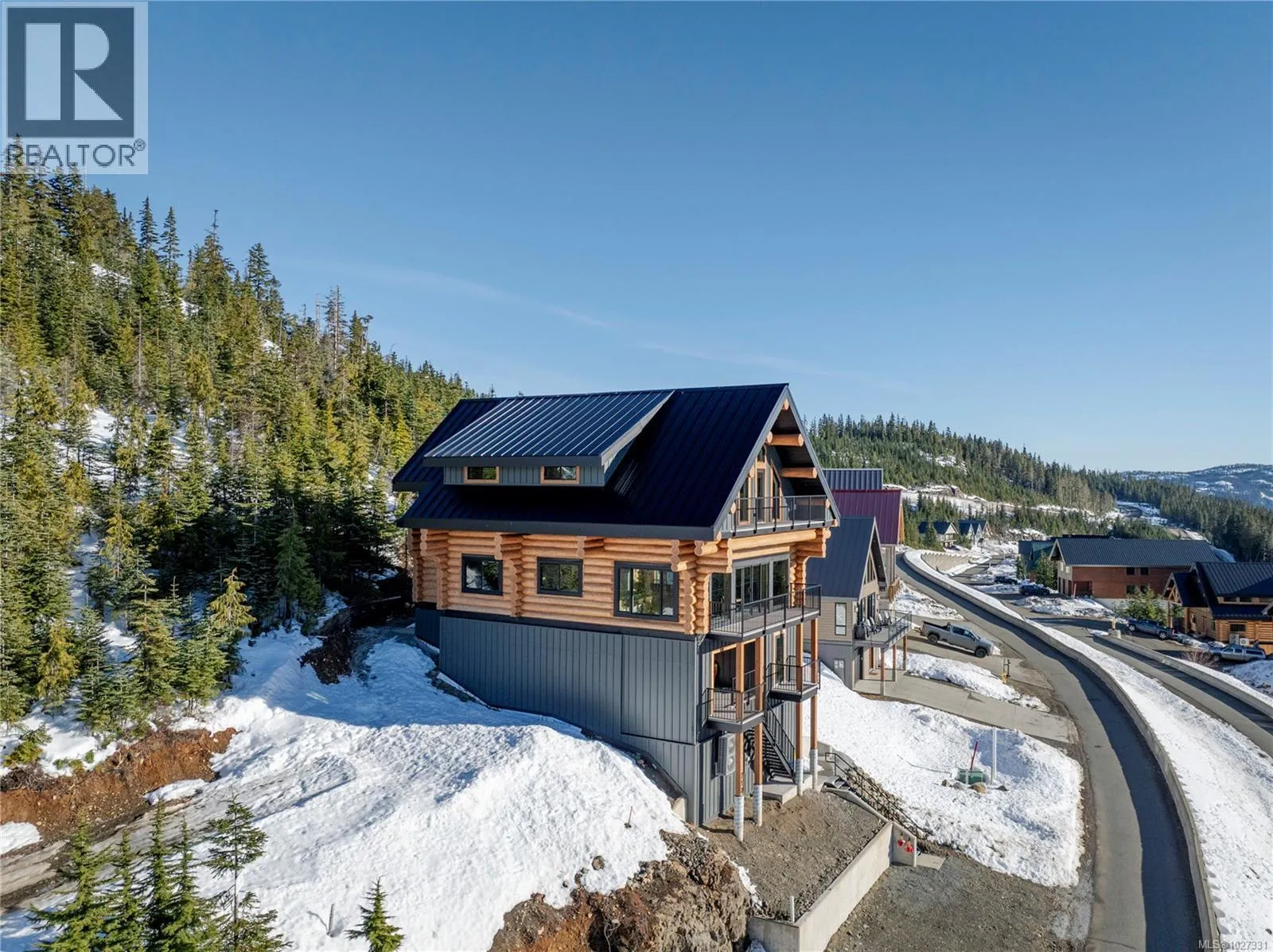 Introducing 710 Arrowsmith Ridge - a 5 bedroom, 4 bathroom custom log chalet in Beaufort Heights on Mount Washington! This Norse-built & designed masterpiece is rustic & warm with a timeless, unique look that buyers will enjoy for years. The handcrafted logs provide one-of-a-kind character you won't get from typical chalets around. Inside you will find a ski family-friendly lower entry with storage areas, a hot tub prepped ready deck, a games room with sauna, crawl, bathroom & bedroom. There's even a little hide-out area for kids to read and play games. There is potential to add a guest suite! The main has another entry & offers a primary bedroom, bathroom w/ laundry, a full, bright quartz kitchen with custom cabinetry. This opens to a spacious dining space with a cozy living area & a towering floor to ceiling rock fireplace, vaulted ceiling with an attractive cat-walk above, including deck access to take in the outstanding mountain range views. Upper level hosts 3 more spacious bedrooms with lots of bed space, full bathroom & another deck from the cat-walk to more breathtaking views. The engineering, craftsmanship and site prep is second to none, and best on the mountain! Hardwood throughout, heated tile floors in all bathrooms, & an efficient heat pump for year-round comfort! Easy access to skiing & Strathcona Park, right across the street. Take a look at this unique property before someone else calls this one their home! (id:27476)