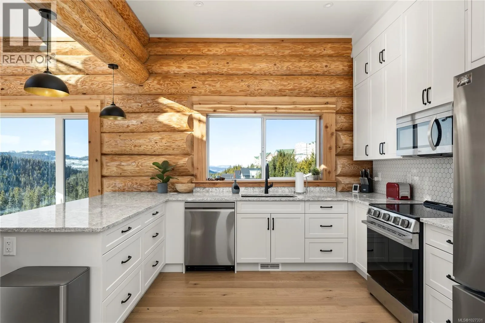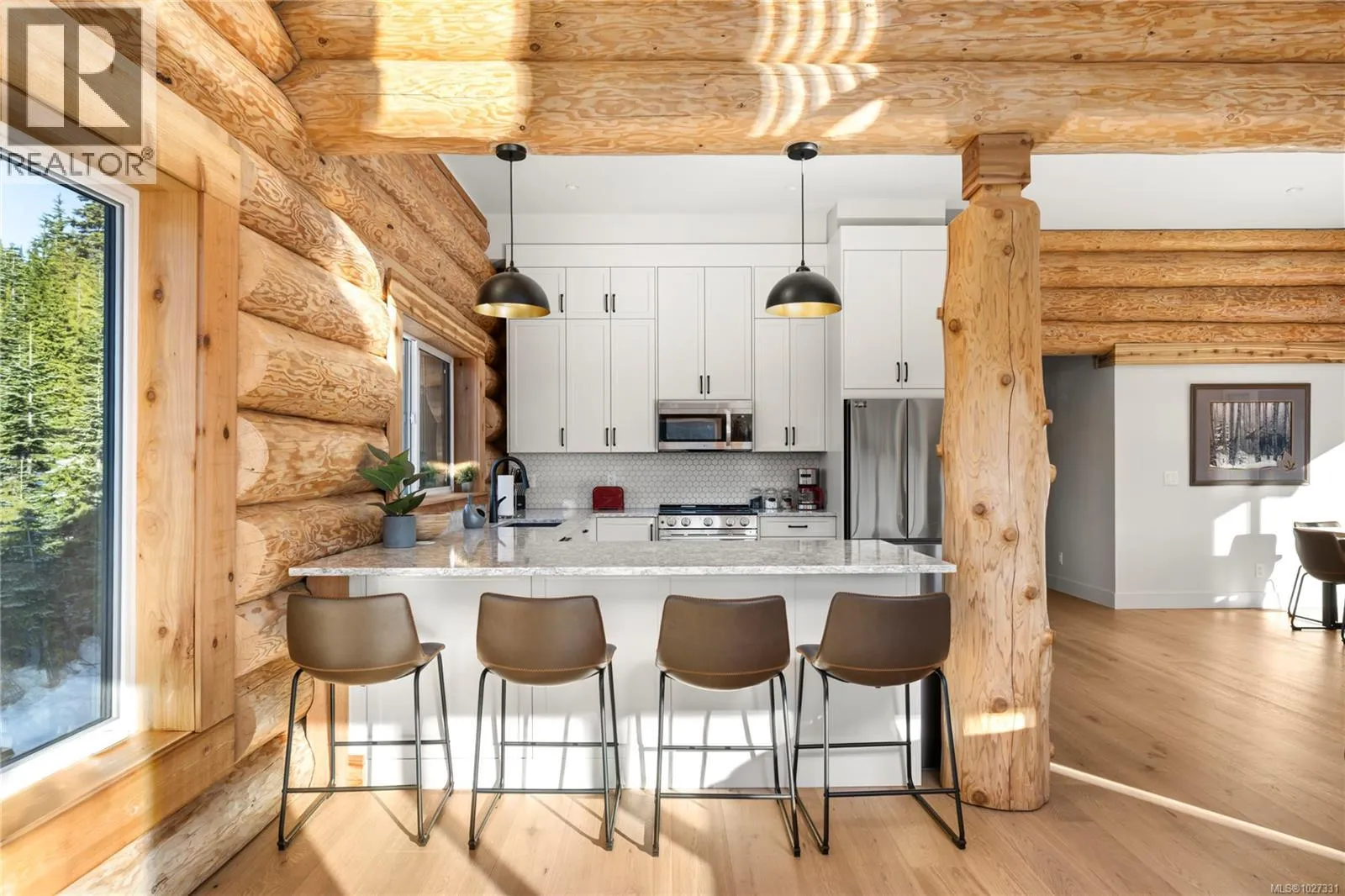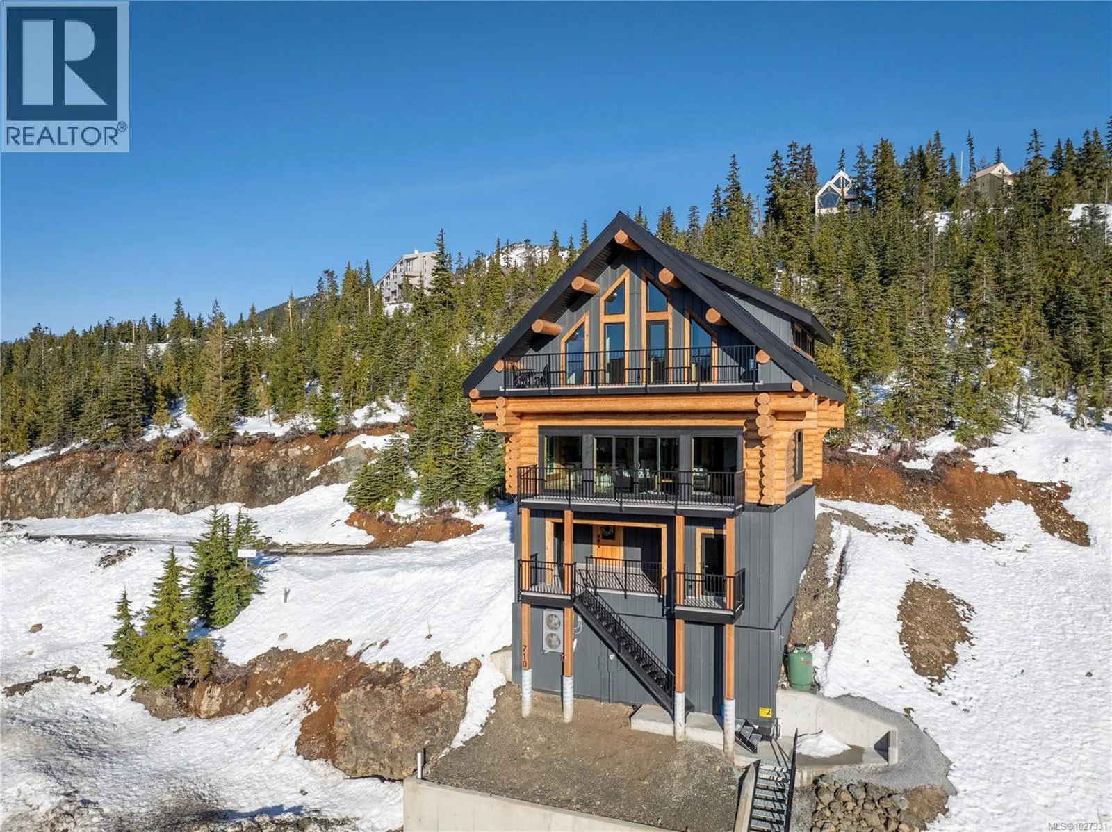 Introducing 710 Arrowsmith Ridge - a 5 bedroom, 4 bathroom custom log chalet in Beaufort Heights on Mount Washington! This Norse-built & designed masterpiece is rustic & warm with a timeless, unique look that buyers will enjoy for years. The handcrafted logs provide one-of-a-kind character you won't get from typical chalets around. Inside you will find a ski family-friendly lower entry with storage areas, a hot tub prepped ready deck, a games room with sauna, crawl, bathroom & bedroom. There's even a little hide-out area for kids to read and play games. There is potential to add a guest suite! The main has another entry & offers a primary bedroom, bathroom w/ laundry, a full, bright quartz kitchen with custom cabinetry. This opens to a spacious dining space with a cozy living area & a towering floor to ceiling rock fireplace, vaulted ceiling with an attractive cat-walk above, including deck access to take in the outstanding mountain range views. Upper level hosts 3 more spacious bedrooms with lots of bed space, full bathroom & another deck from the cat-walk to more breathtaking views. The engineering, craftsmanship and site prep is second to none, and best on the mountain! Hardwood throughout, heated tile floors in all bathrooms, & an efficient heat pump for year-round comfort! Easy access to skiing & Strathcona Park, right across the street. Take a look at this unique property before someone else calls this one their home! (id:27476)