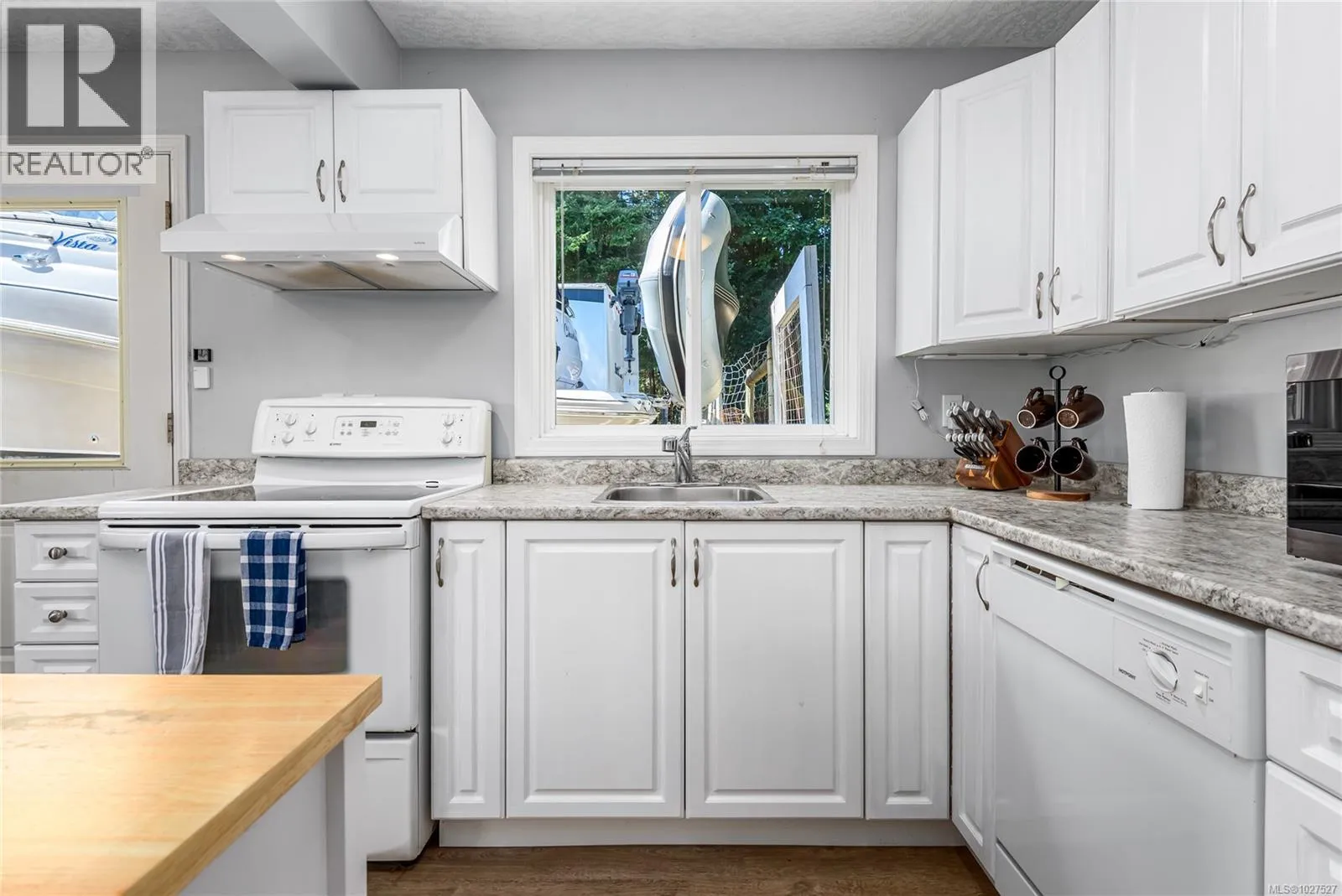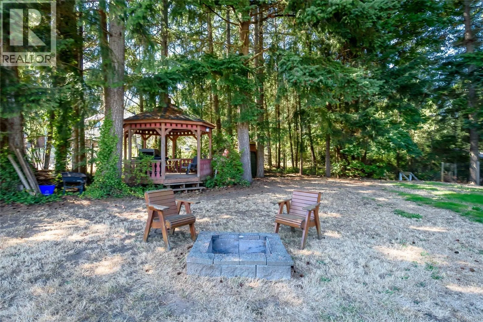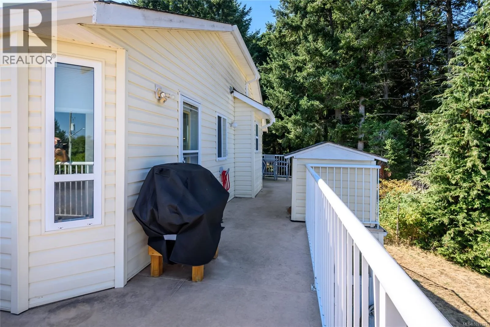 Corner lot, 0.44 acres, positioned in a semi-rural neighbourhood north of Comox with Seal Bay Park's trail system and local beaches within a 5-minute walk. The home sits directly across from open field and mature treed area, delivering unobstructed natural views from the living room, front windows, and upper deck throughout the year, with peekaboo ocean views in the distance. Two separate driveways access the property from different roads, with dedicated RV and boat parking, a practical advantage that corner lots in this area rarely offer. The upper level contains the main living and dining areas, a gas fireplace serviced in January 2026, and large windows that bring consistent natural light into the main living spaces. The kitchen features updated cabinets, recently installed stainless steel appliances, and a functional counter layout with adequate prep and storage space. The roof was fully replaced in 2025 by Harder Roofing using 25 year fiberglass shingles with a 10 year labour warranty. Additional recent upgrades include master bath flooring (2025), main floor flooring in the master bedroom, front entry, and laundry room (2024), a new water heater installed by Dales Plumbing (2024), five windows replaced by Van Isle Windows (2023), and a septic service and inspection completed in 2025. Whole house PEX plumbing replaced poly B in 2014. The lower level includes a non-conforming suite with a separate exterior entrance, dedicated driveway, den with a second gas fireplace, and private in suite laundry. The fully fenced backyard includes a gazebo, fire pit area, and a covered workshop beneath the side deck providing year round sheltered space for tools, equipment, or hobbies. R-1 zoning permits a secondary dwelling up to 90 m², subject to CVRD approval and building permits. Ten minutes to Comox, Costco, Crown Isle, Comox Valley Hospital, the airport, and everyday services. Seller offering a $5,000 decorating allowance on completion. (id:27476)