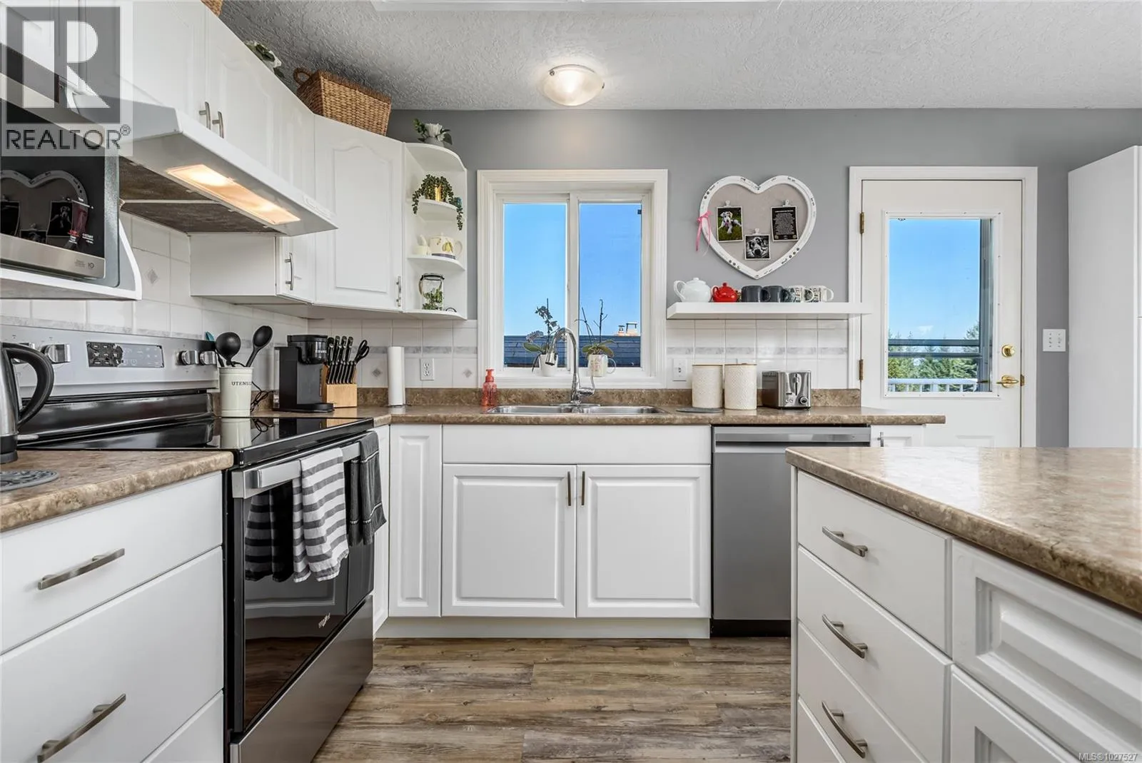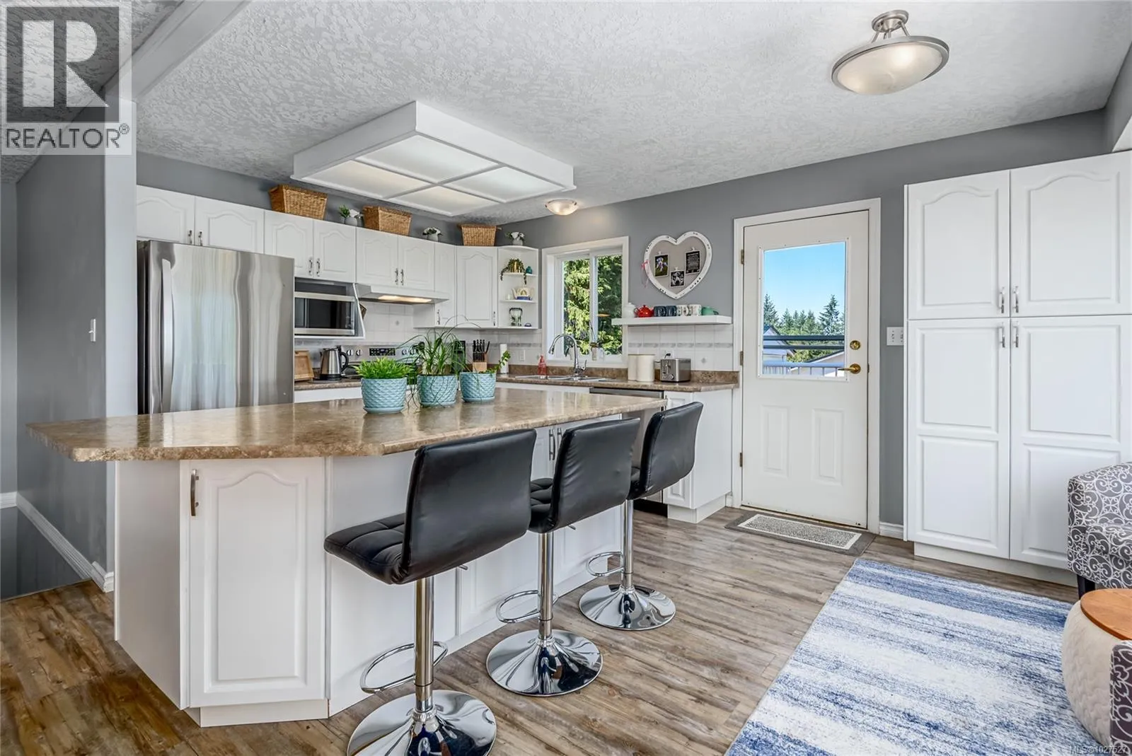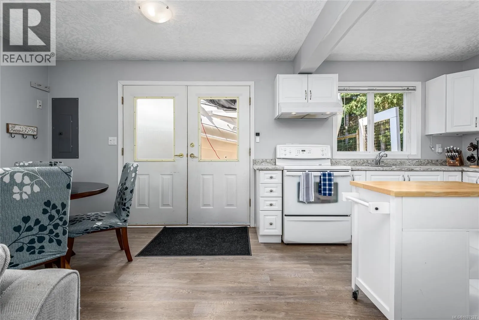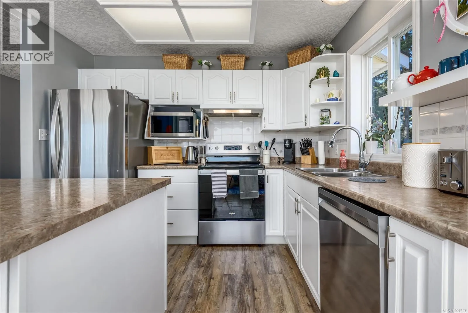 Corner lot, 0.44 acres, positioned in a semi-rural neighbourhood north of Comox with Seal Bay Park's trail system and local beaches within a 5-minute walk. The home sits directly across from open field and mature treed area, delivering unobstructed natural views from the living room, front windows, and upper deck throughout the year, with peekaboo ocean views in the distance. Two separate driveways access the property from different roads, with dedicated RV and boat parking, a practical advantage that corner lots in this area rarely offer. The upper level contains the main living and dining areas, a gas fireplace serviced in January 2026, and large windows that bring consistent natural light into the main living spaces. The kitchen features updated cabinets, recently installed stainless steel appliances, and a functional counter layout with adequate prep and storage space. The roof was fully replaced in 2025 by Harder Roofing using 25 year fiberglass shingles with a 10 year labour warranty. Additional recent upgrades include master bath flooring (2025), main floor flooring in the master bedroom, front entry, and laundry room (2024), a new water heater installed by Dales Plumbing (2024), five windows replaced by Van Isle Windows (2023), and a septic service and inspection completed in 2025. Whole house PEX plumbing replaced poly B in 2014. The lower level includes a non-conforming suite with a separate exterior entrance, dedicated driveway, den with a second gas fireplace, and private in suite laundry. The fully fenced backyard includes a gazebo, fire pit area, and a covered workshop beneath the side deck providing year round sheltered space for tools, equipment, or hobbies. R-1 zoning permits a secondary dwelling up to 90 m², subject to CVRD approval and building permits. Ten minutes to Comox, Costco, Crown Isle, Comox Valley Hospital, the airport, and everyday services. Seller offering a $5,000 decorating allowance on completion. (id:27476)