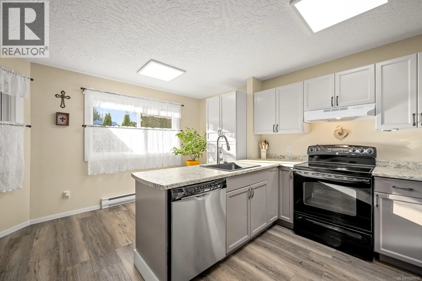 This family home has been meticulously maintained and regularly updated, creating spaces that are welcoming and easy to live in. On the main level, your attention will be on the updated kitchen with freshly painted cabinets, new countertops, upgraded light fixtures and hardware. The attached garage provides convenient parking and additional storage. The stairwell showcases an extraordinary feature wall and leads upstairs to the large primary bedroom and updated ensuite. Two more bedrooms and a second updated bathroom complete the upper level. New windows and flooring throughout the home, and Poly-B has been replaced for the added peace of mind. Outside, the covered deck can be enjoyed in the fully fenced backyard, overlooking gardens filled with cherry trees, lilacs, raspberries, and grape vines. Located in the desirable Puntledge Park neigbourhood, this 3-bed, 3-bath half-duplex provides easy access to trails, parks, tubing and schools. Call your Realtor for a full list of improvements - Available on request! (id:27476)