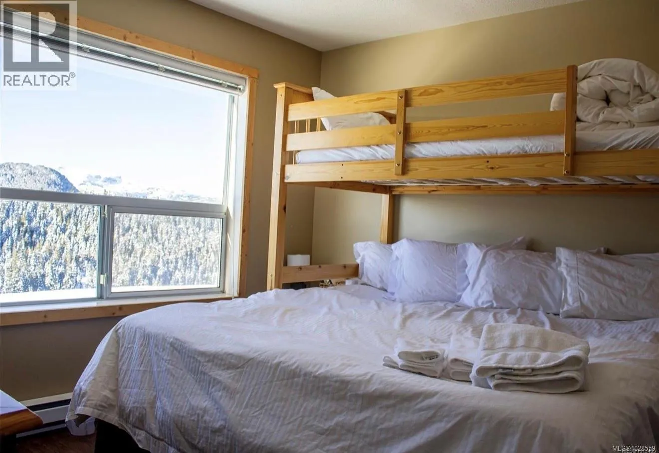 Enjoy stunning, unobstructed views of Strathcona Park from this inviting alpine retreat in Ptarmigan Ridge at Mt. Washington Alpine Resort. This bright 600 sq. ft. one-bedroom condo is ideally located on the ground floor, offering easy access in an elevator-free building. Large windows fill the open living space with natural light while showcasing beautiful sunrise views over the mountains. The functional kitchen includes a convenient pantry and opens to the comfortable living area, complete with a cozy fireplace to warm up after a day on the slopes. The building exterior has been recently updated with durable metal and Hardi-plank siding. Owners also have access to shared storage and a ski tuning area. Just a short walk to the lifts, this location offers fantastic year-round recreation with hiking and exploring nearby in Strathcona Park, while the Comox Valley is only a scenic 30-minute drive away. Low strata fees, no GST, and the leasehold titled unit comes fully furnished. (id:27476)