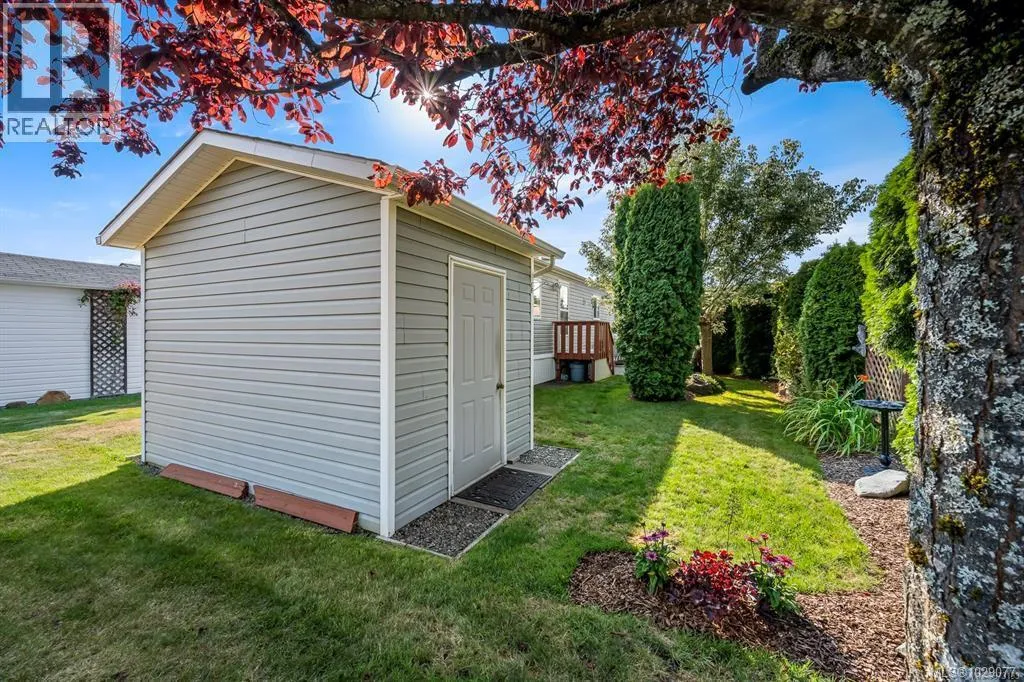 Welcome to Valley Vista Estates, a well managed, gated 55+ community in one of East Courtenay's most desirable locations. This bright and beautifully maintained 920 sq ft modular home built in 2000 offers everything you need to enjoy the easy Comox Valley lifestyle. Step inside to find an open and airy layout with the living space and a cheerful kitchen with breakfast nook at the heart of the home. Bedrooms are thoughtfully placed at opposite ends for privacy, with the spacious primary featuring a 3 piece ensuite with a new walk in shower & toilet, ideal for aging in place. The second bedroom and full main bathroom, complete with a new tub/shower, sit at the other end. You will appreciate the ample storage and cabinet space throughout, along with a good sized laundry room that makes daily life a breeze. Updated appliances and new carpets round out the interior upgrades, making this one truly move in ready. Outside, a well maintained private yard and 7'x8.5' storage shed with power, offer the perfect balance of relaxation and room to putter in the garden. Valley Vista Estates is a pet friendly community with a clubhouse, RV storage and a welcoming, active atmosphere, and residents enjoy the security and peace of mind that comes with gated living in a quiet, friendly, and well run park. The location is hard to beat, just minutes from the new hospital, Costco, golf courses, the pool, shopping, and a short drive to the Comox Valley Airport. Forced air heating and air conditioning keep you comfortable year round. If you are looking for comfort, convenience, and community in the Comox Valley, this home checks every box. Just move in and enjoy. (id:27476)