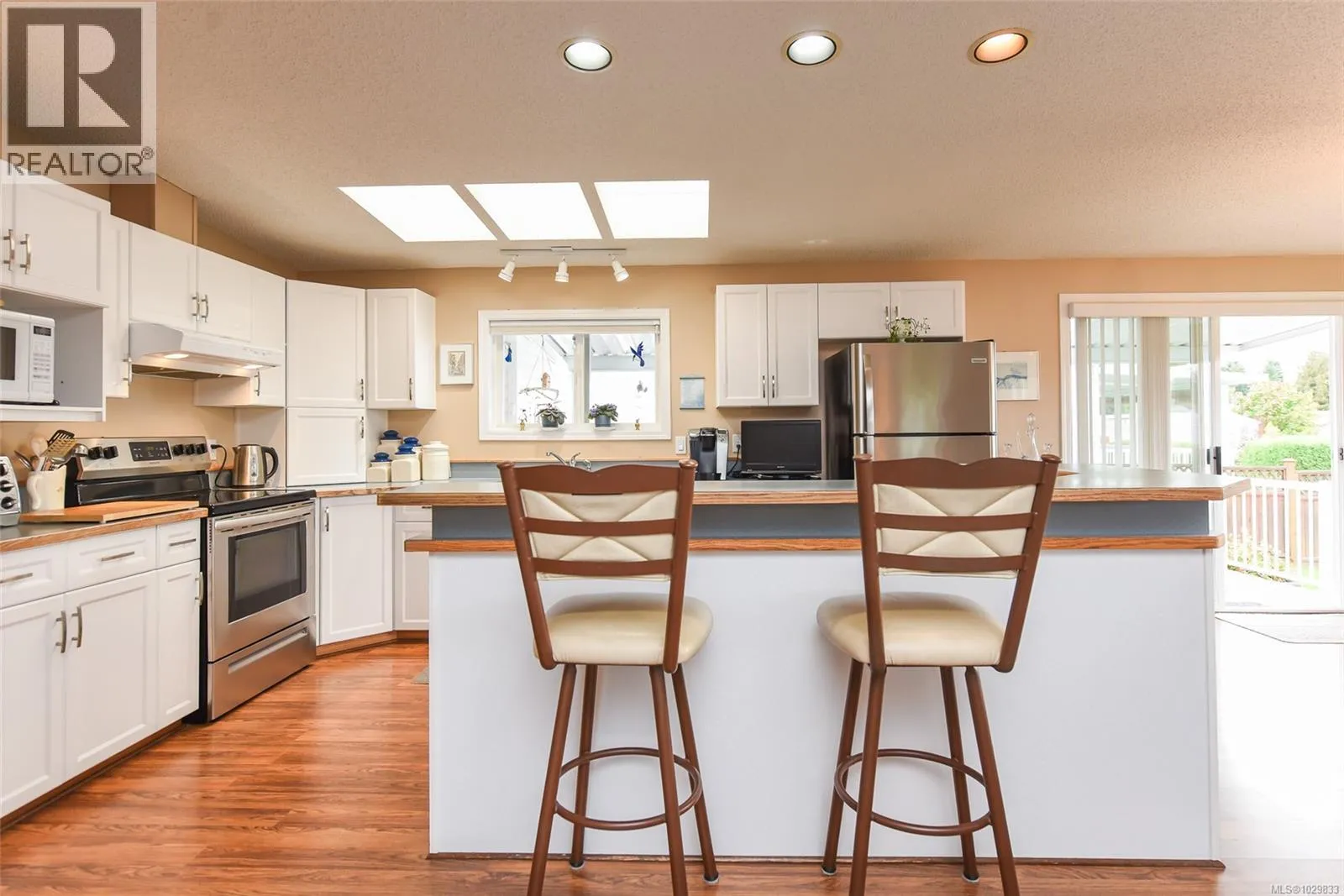 The only one with views of the Comox Glacier & Beaufort Range like this. A custom-upgraded home that is flooded with natural light from skylights and oversized windows, along with a gas fireplace, vaulted ceilings and ample counter space, this home feels spacious & inviting. Step out to a 300sqft covered deck and fully fenced yard with producing pear & apple trees. Upgrades and extras include Poly-B replaced, heat pump (grandfathered in under new bylaw), covered carport, workshop, concrete wrap-around walkway & an optional RV parking agreement. The park is pet-friendly, offers a clubhouse and is close to the hospital & airport. This home has everything that you need to live the easy Comox Valley lifestyle. (id:27476)