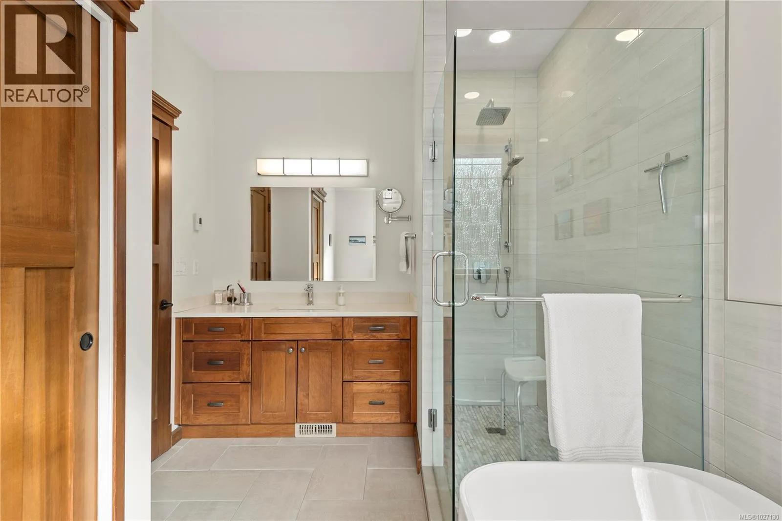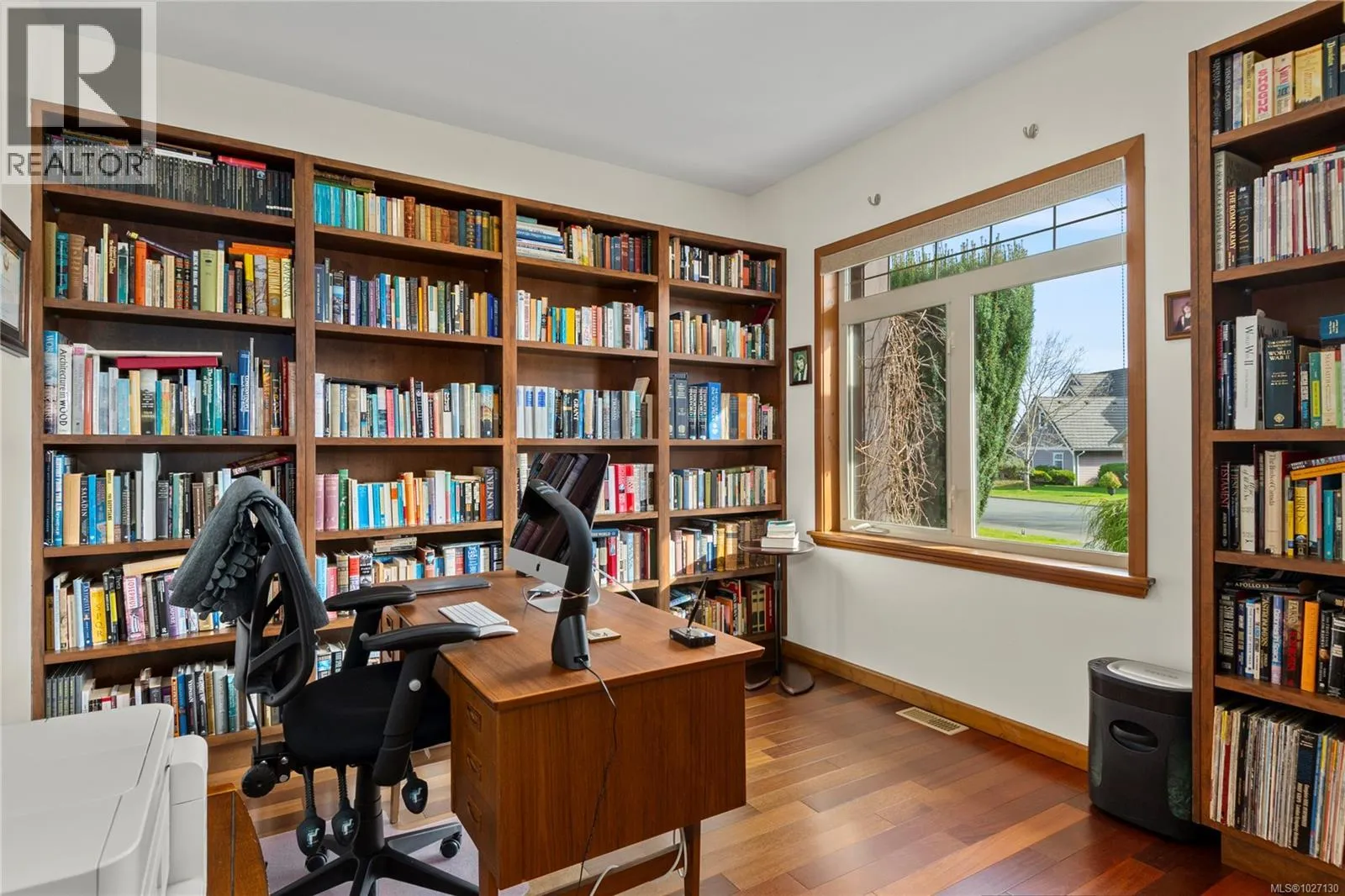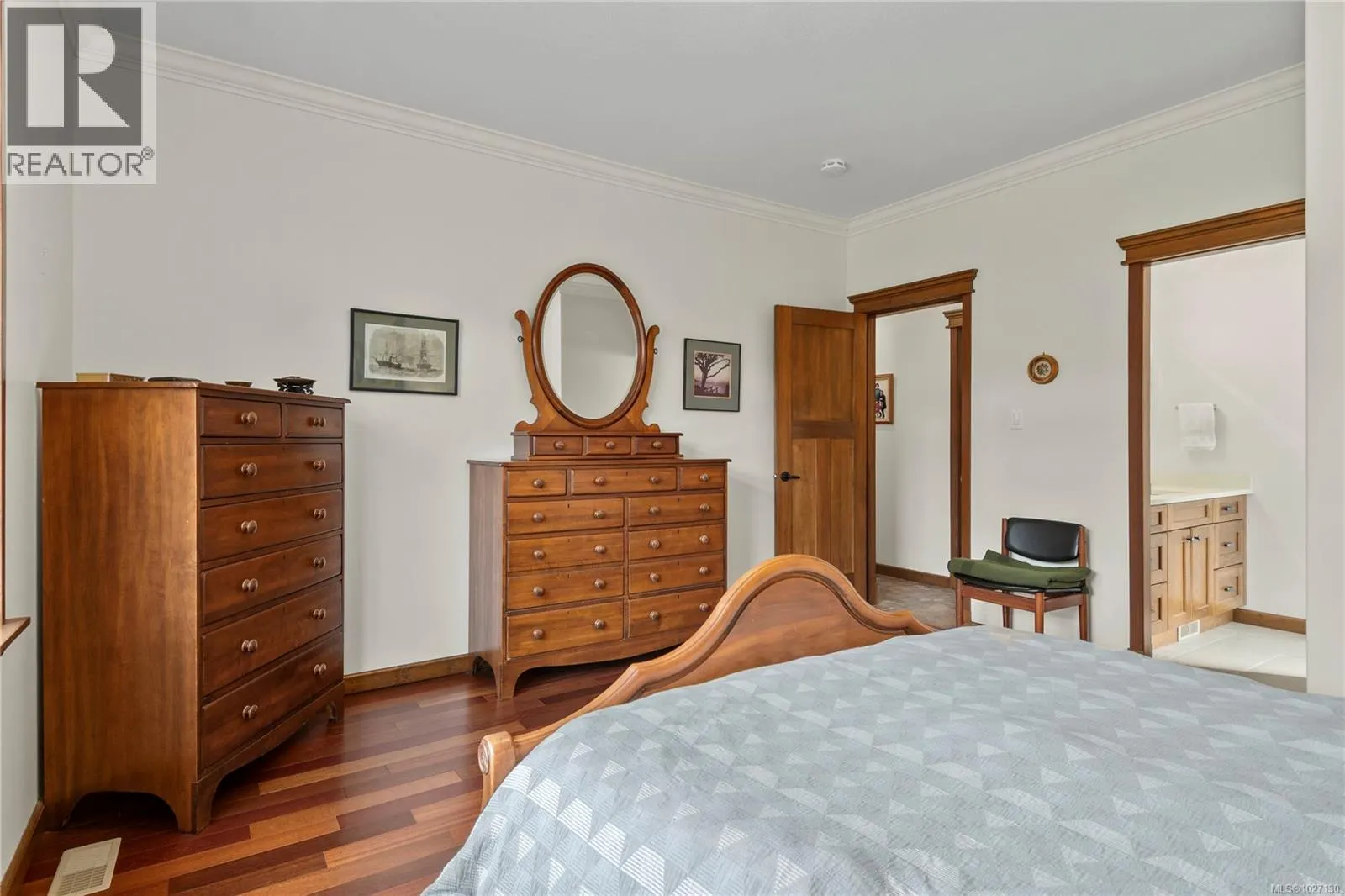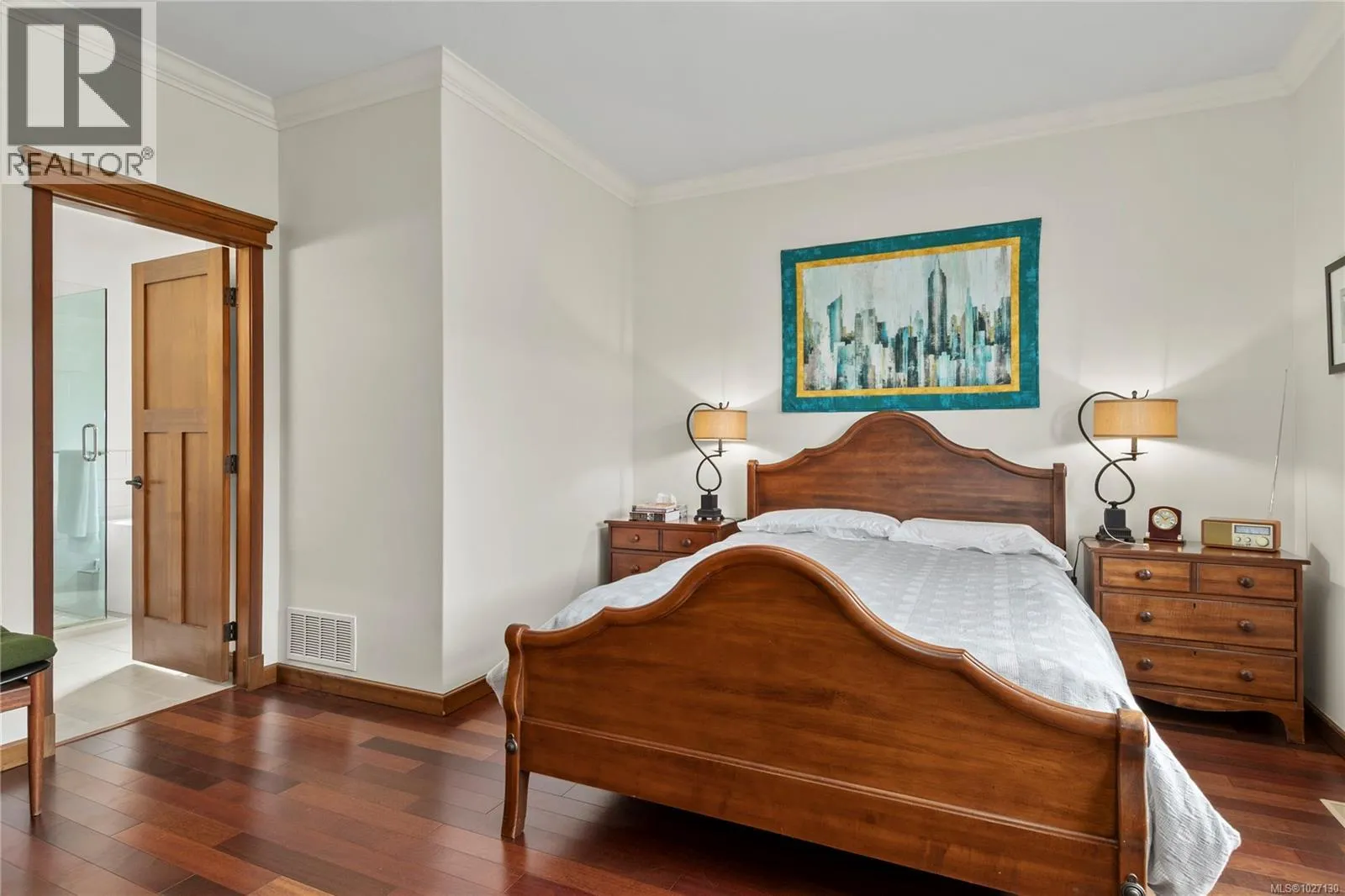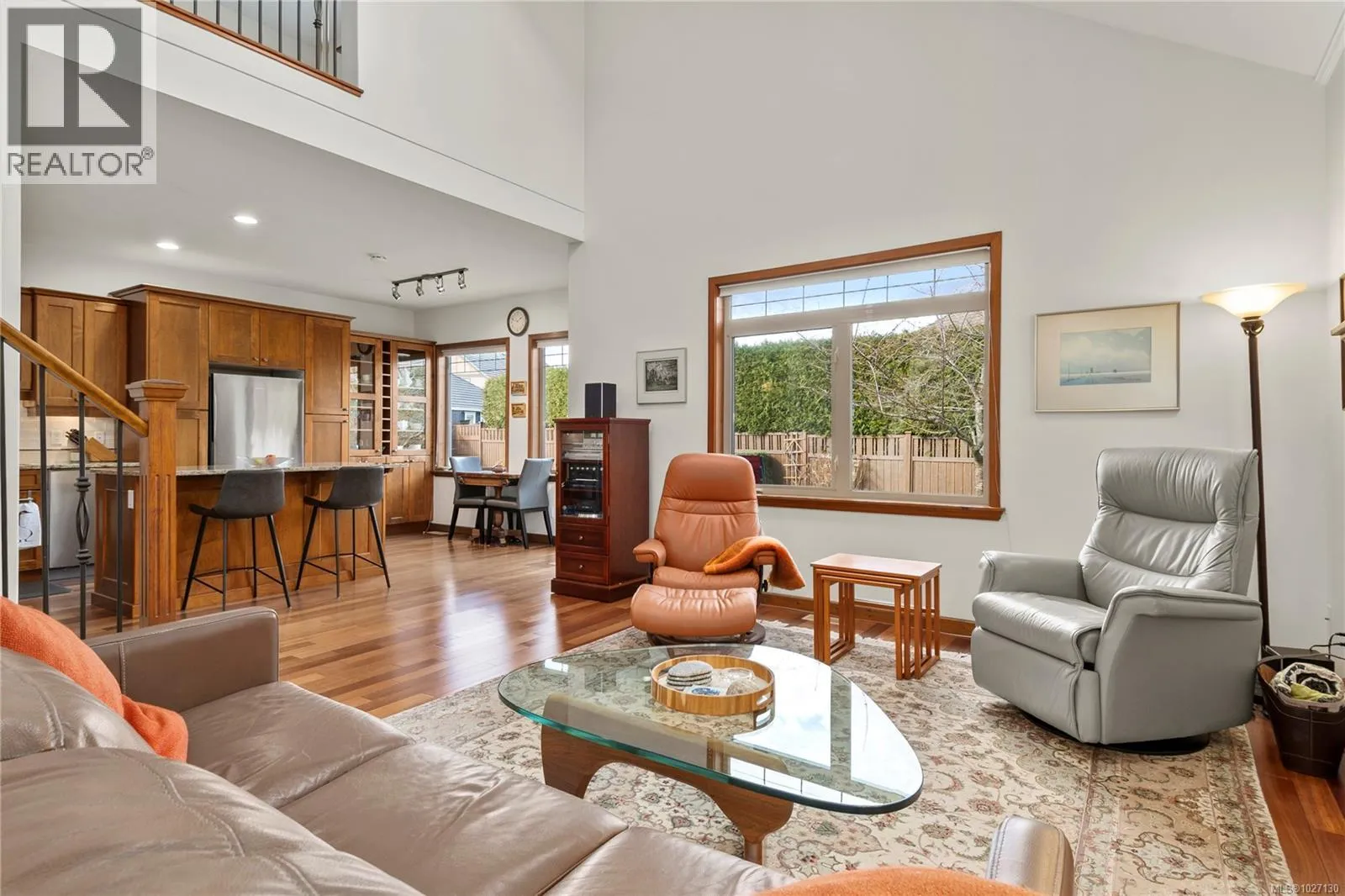 Tucked away on a quiet, desirable street, this beautifully crafted Dragonfly-built home offers a perfect blend of timeless design and modern comfort. From the moment you step inside, youâre greeted by a grand, welcoming entry with vaulted ceilings, rich Brazilian cherry hardwood floors, and an open-concept living space designed for both everyday living and entertaining. The living room is anchored by a beautiful gas fireplace with a striking river rock surround. The main-level primary suite is a true retreat, featuring a spa-inspired ensuite (renovated in 2018) with a luxurious soaker tub, separate tiled shower, and walk-in closet. Upstairs provides an ideal space for guests or extended family, complete with a spacious bedroom, full 4-piece bath, and a cozy family room that opens onto a private deck overlooking the fully fenced backyard. Thoughtful details like natural wood doors add warmth and character throughout the home, while practical features include an oversized double garage, abundant storage, and a well-built garden shed set within a sunny, south-facing yard. Major system updates bring peace of mind, including a gas furnace and central A/C replacement in 2020. Located just minutes from walking trails, golf, and everyday amenities, this immaculately maintained home offers the perfect balance of lifestyle and location. (id:27476)