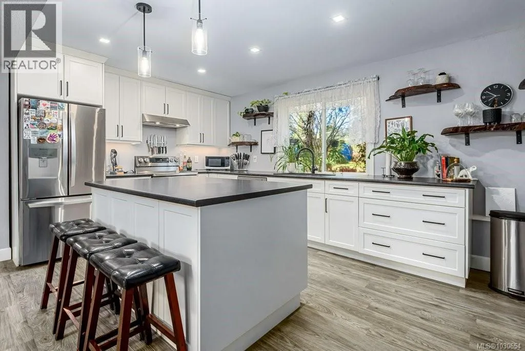 This thoughtfully updated home offers exceptional space, flexibility, and peace of mind with extensive upgrades throughout. The main level features a bright open-concept living area with 3 bedrooms and 1.5 bathrooms, ideal for comfortable everyday living. Downstairs, a fully self-contained 1-bed, 1-bath in-law suite features an oversized bedroom, a dedicated office, and wheelchair-accessible designâperfect for extended family, guests, or flexible living arrangements. Major renovations completed in 2021 include a heat pump, upgraded electrical panel sized to support matching appliances in both suites, updated trim, doors, baseboards, lighting, flooring, hardware, and heaters. Additional improvements include a walk-in closet, enclosed carport with barn doors, perimeter drain upgrades, a new hydro line and pole, and a septic pump and clean-out completed in 2026. Located within the desirable Huband Park Elementary School catchment, this property is close to schools, parks, everyday amenities, and offers easy access to the stunning Seal Bay trail systemâideal for walking, biking, and enjoying nature year-round. (id:27476)