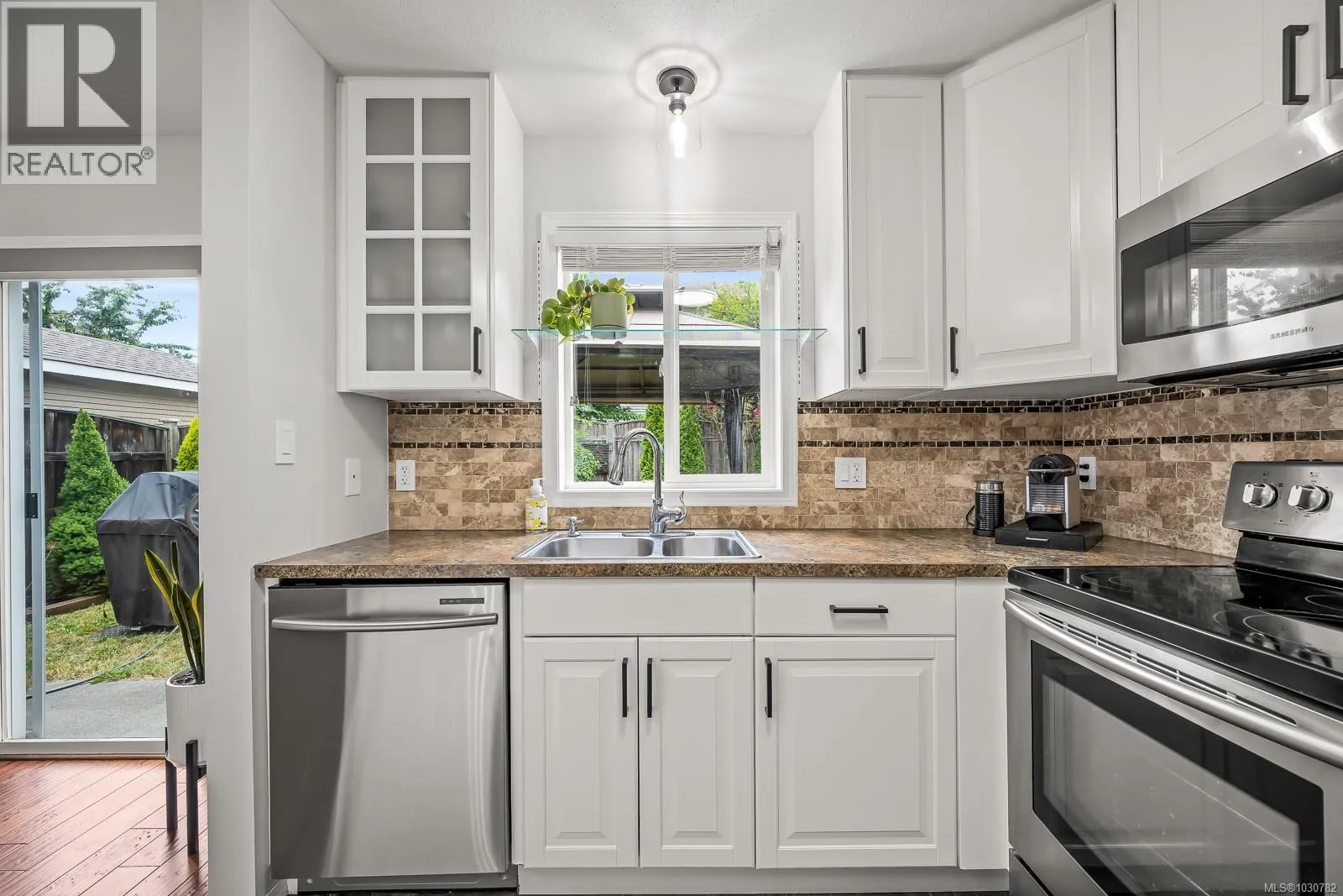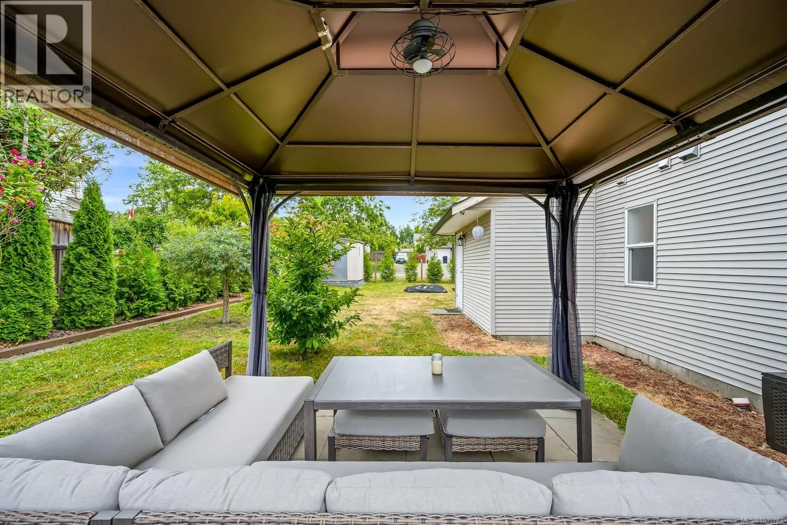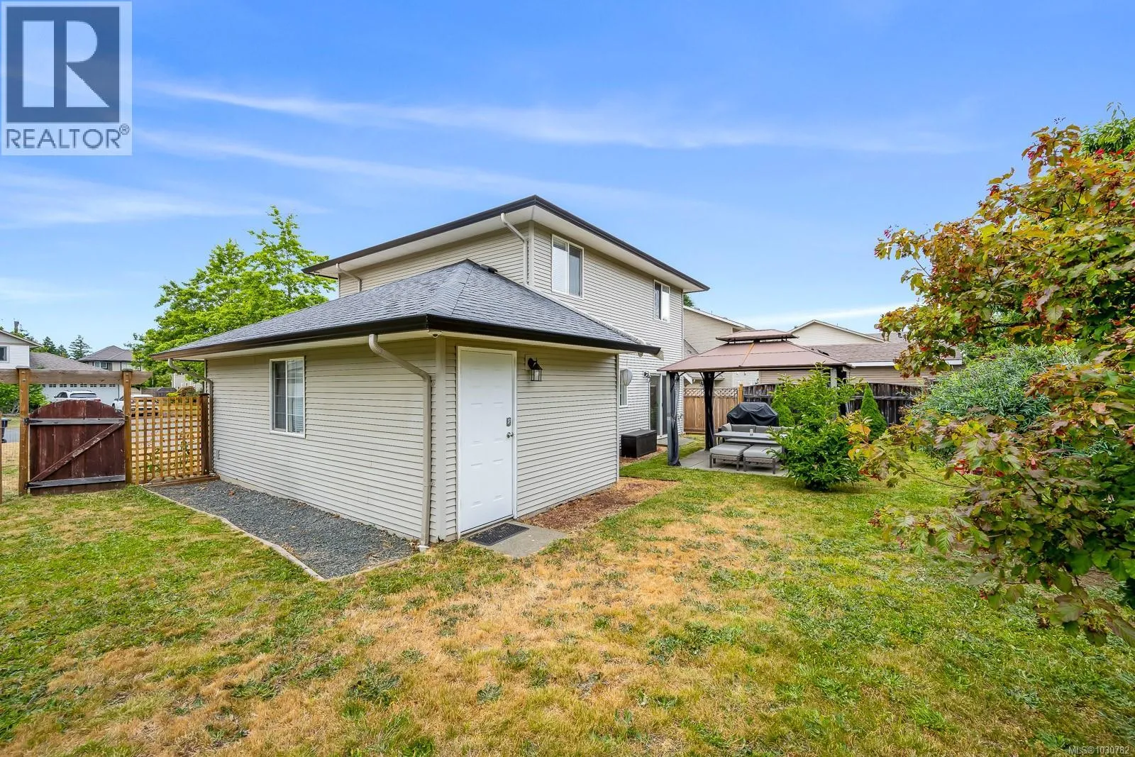 Embrace outdoor living this spring and summer! Nestled on a quiet Courtenay East cul-de-sac, this bright and airy family home features a spectacularly sunny, south-facing backyard. Host friends on the spacious 17' x 11' patio, relax in the shade of the gazebo, and enjoy your private summer retreat. Inside, you'll love the updated, highly functional kitchen, engineered wood and tile floors, and a cozy gas fireplace. All three bedrooms are upstairs, including a primary suite with cheater access to a luxurious soaker tub. The garage is a hobbyist or gardener's dream, complete with a double sink and ample cabinetry. Perfectly located walking distance to the Courtenay Greenway, Crown Isle, the new hospital, and schools. A brand-new 30-year roof (Sept 2025) offers total peace of mind. Fire up the BBQ and move right in! (id:27476)