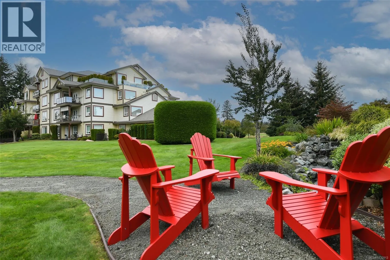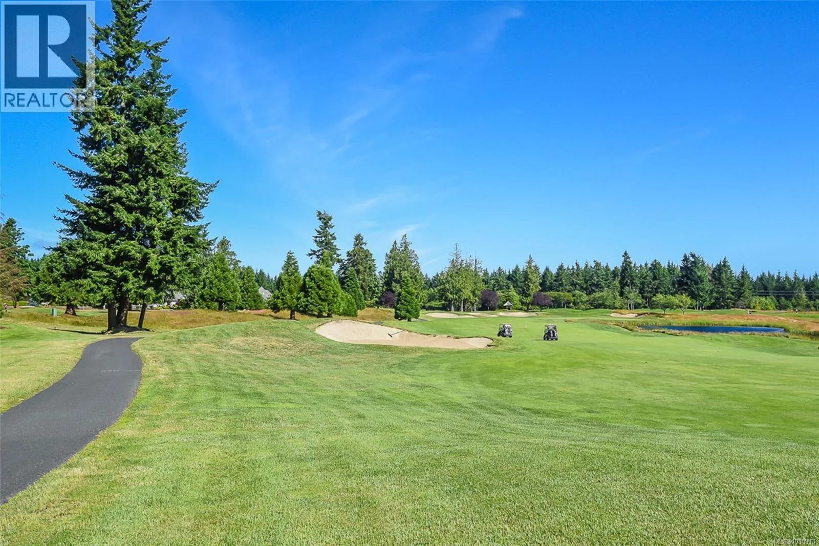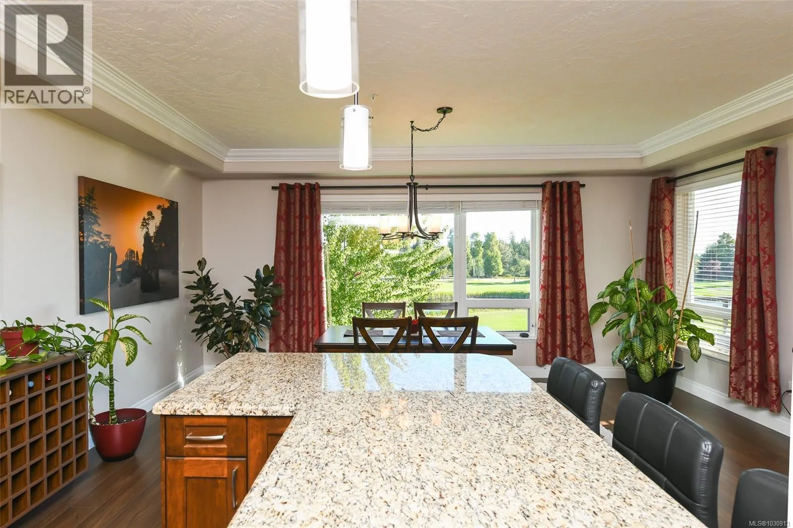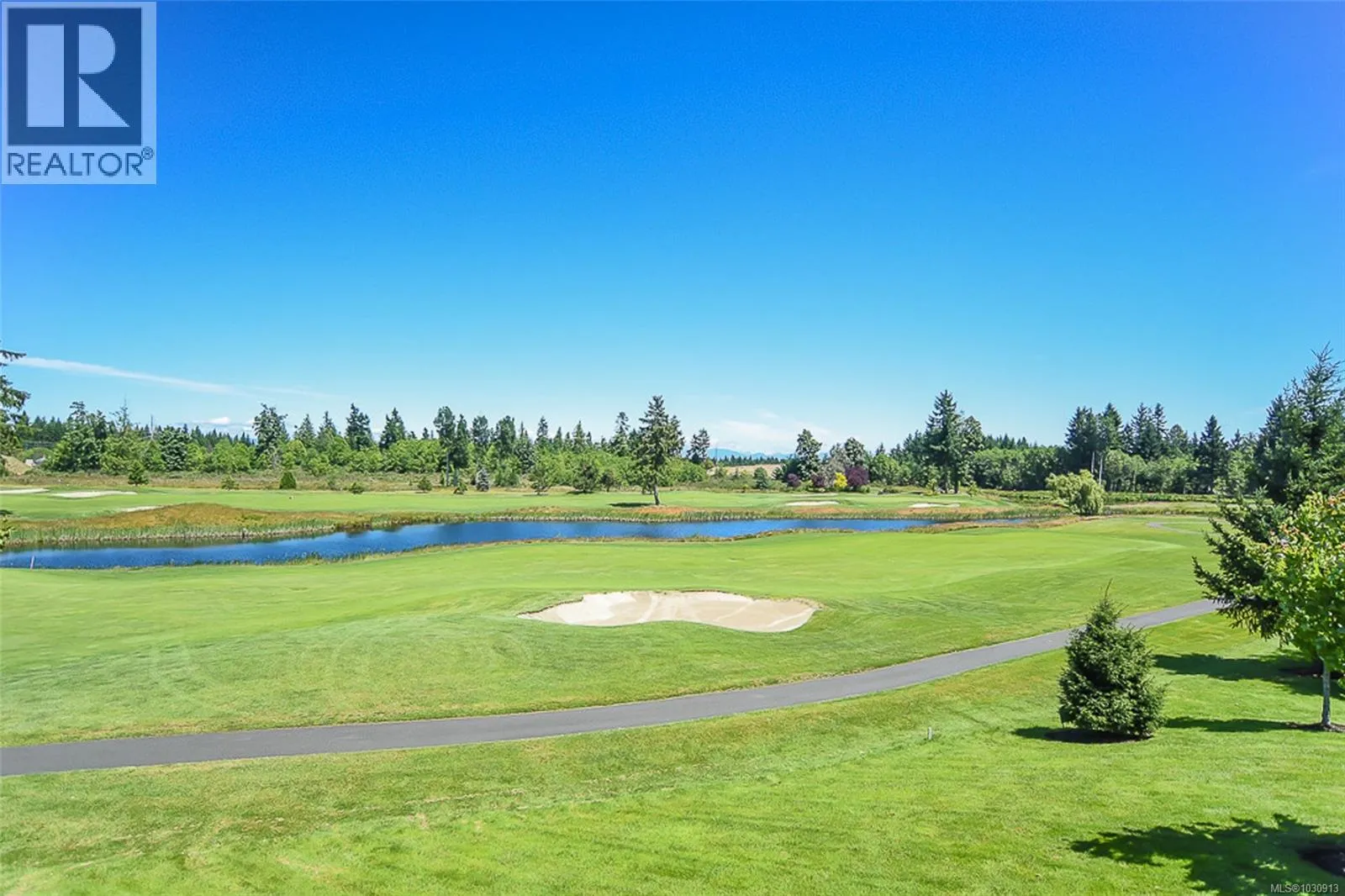 Sunrise views and coastal mountain vistas stretch across the 3rd, 4th and 5th fairways, creating a stunning backdrop for everyday living. Welcome to Corinthia Estates at Crown Isle Golf Resort, where luxury finishes and a relaxed, easy-care lifestyle come together beautifully. This 1753 sq ft corner unit offers 2 bedrooms plus a den and 2 bathrooms, with expansive windows that fill the home with natural light. The thoughtful layout begins with a welcoming entry and a separate den or office, enhanced by glass block detailing that allows light to flow through the spaceâideal for working from home or quiet reading. The wider hallway opens into a bright and inviting great room, where an ambient gas fireplace creates warmth and comfort in the cooler months, while air conditioning ensures year-round comfort. The open-concept design is perfect for entertaining, anchored by a gourmet kitchen featuring stainless steel appliances, rich maple shaker cabinetry, granite countertops, and a large L-shaped island with seating. Step outside to the covered deck to enjoy morning coffee or evening cocktails, complete with a natural gas BBQ hookup and peaceful golf course views. The spacious primary bedroom offers a true retreat, with a large closet with the added convenience of stacking laundry, and a generous ensuite featuring heated slate tile flooring, a tiled shower, and a relaxing multi-jet system. A second bedroom and full bath provide flexibility for guests. Additional features include commercial-grade laminate flooring, crown moulding, and stepped ceilings that add character throughout. Underground parking, storage locker plus bonus golf cart parking! Welcoming to all ages, pets, and rentals (see bylaws for details), making it a great option for both homeowners and investors. Just minutes to shopping, dining, walking trails, and the airport, this home offers the perfect balance of comfort, style, and convenience in the Comox Valleyâs most desirable golf course community. (id:27476)
